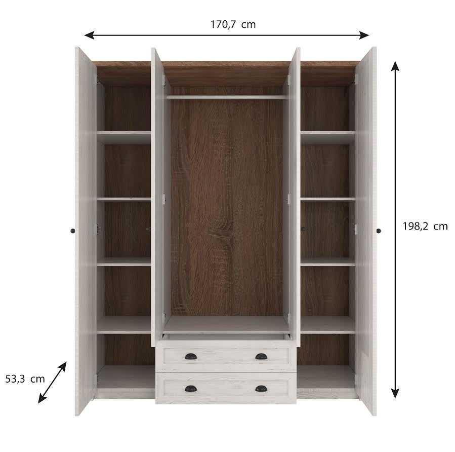Meubella - Kledingkast Parello - Wit - Eiken - 171 cm
