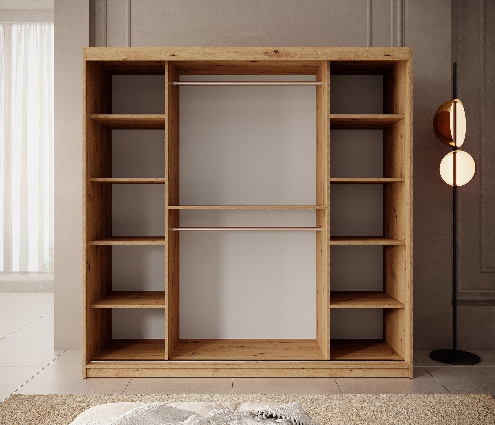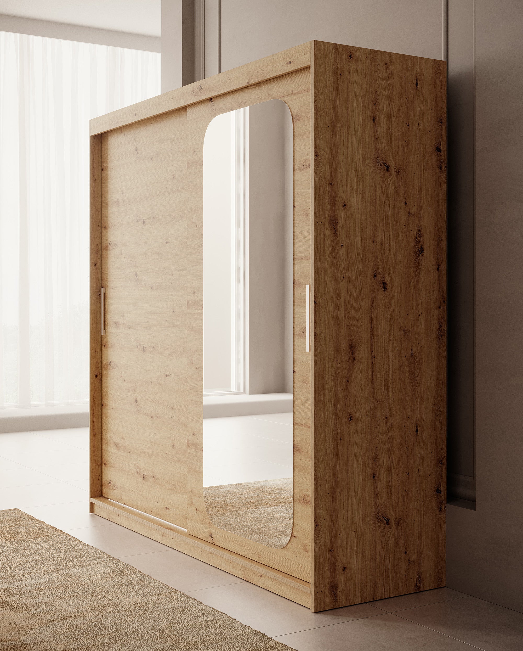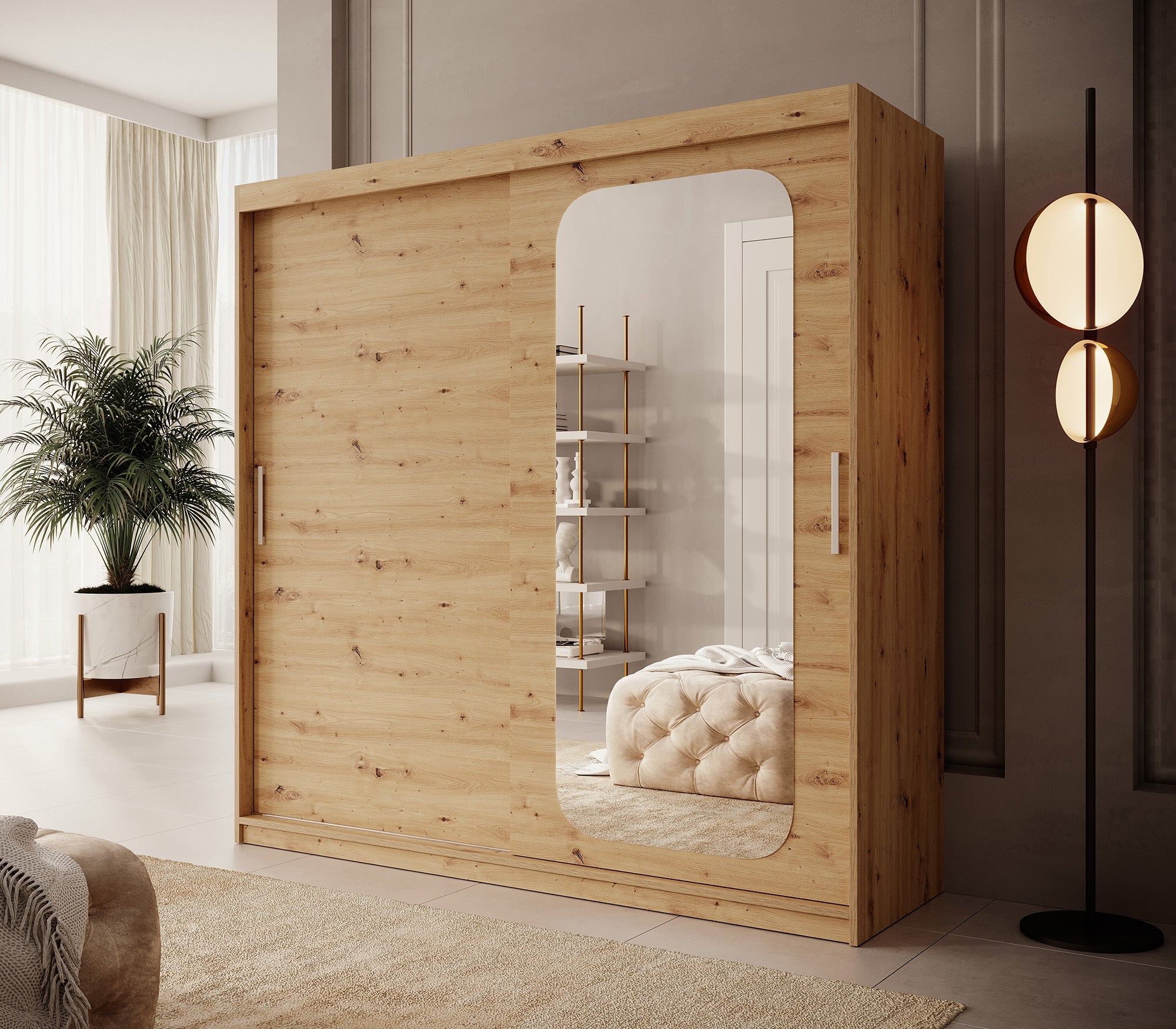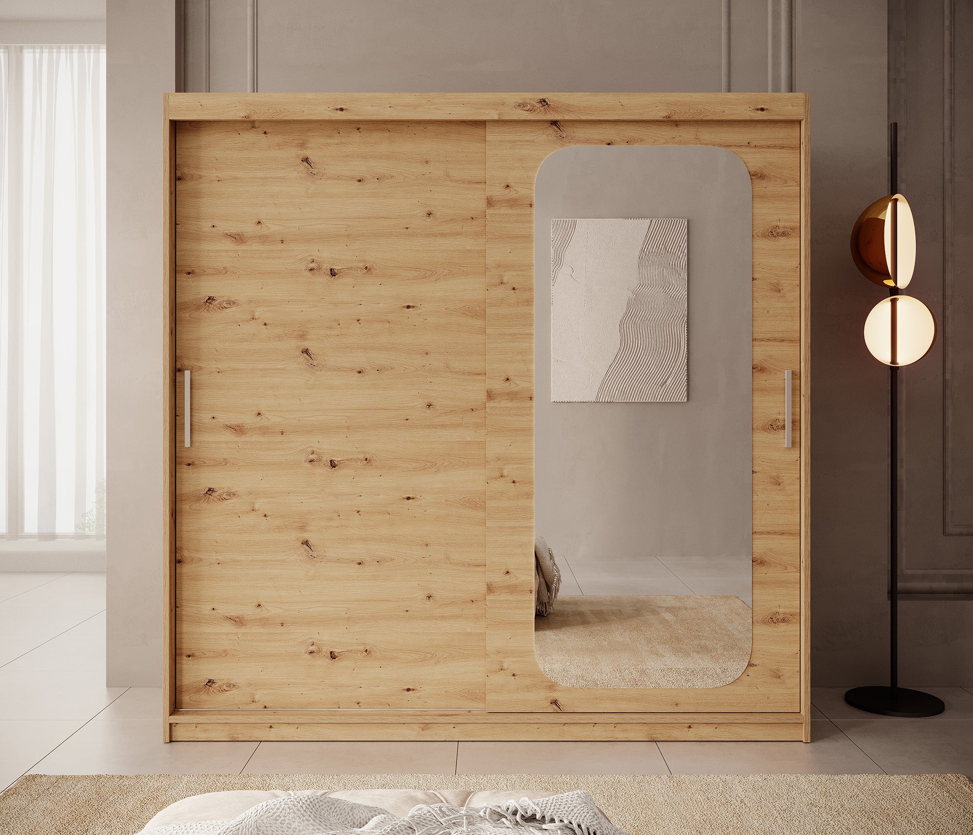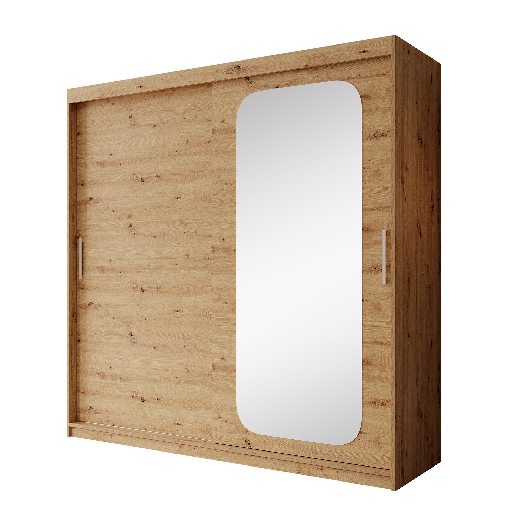 Meubella - Kledingkast Pete - Eiken - 200 cm - Met spiegel