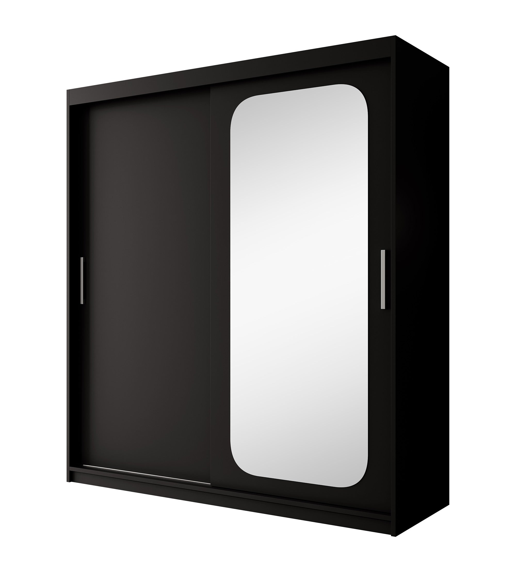 Meubella - Kledingkast Pete - Zwart - 180 cm - Met spiegel