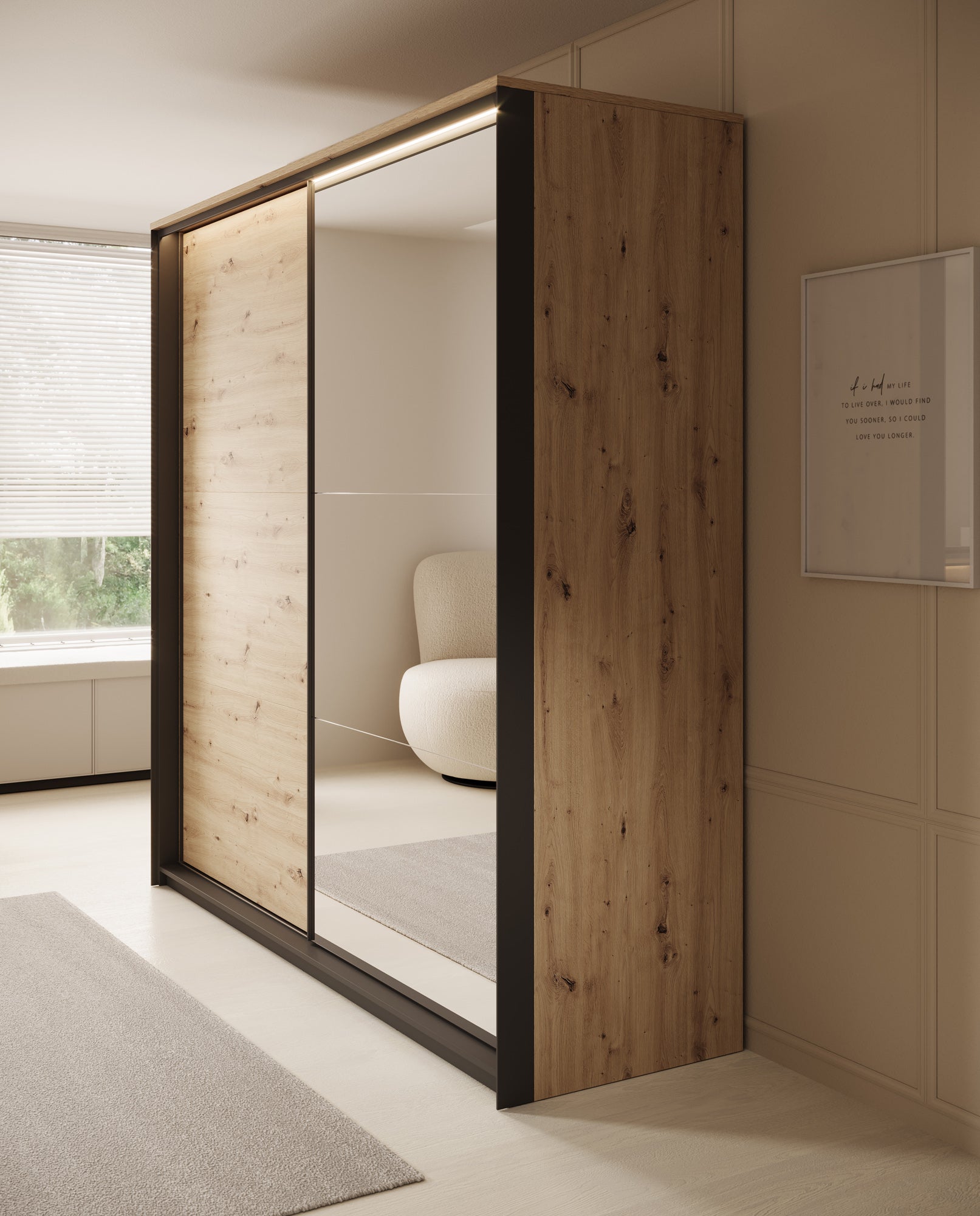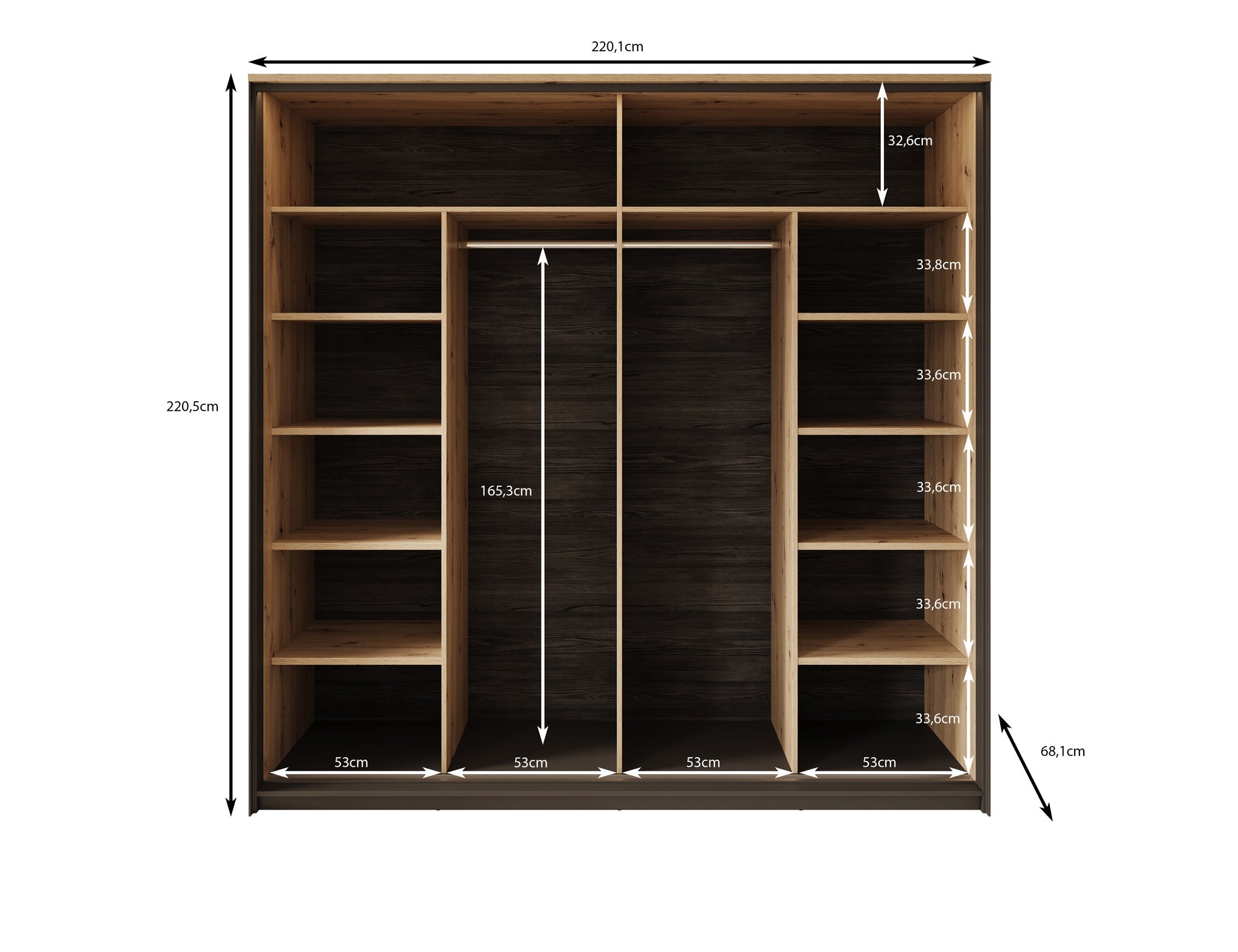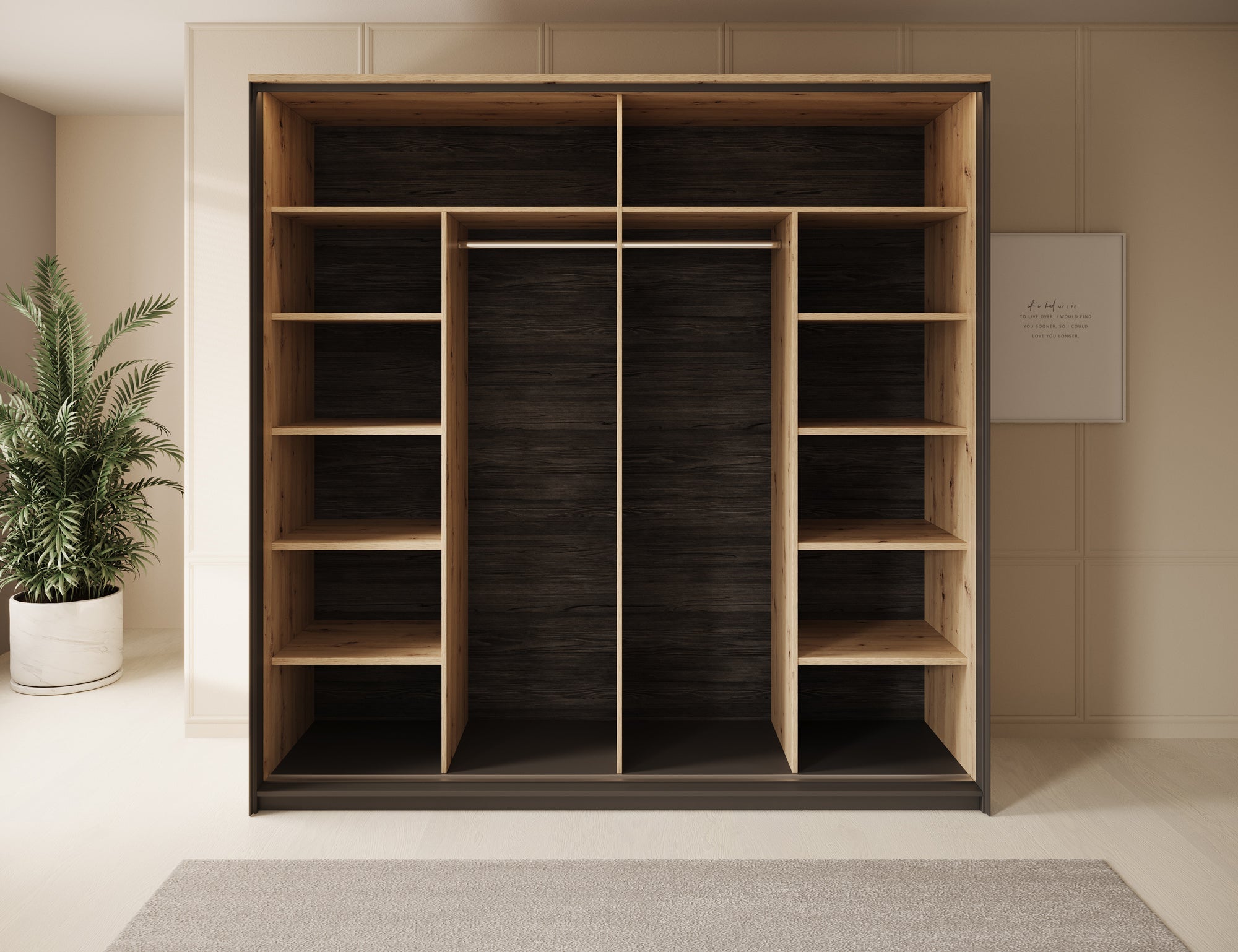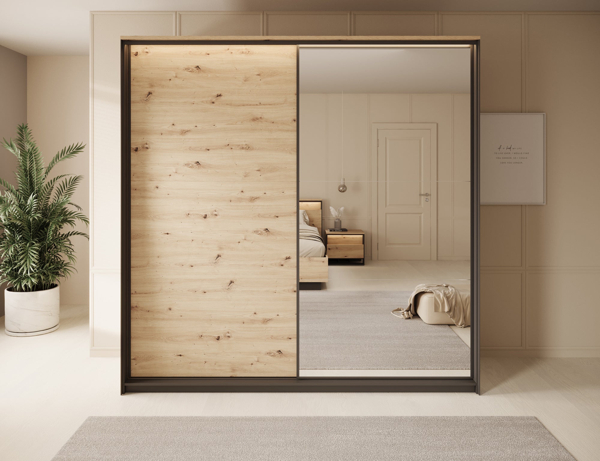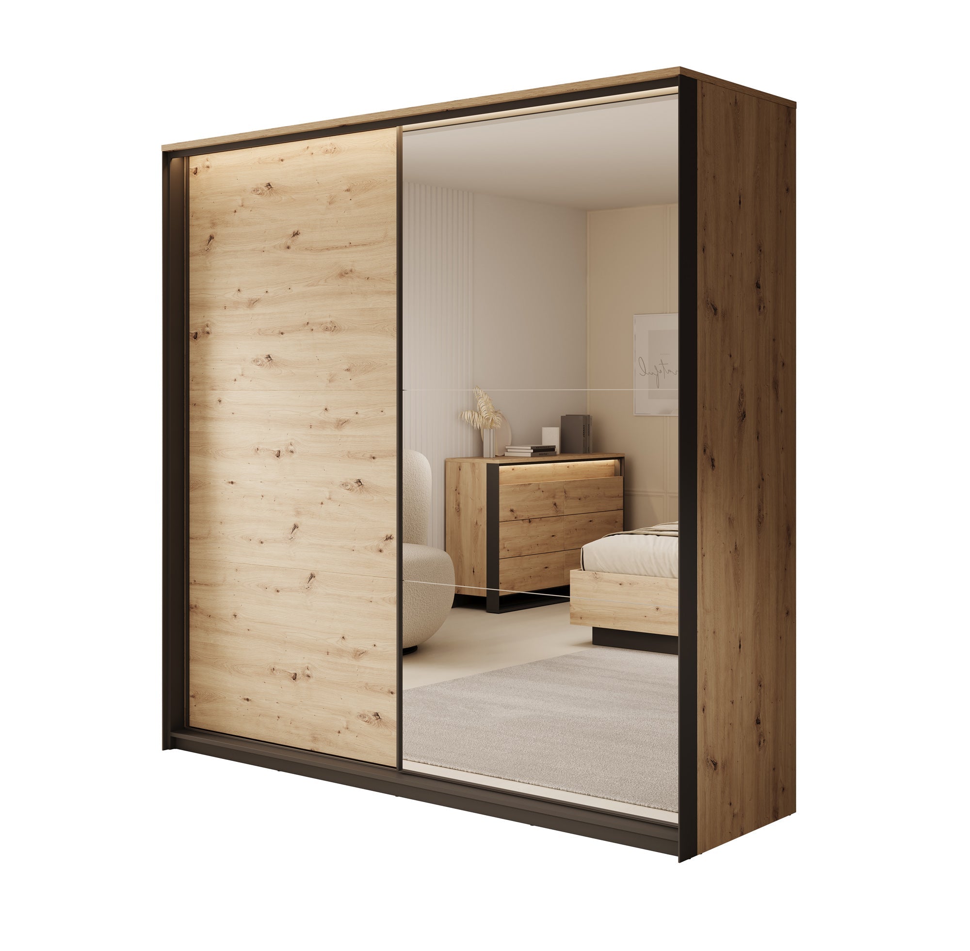Meubella - Kledingkast Quarry - Eiken - 220 cm - Met spiegel