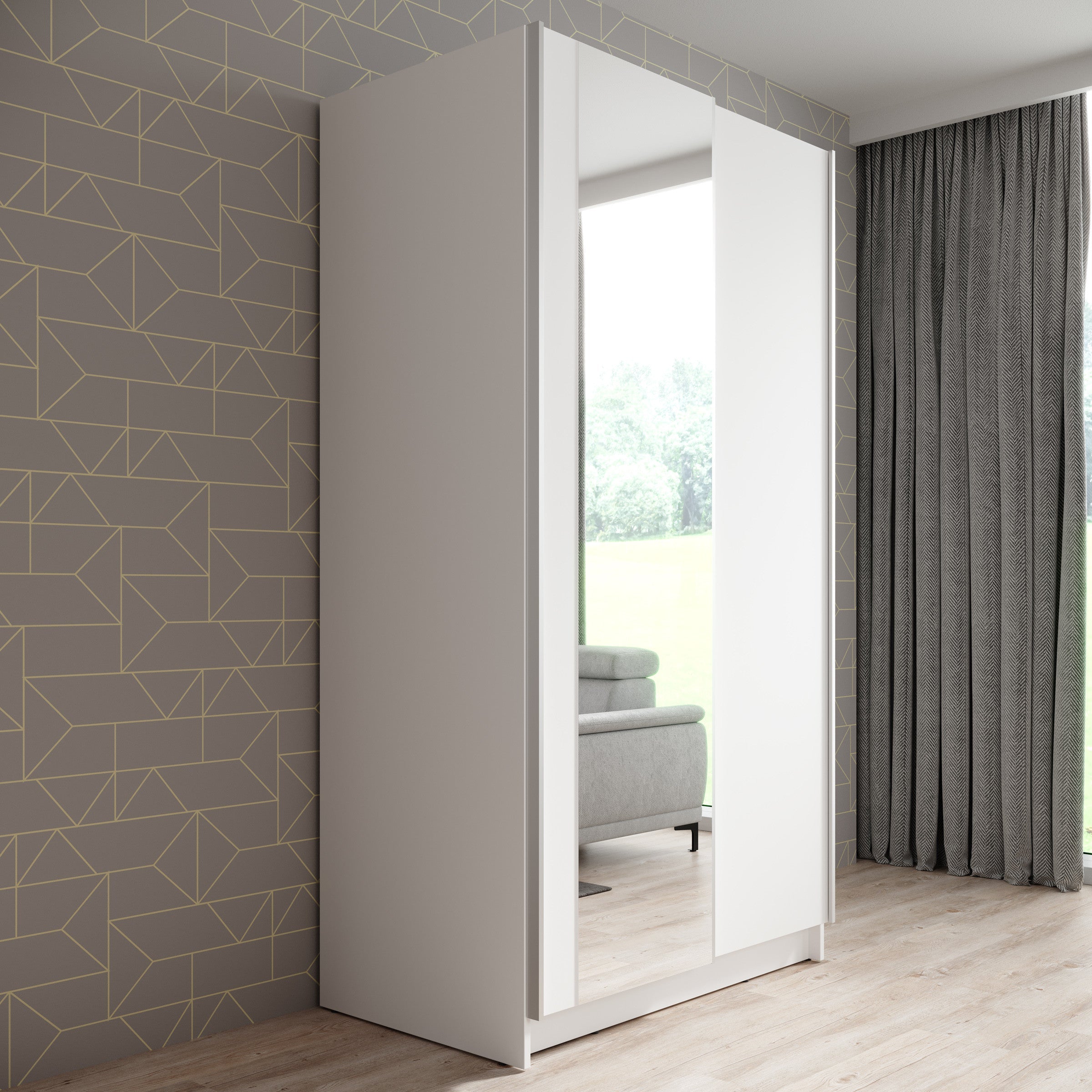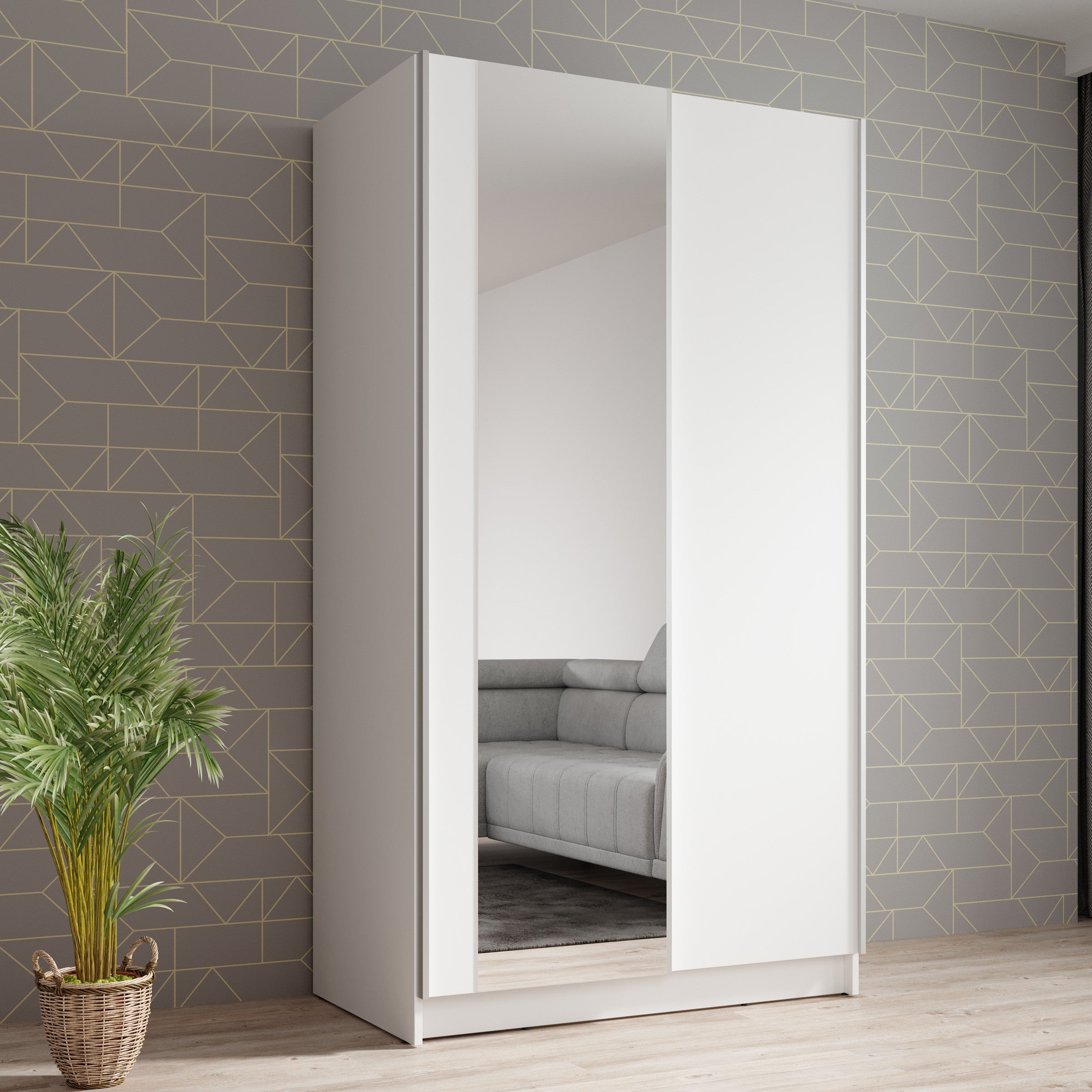 Meubella - Kledingkast Salta - Wit - 100 cm - Met spiegel