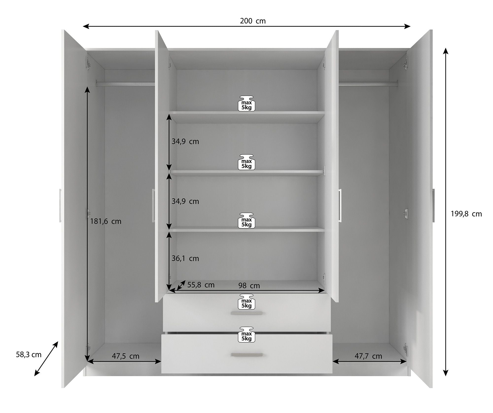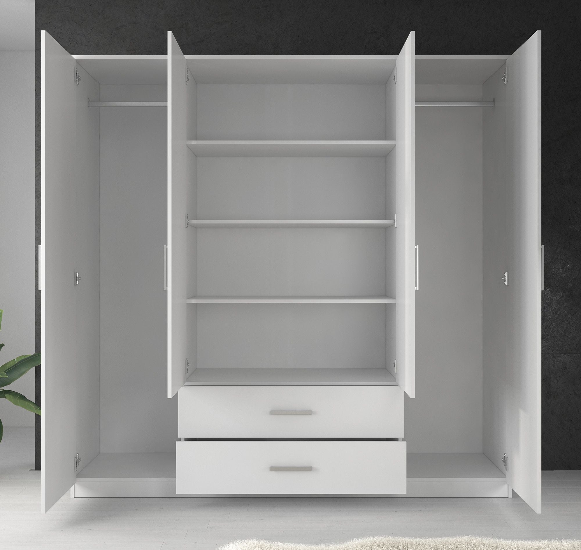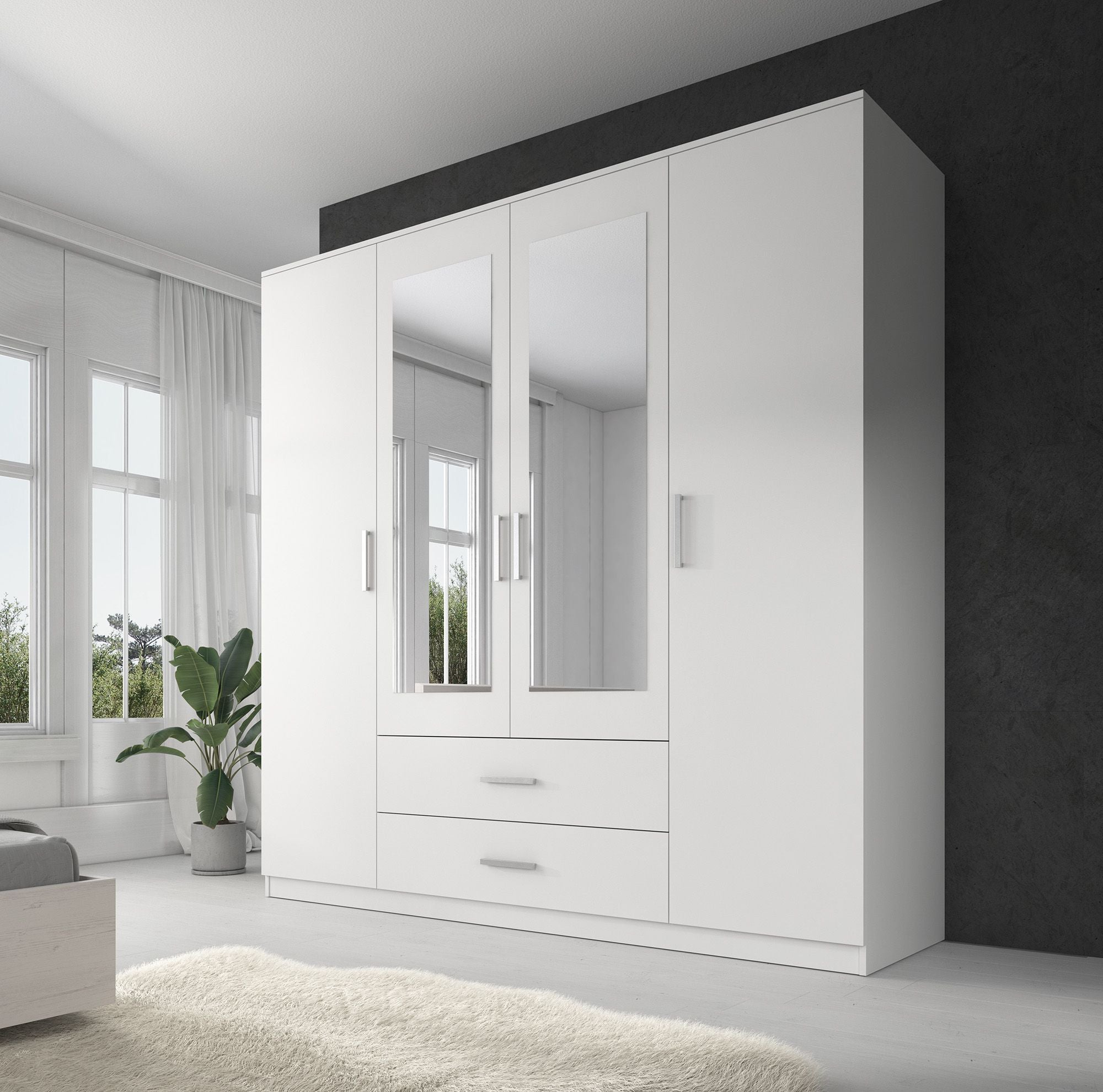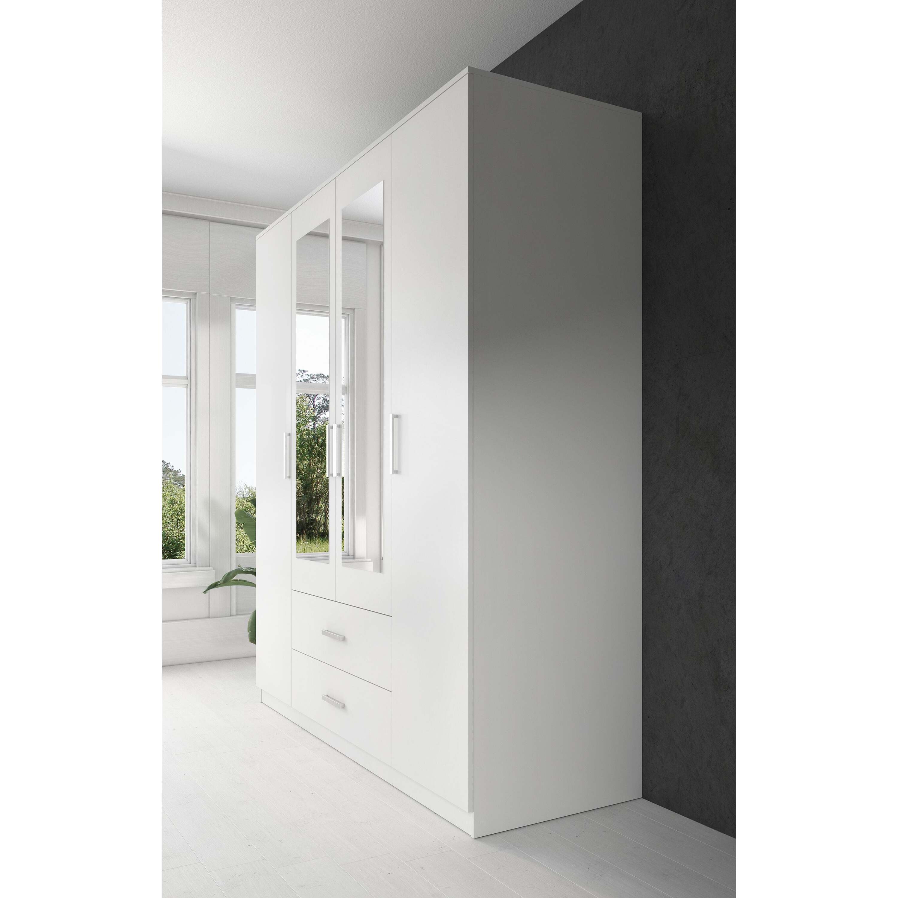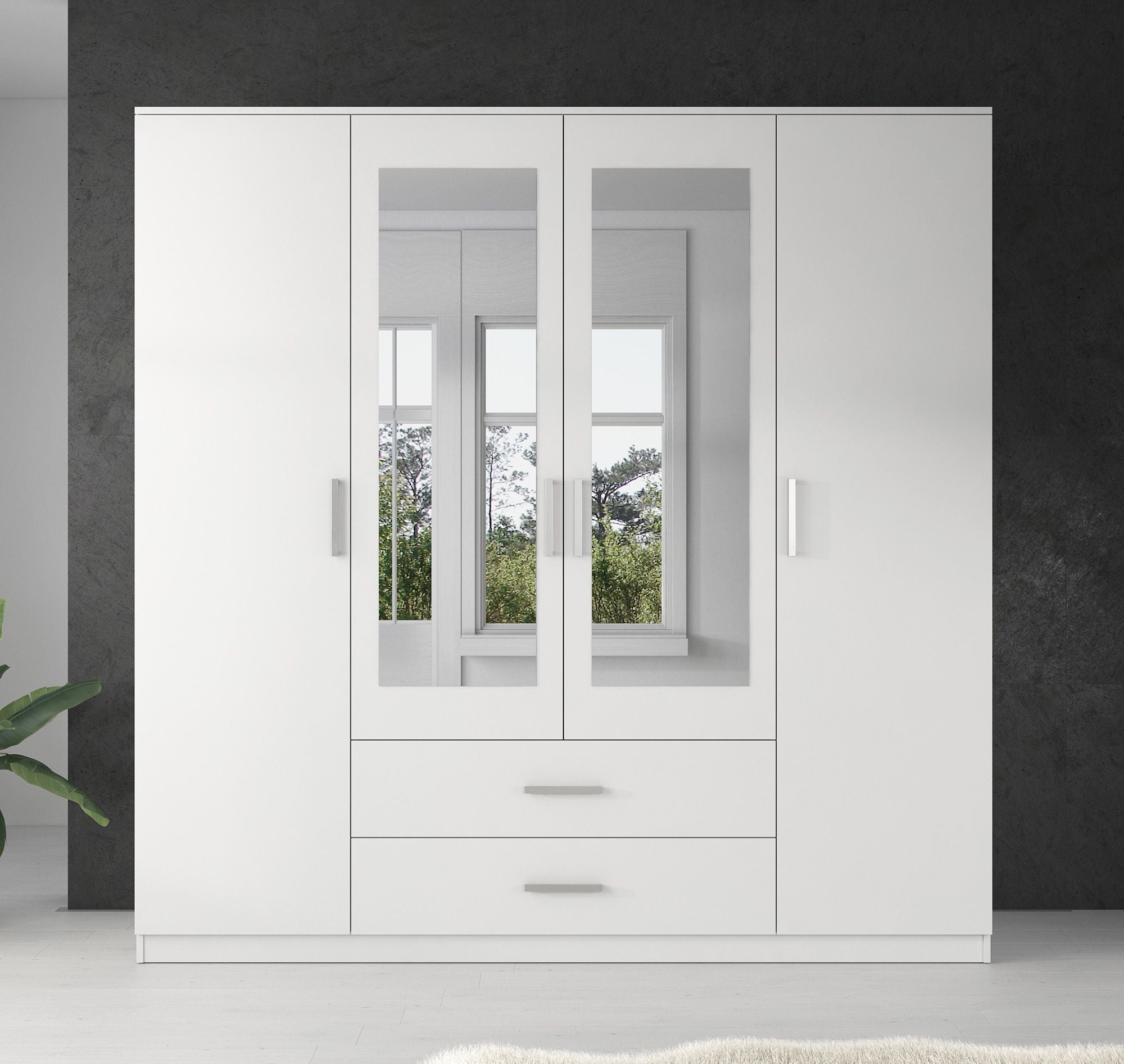 Meubella - Kledingkast Savona - Wit - 200 cm - Met spiegel