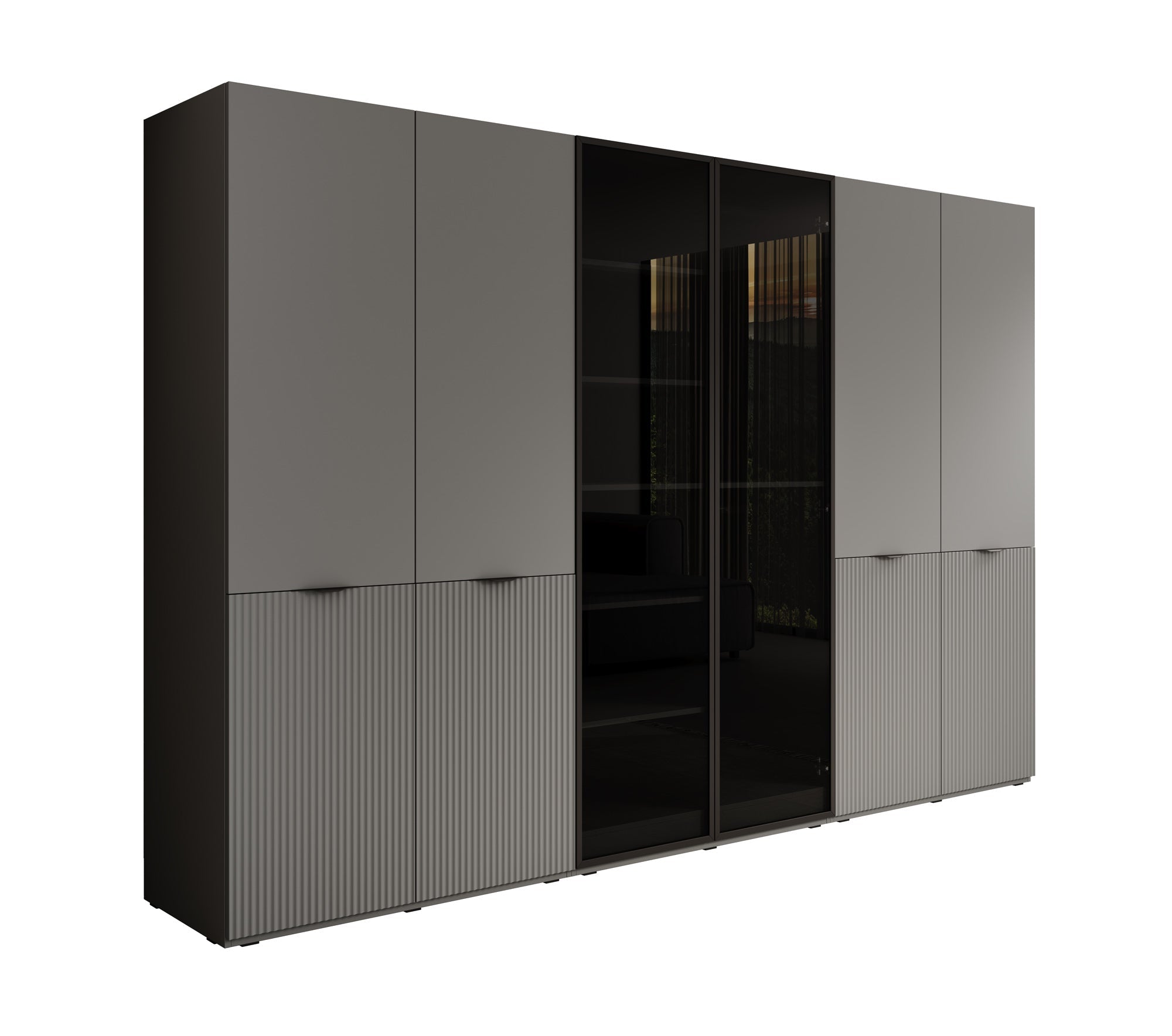Meubella - Kledingkast Shelton - Grijs - 303 cm - Met glas