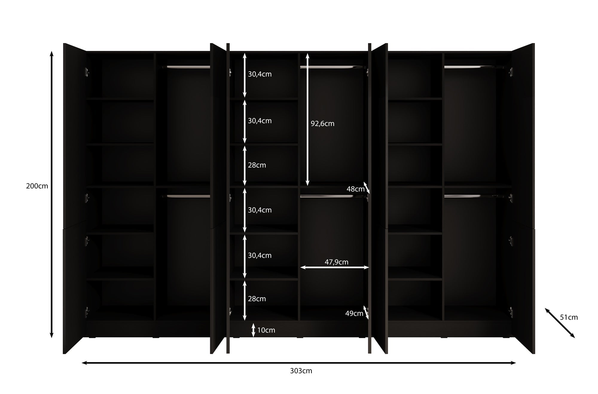 | Maat | H 200 x B 303 x D 51 cm |