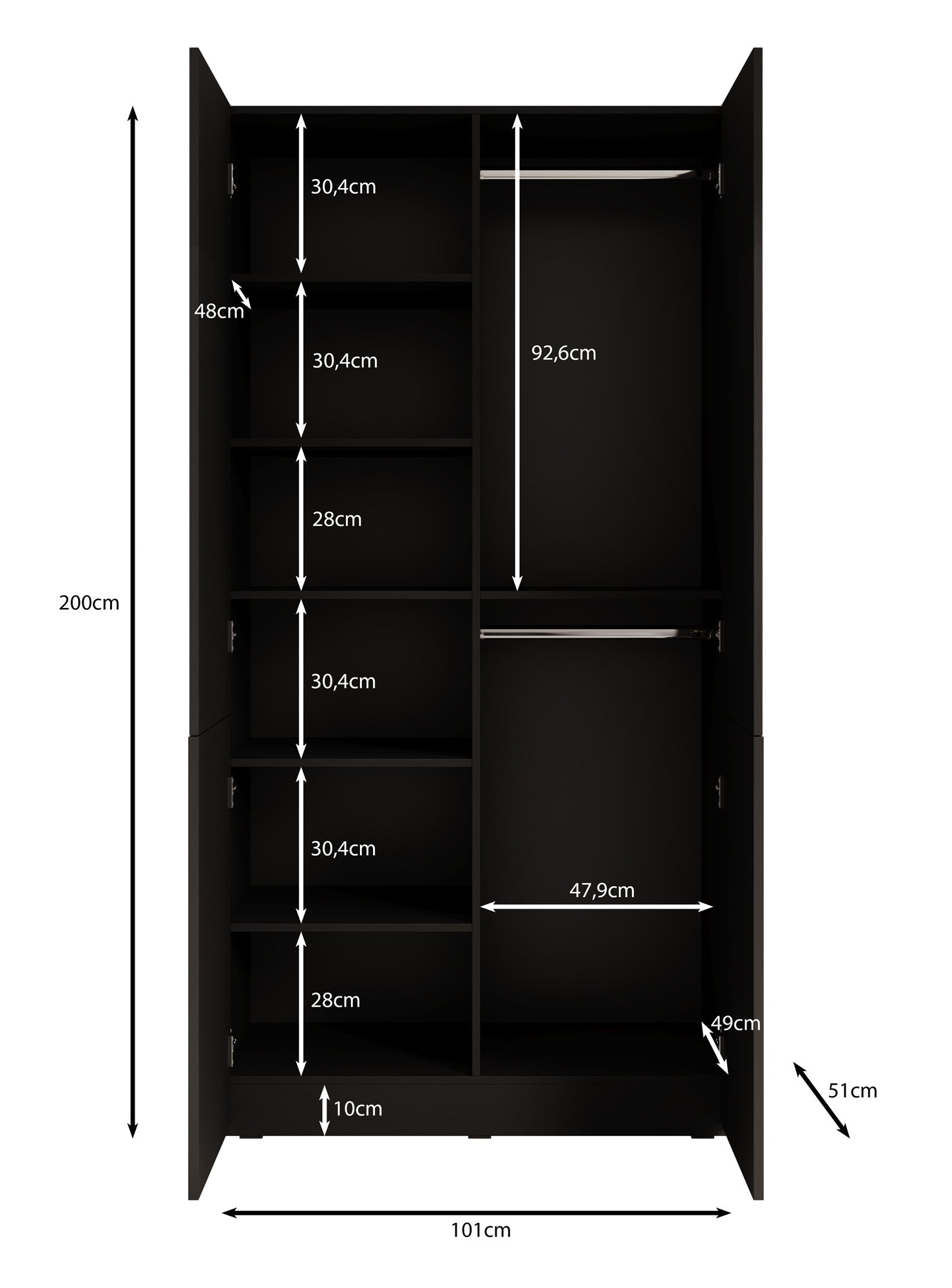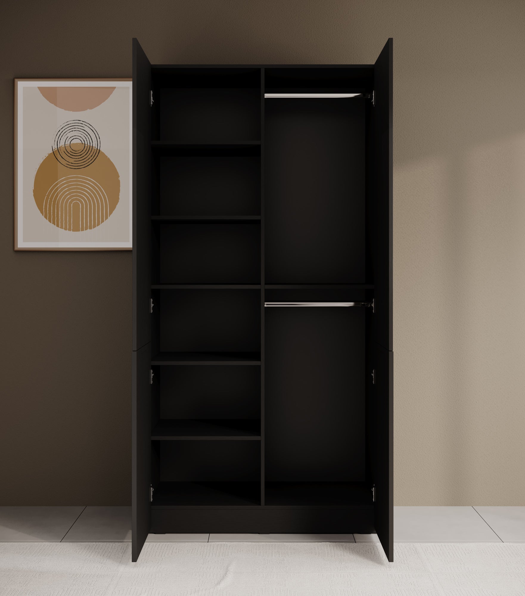 Meubella - Kledingkast Shelton - Zwart 2 - 101 cm
