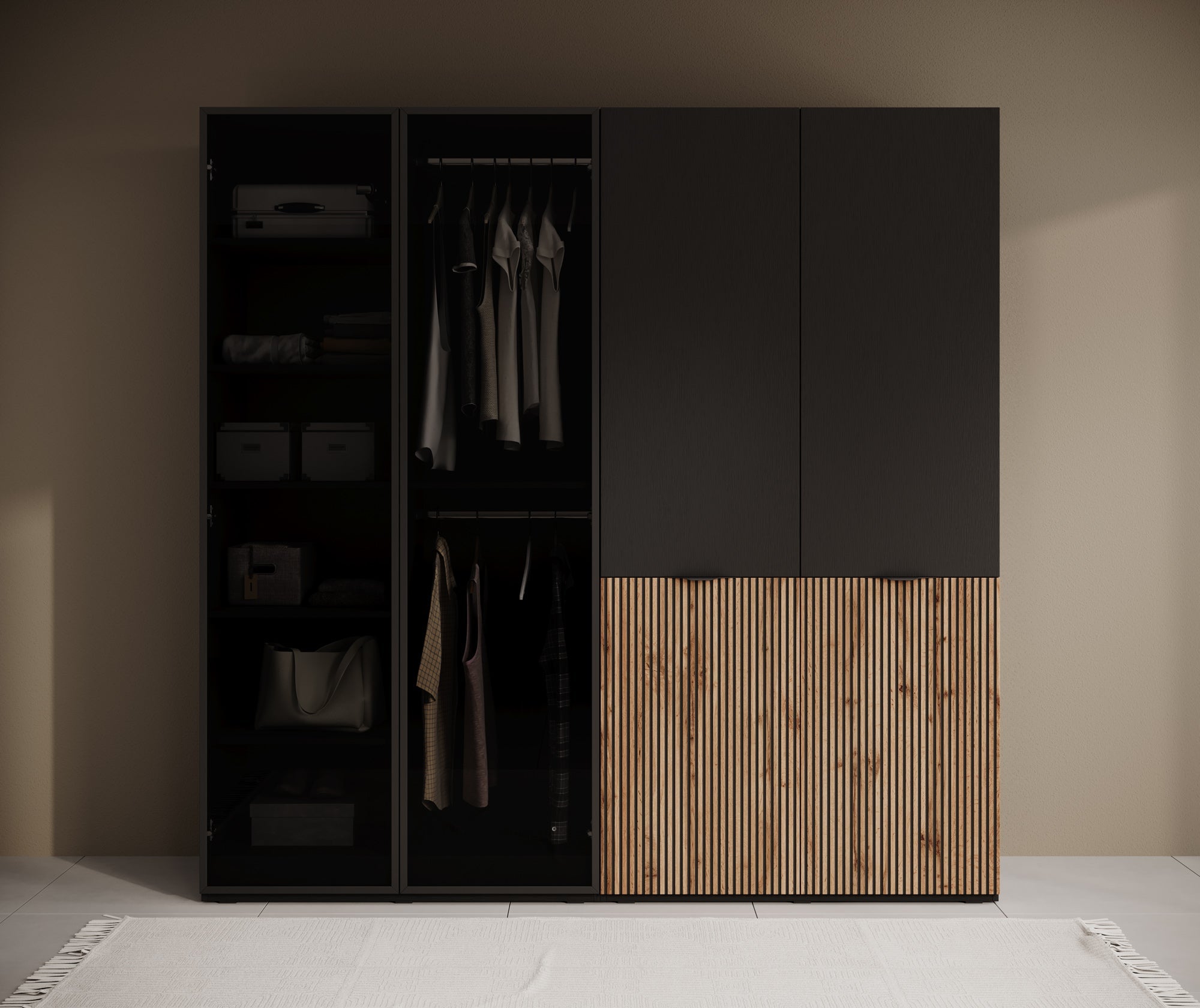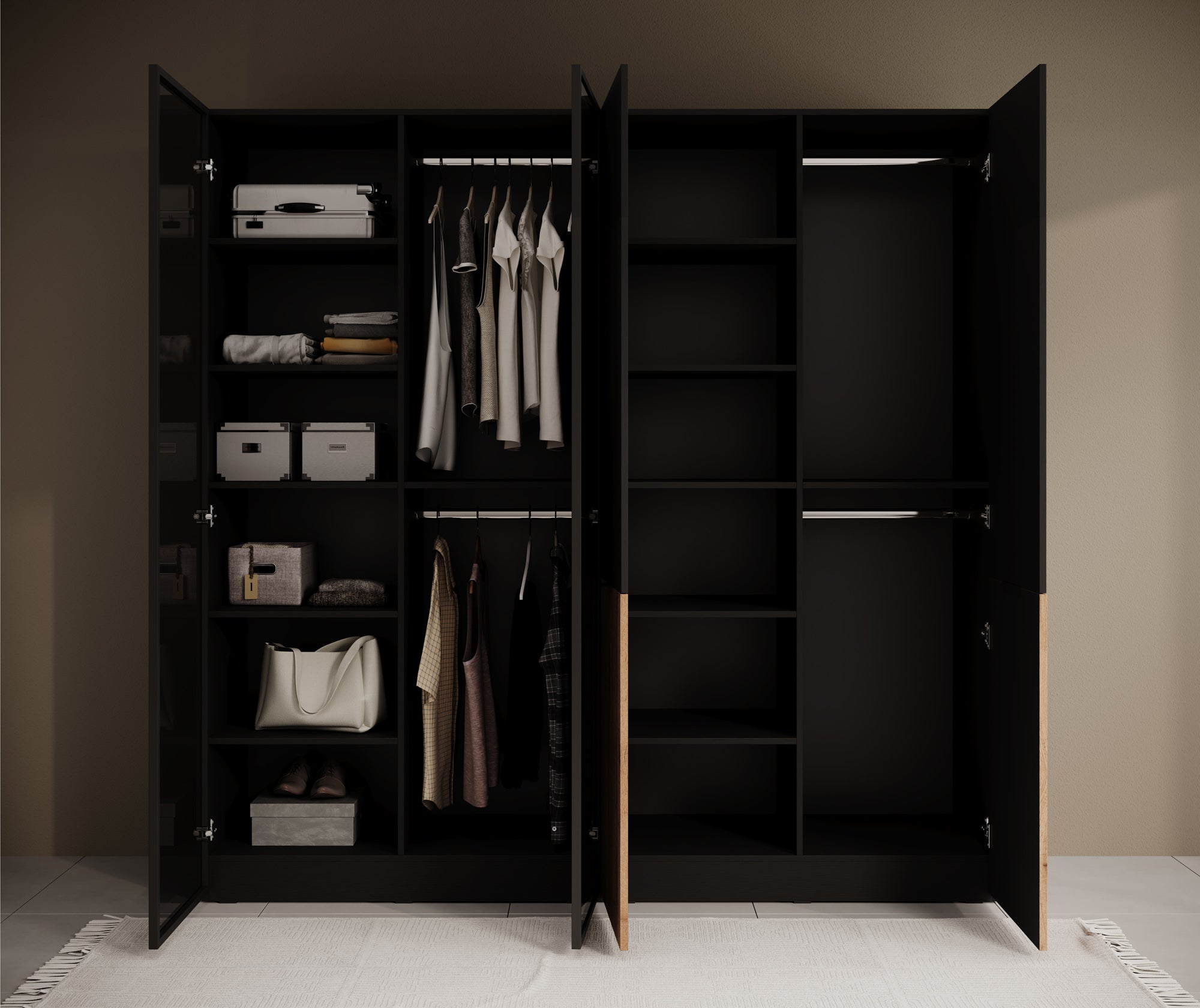 Meubella - Kledingkast Shelton - Zwart 2 - 202 cm - Met glas