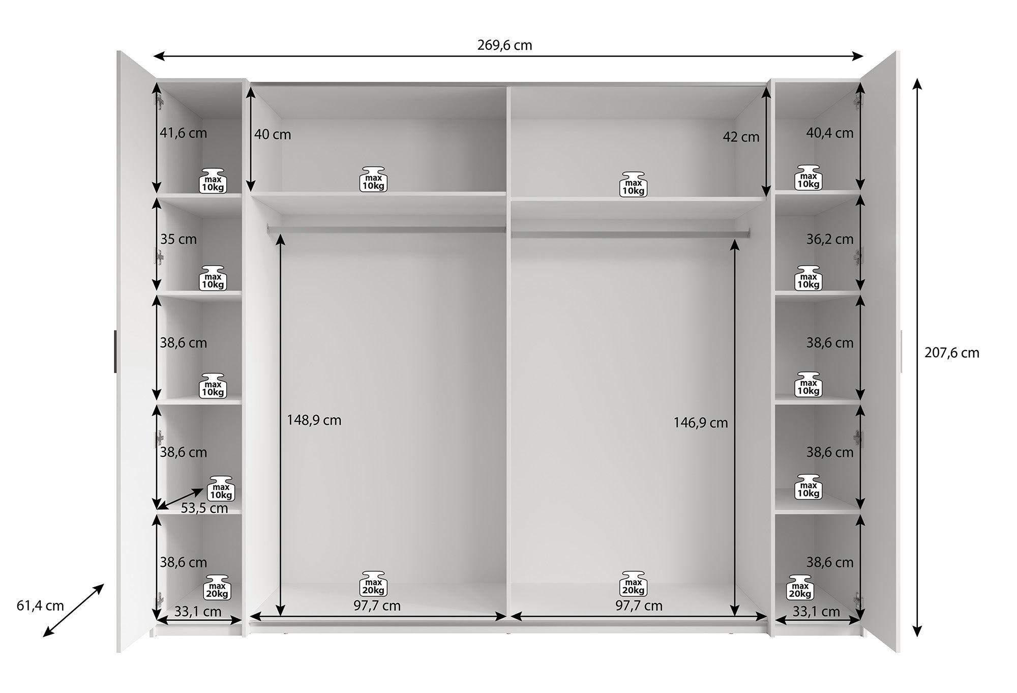 | Maat | H 208 x B 270 x D 61 cm |