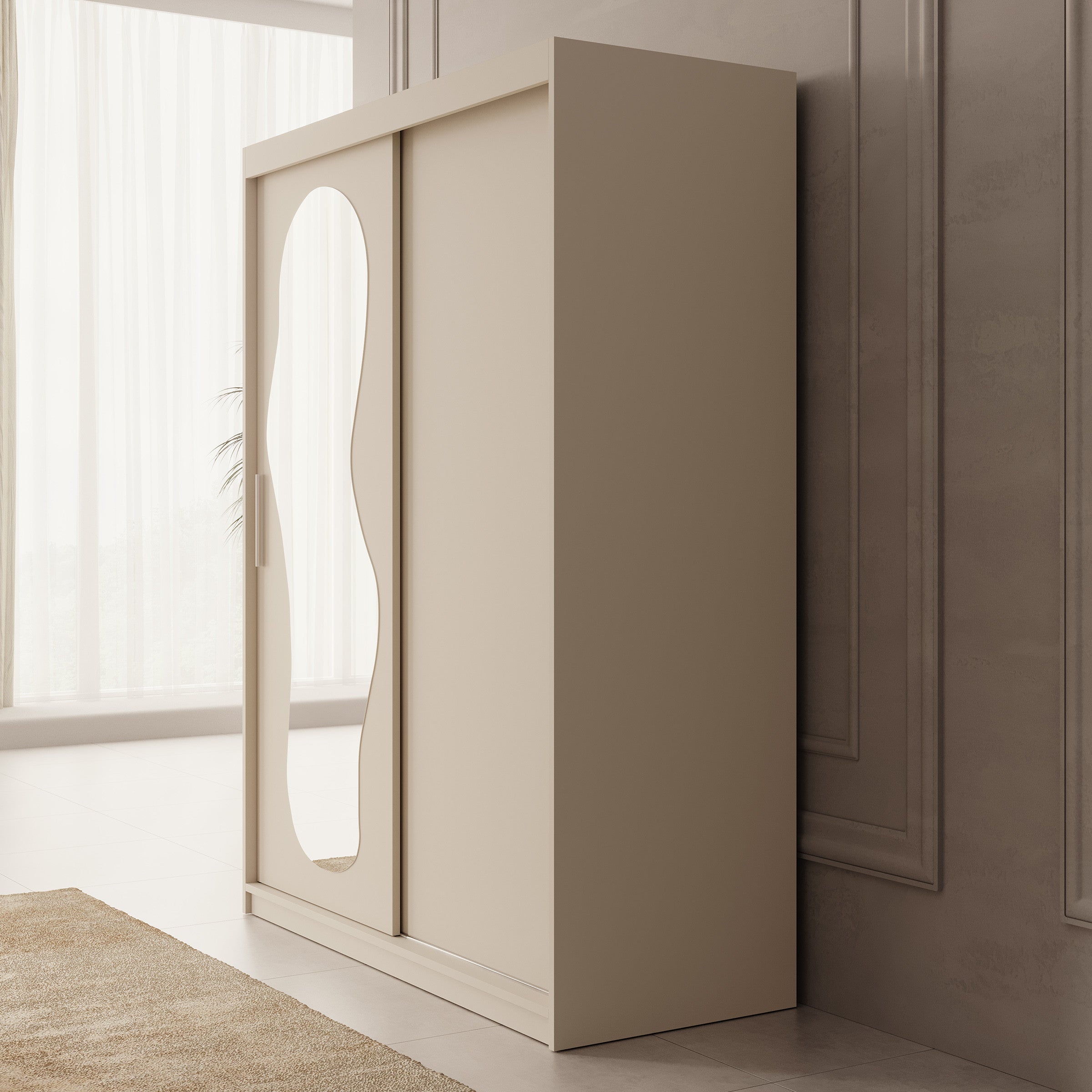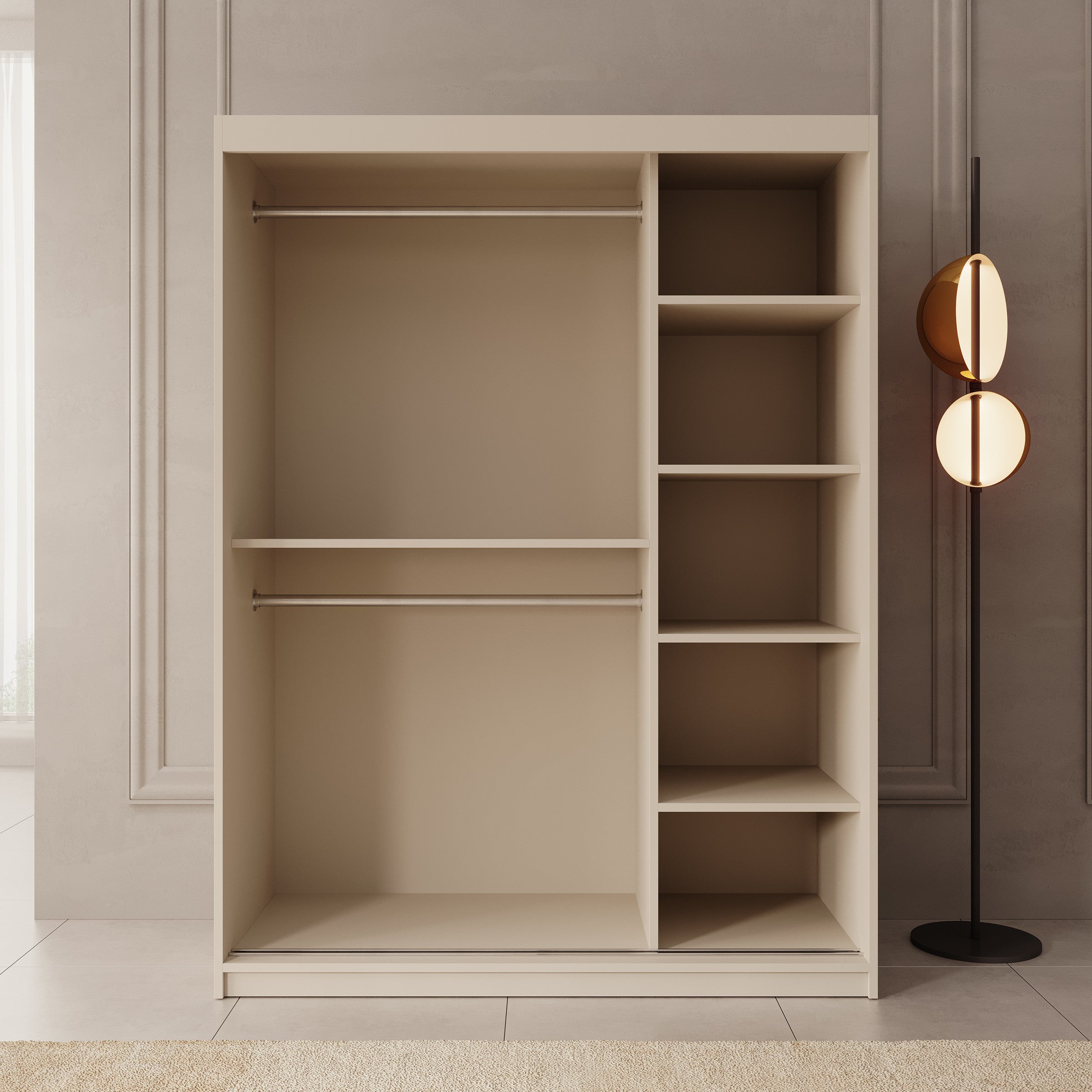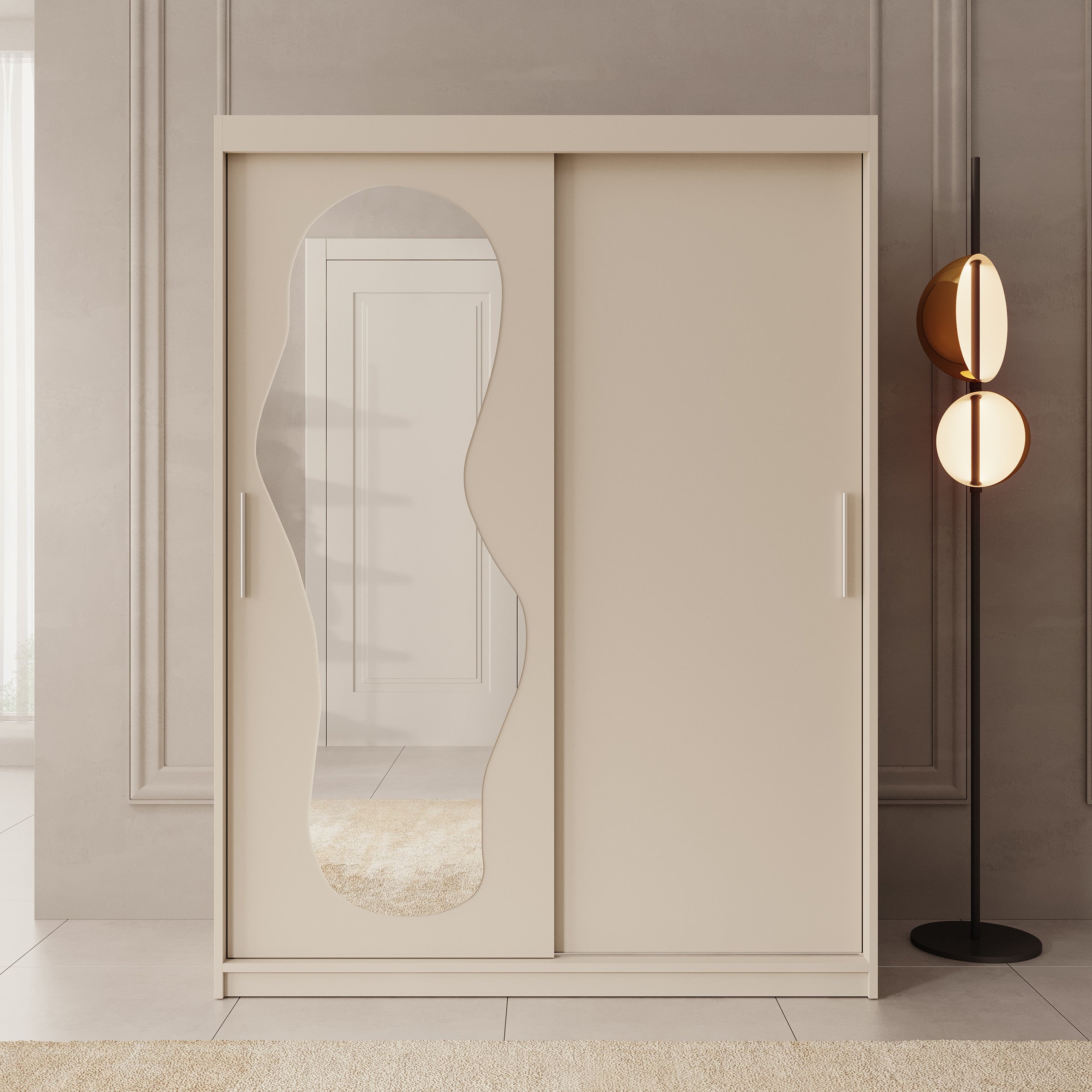 Meubella - Kledingkast Ulysses - Beige - 150 cm - Met spiegel