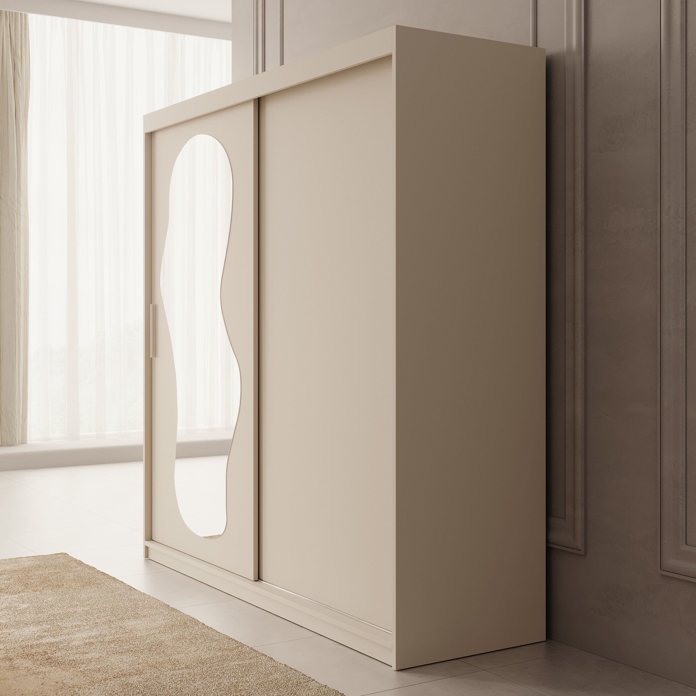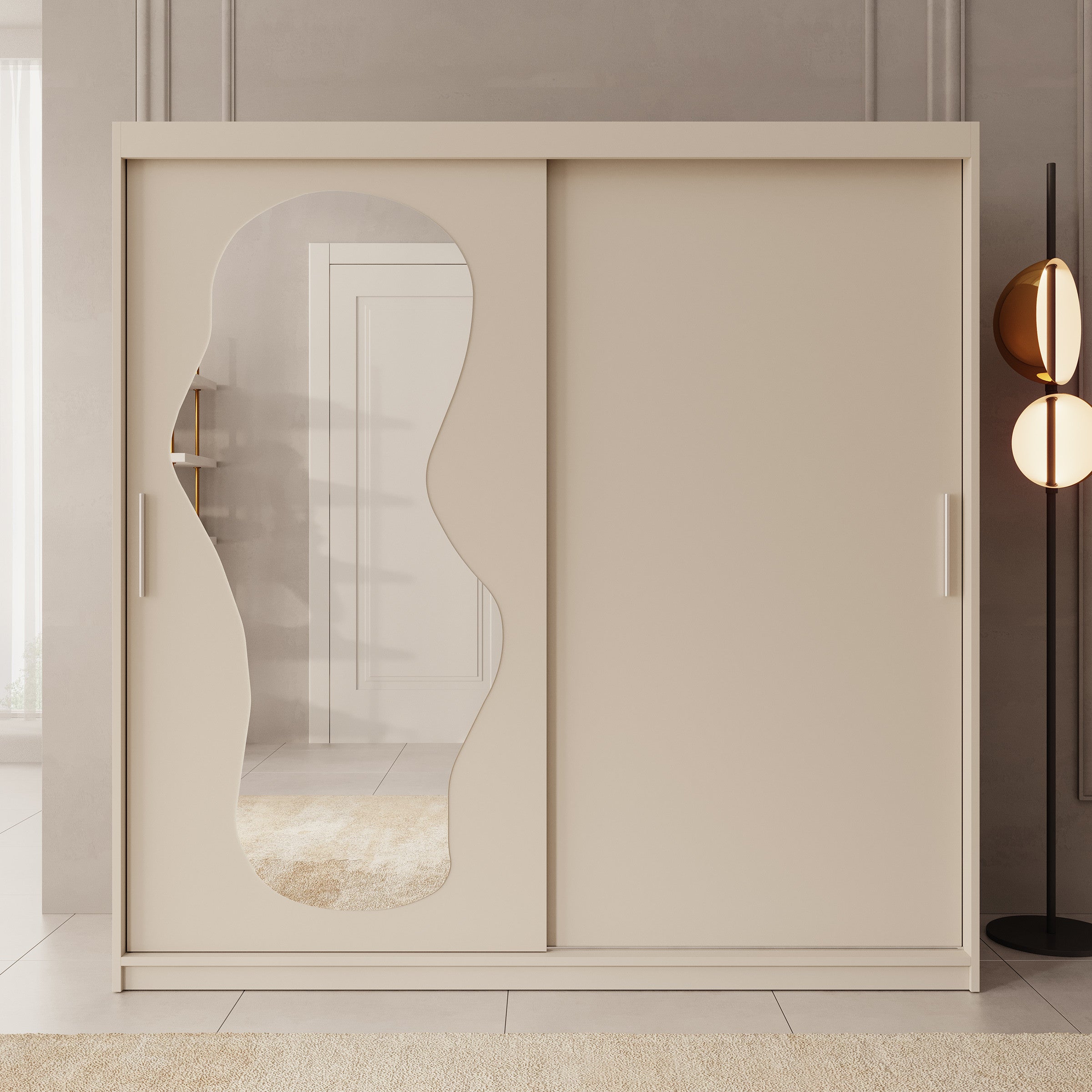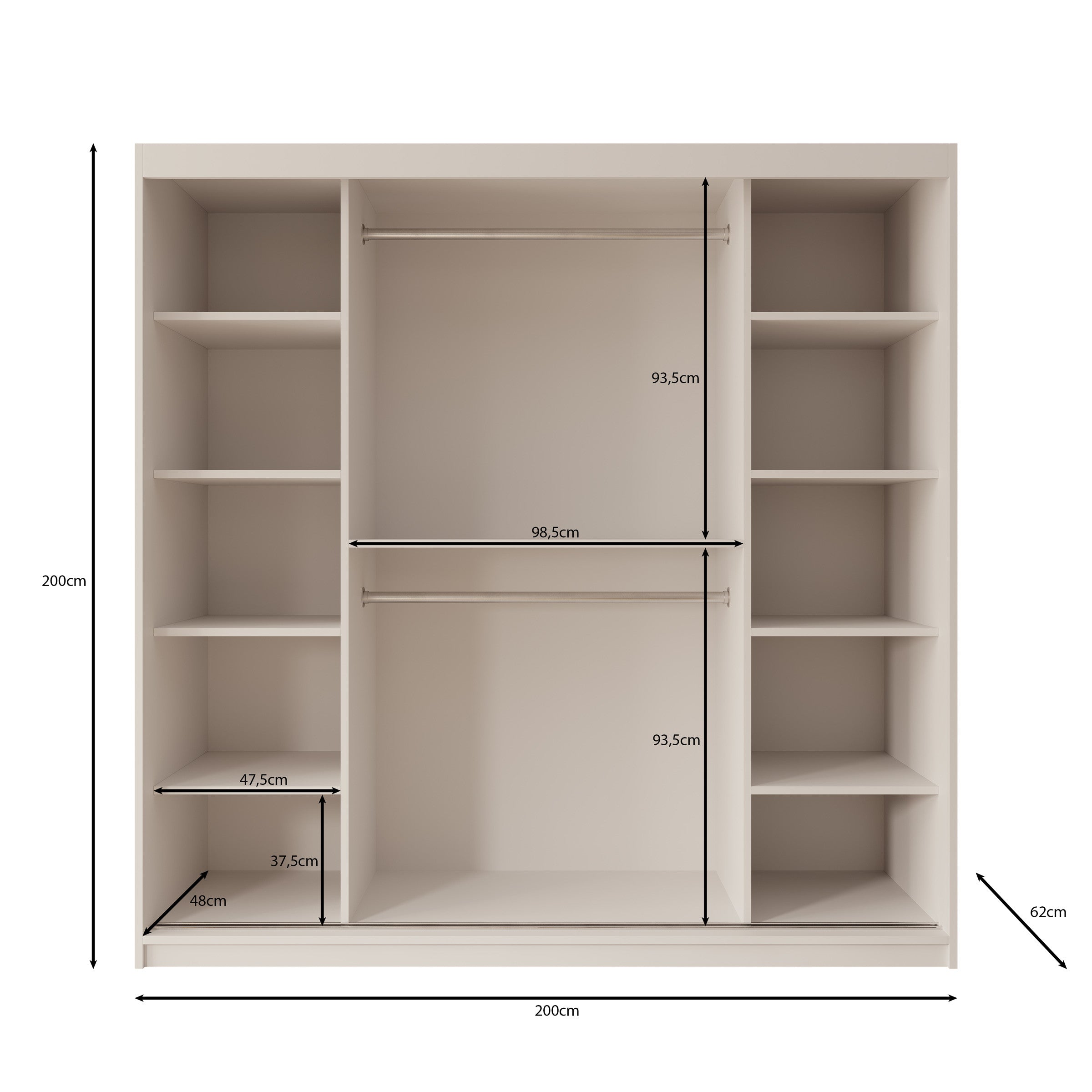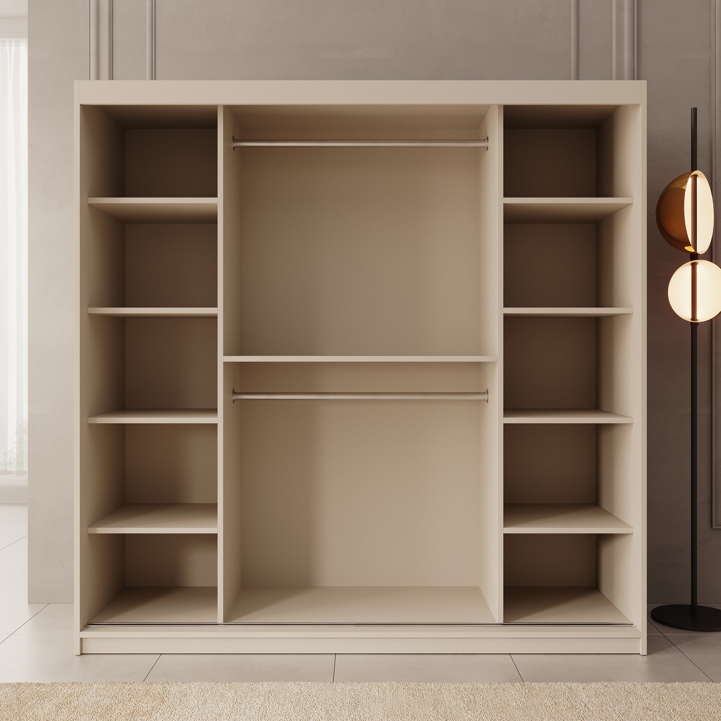 Meubella - Kledingkast Ulysses - Beige - 200 cm - Met spiegel