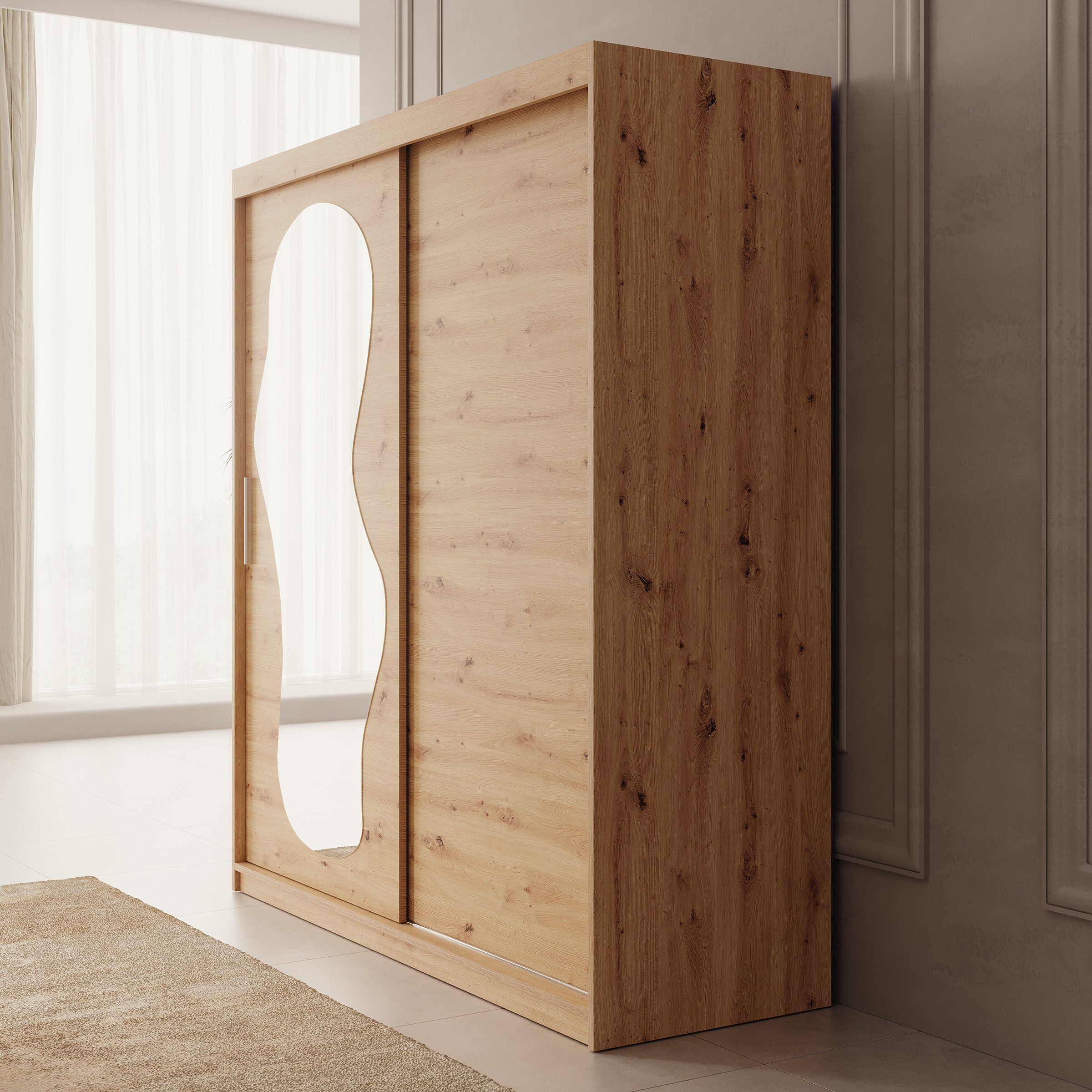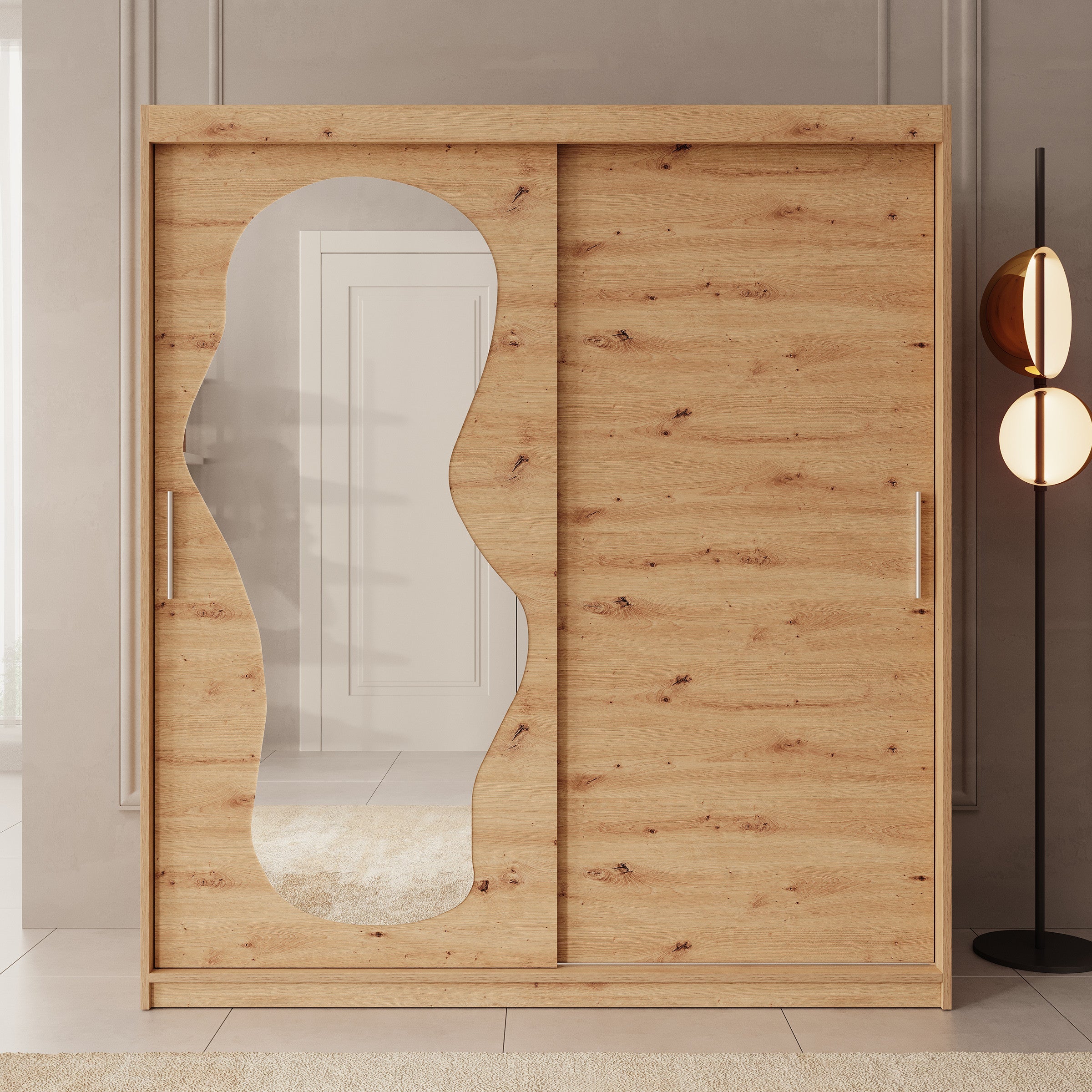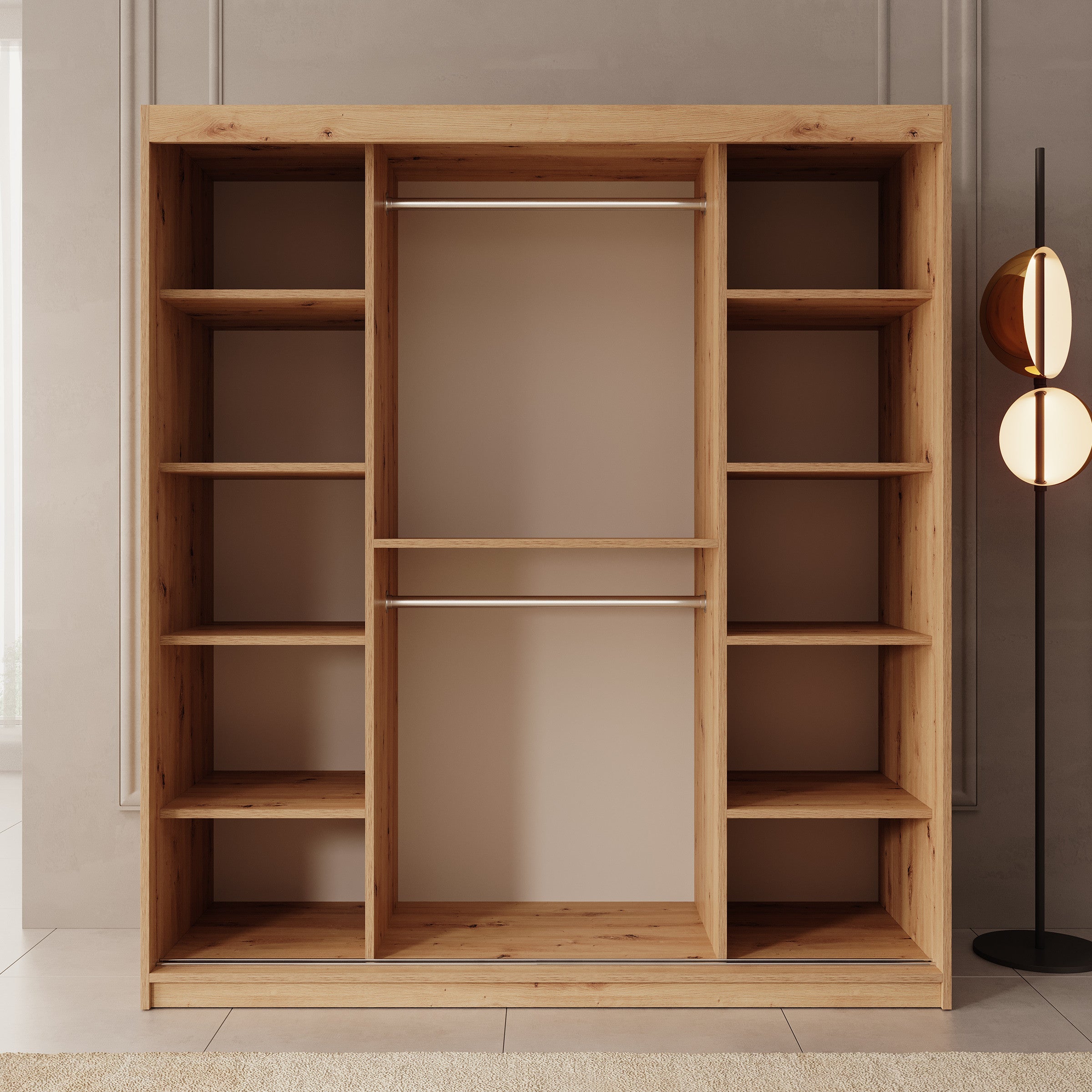 Meubella - Kledingkast Ulysses - Eiken - 180 cm - Met spiegel