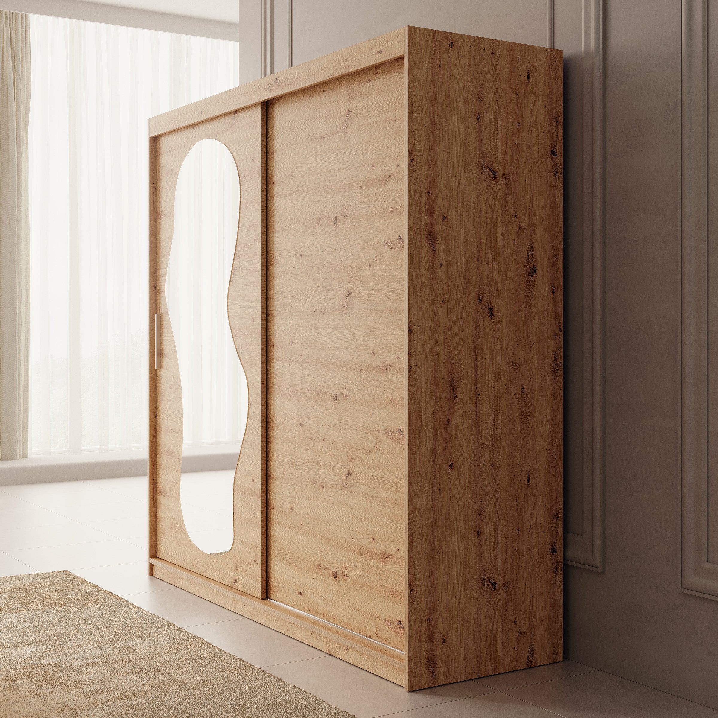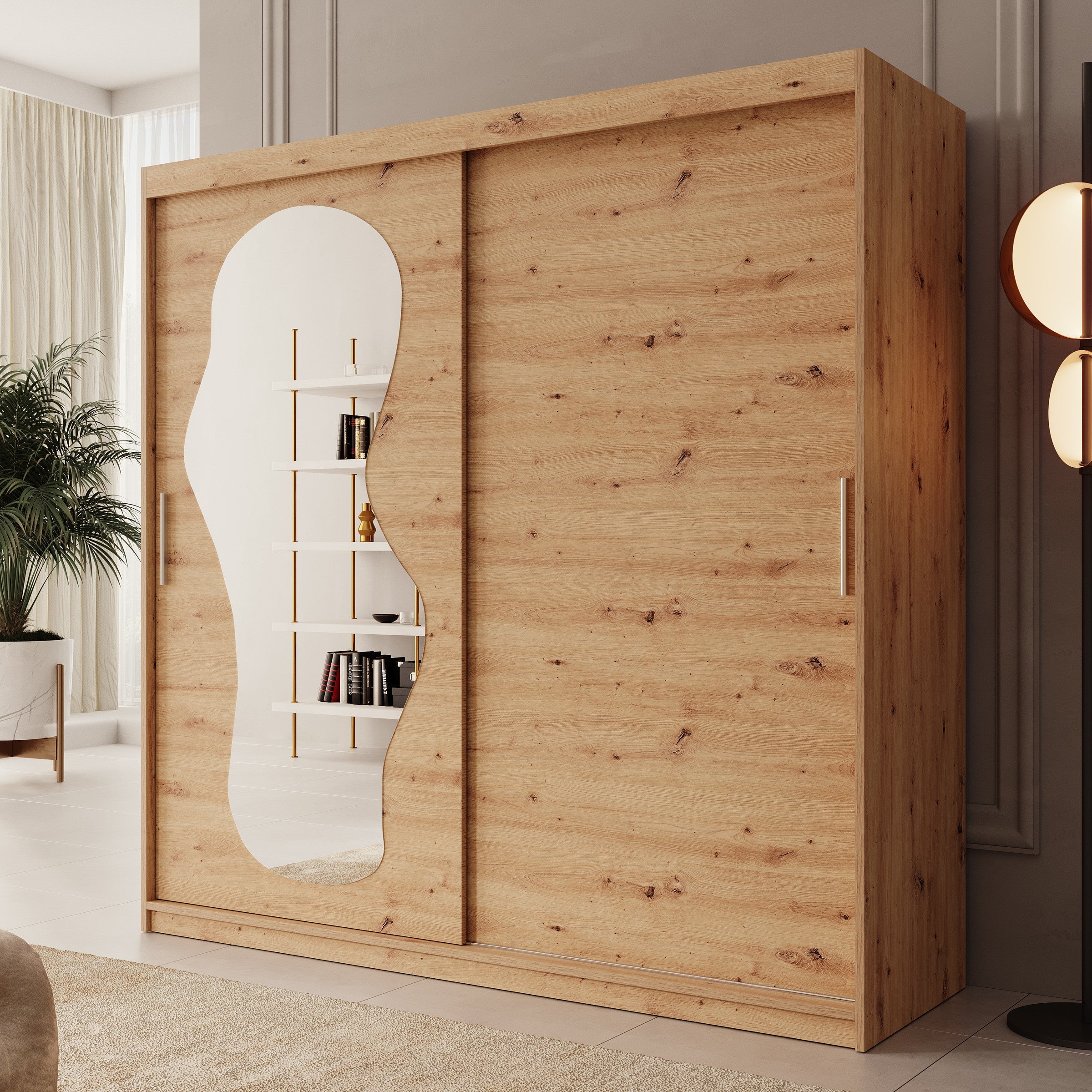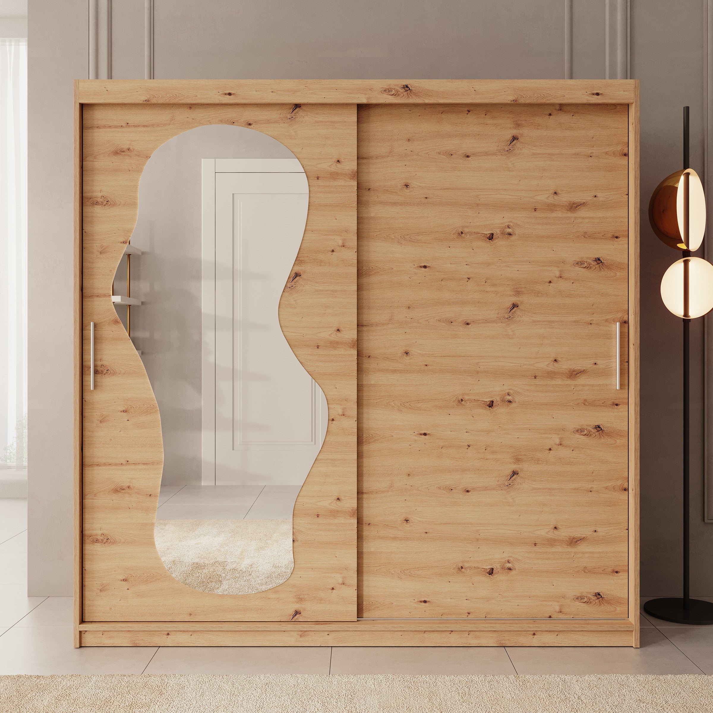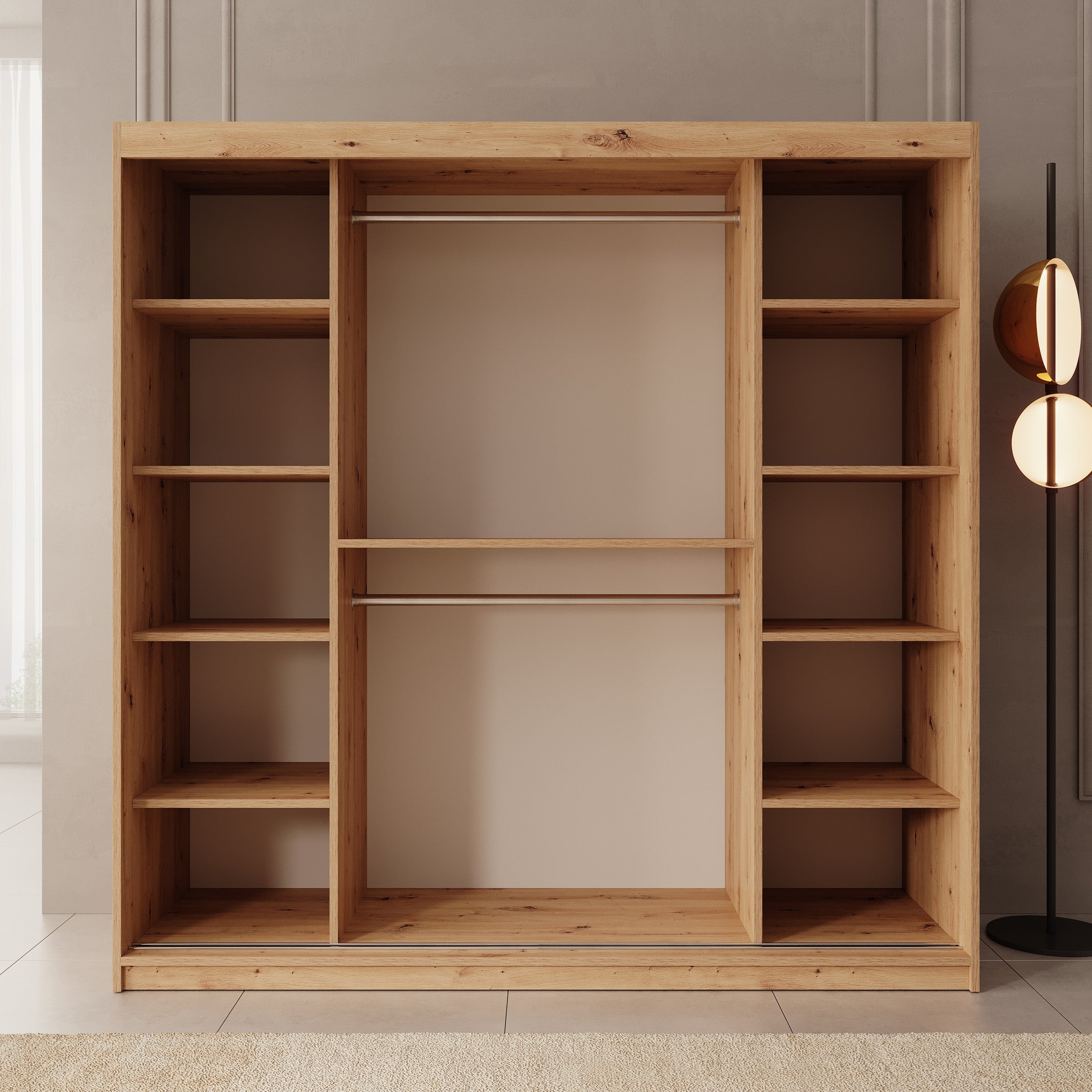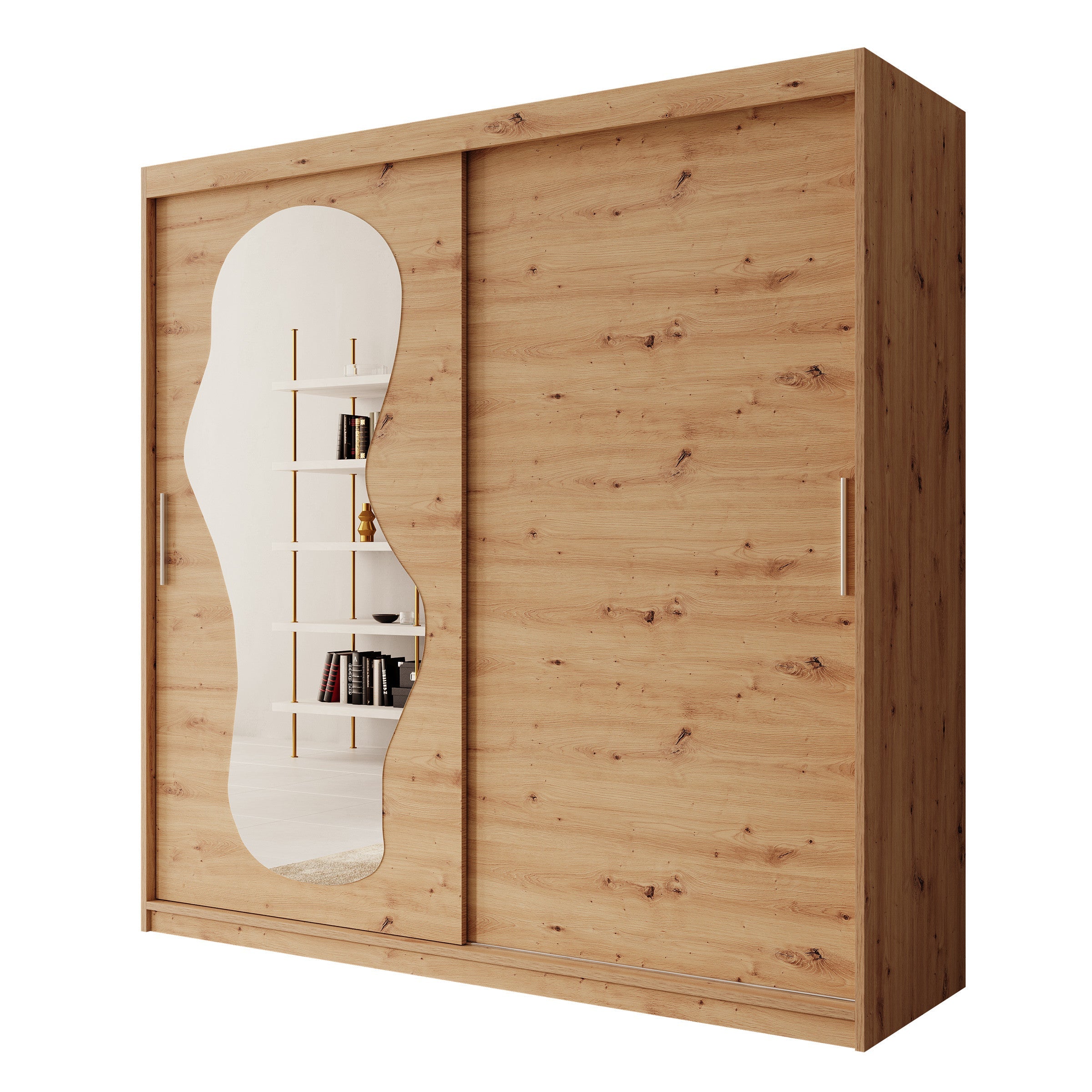 Meubella - Kledingkast Ulysses - Eiken - 200 cm - Met spiegel