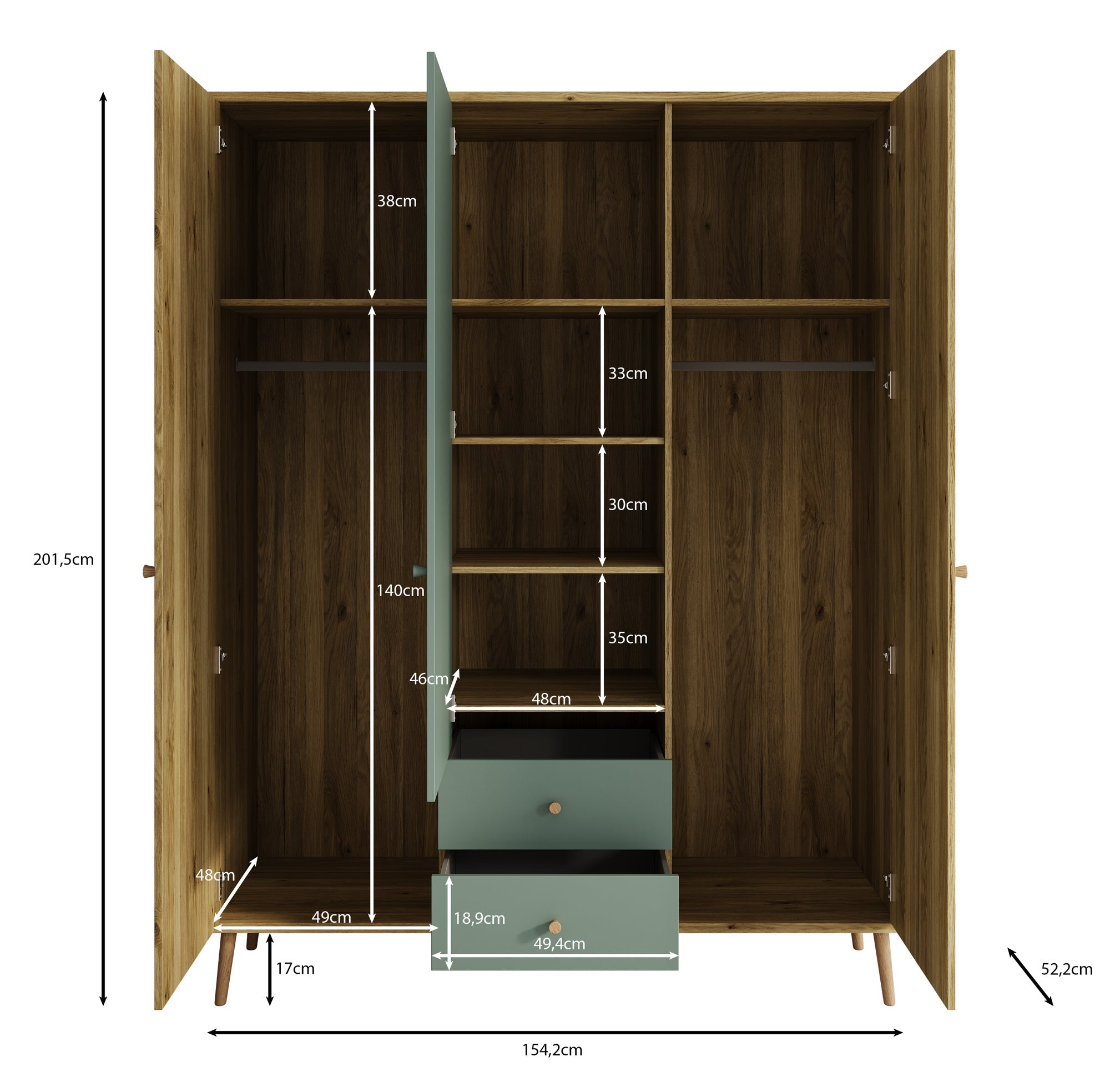 | Maat | H 202 x B 154 x D 52 cm |