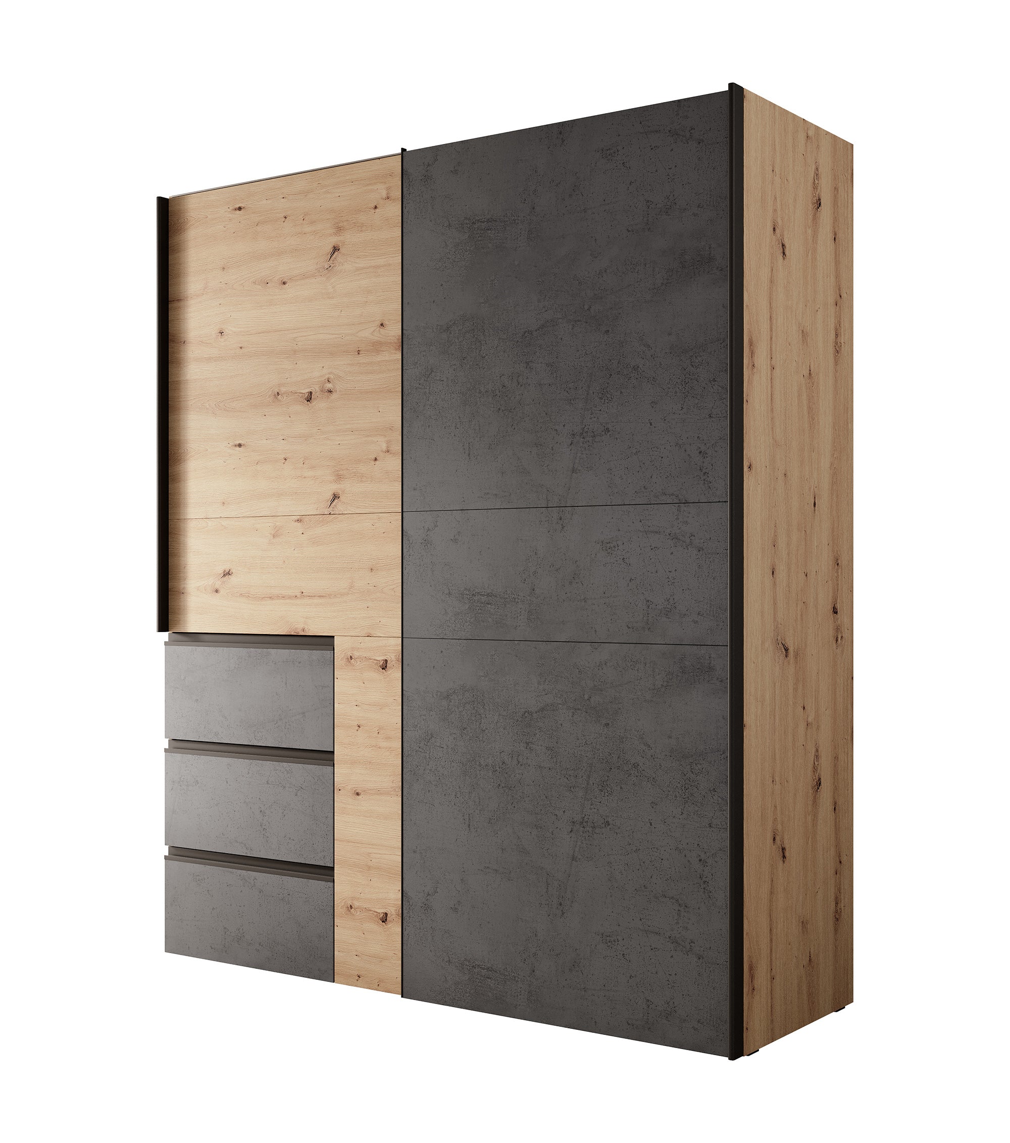 Meubella - Kledingkast Walter - Eiken - Grijs - 170 cm