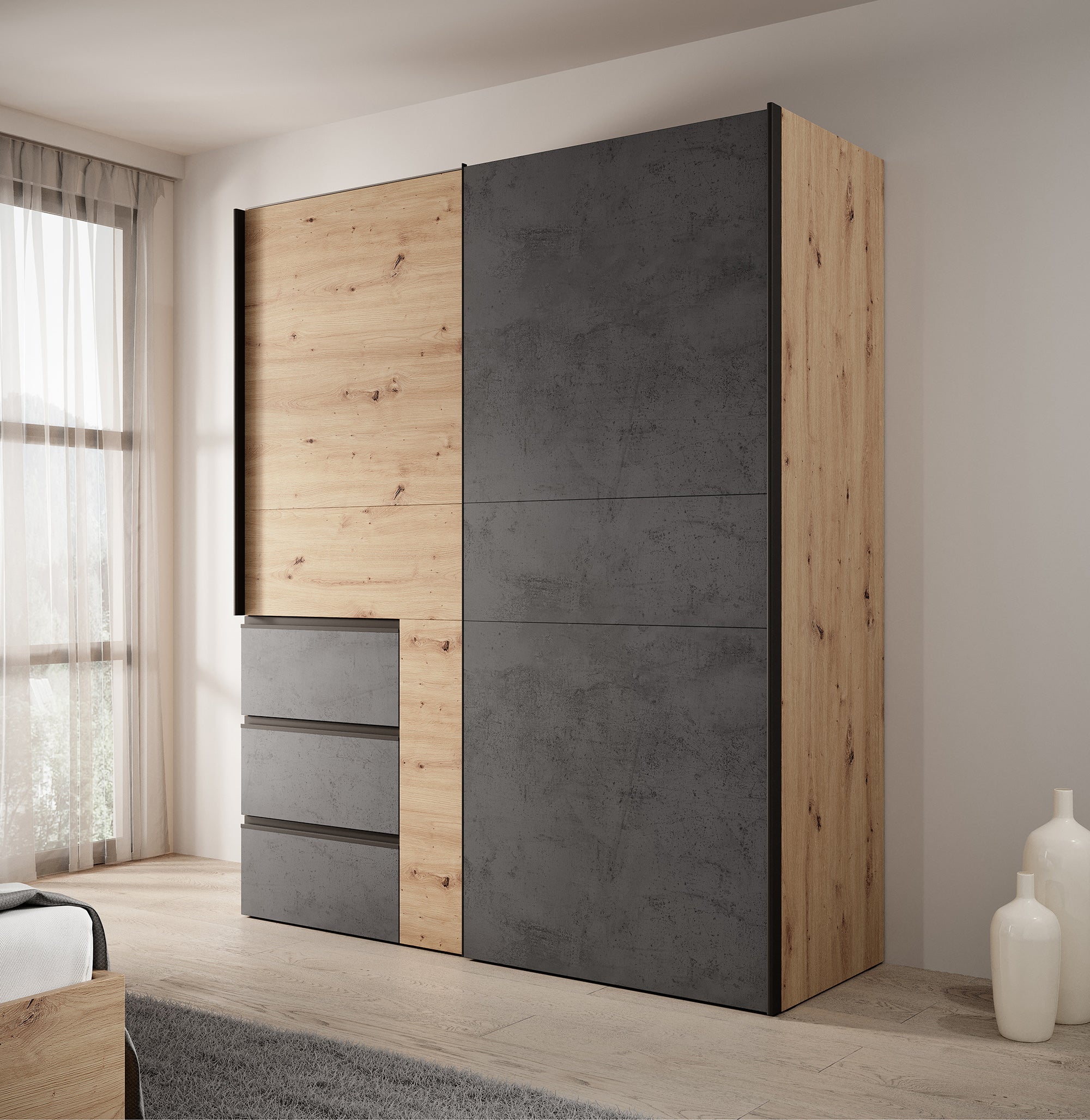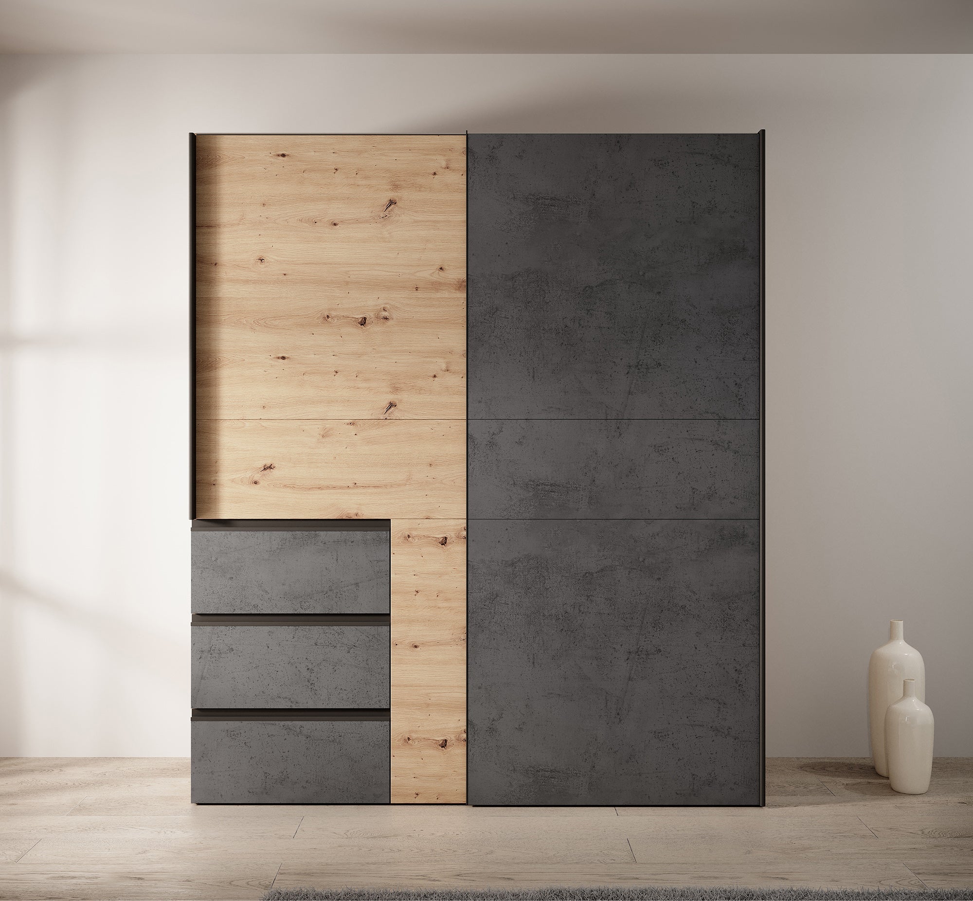 - Eiken met grijs betonlook kleur