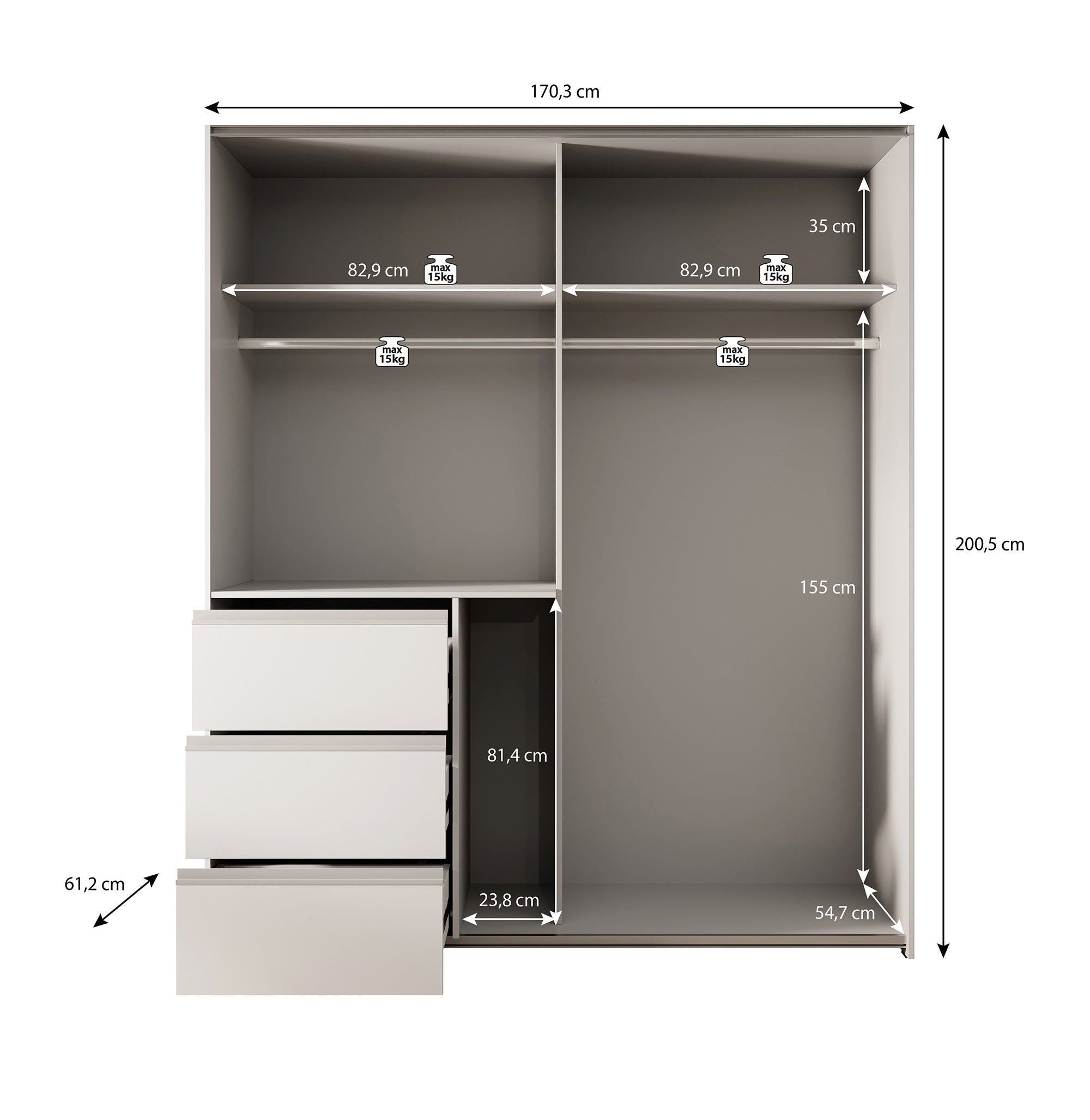 | Maat | H 200 x B 170 x D 61 cm |