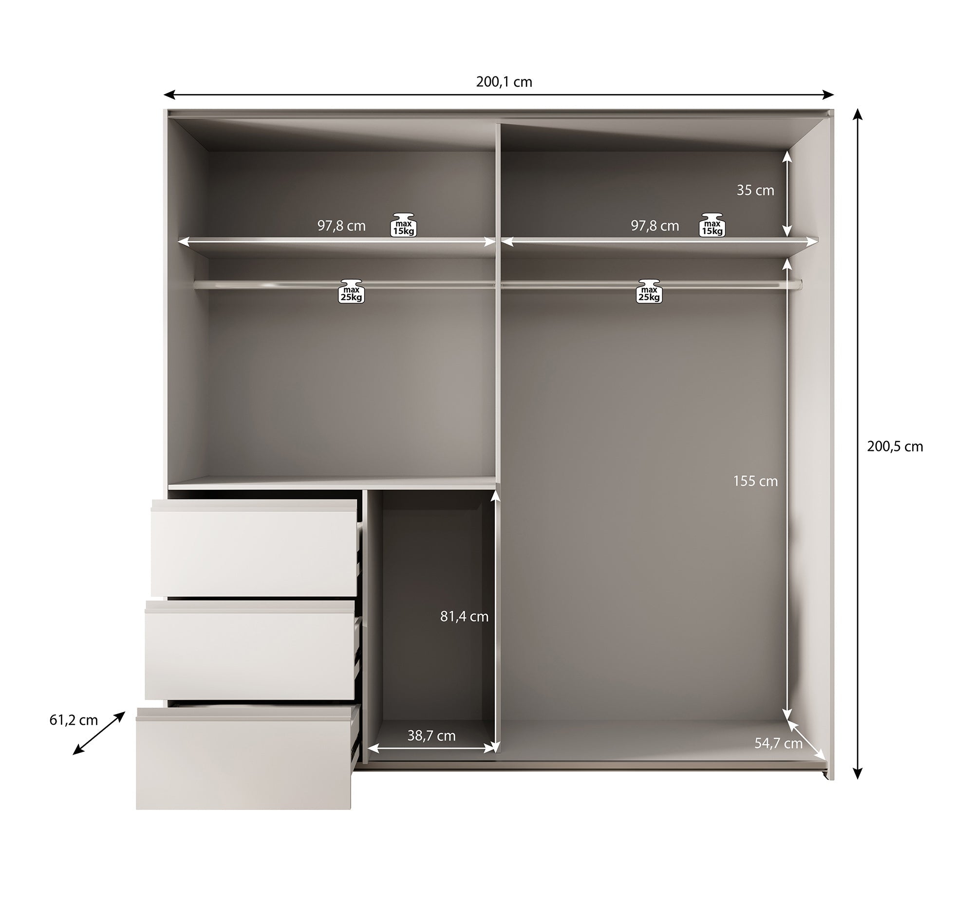 | Maat | H 200 x B 200 x D 61 cm |