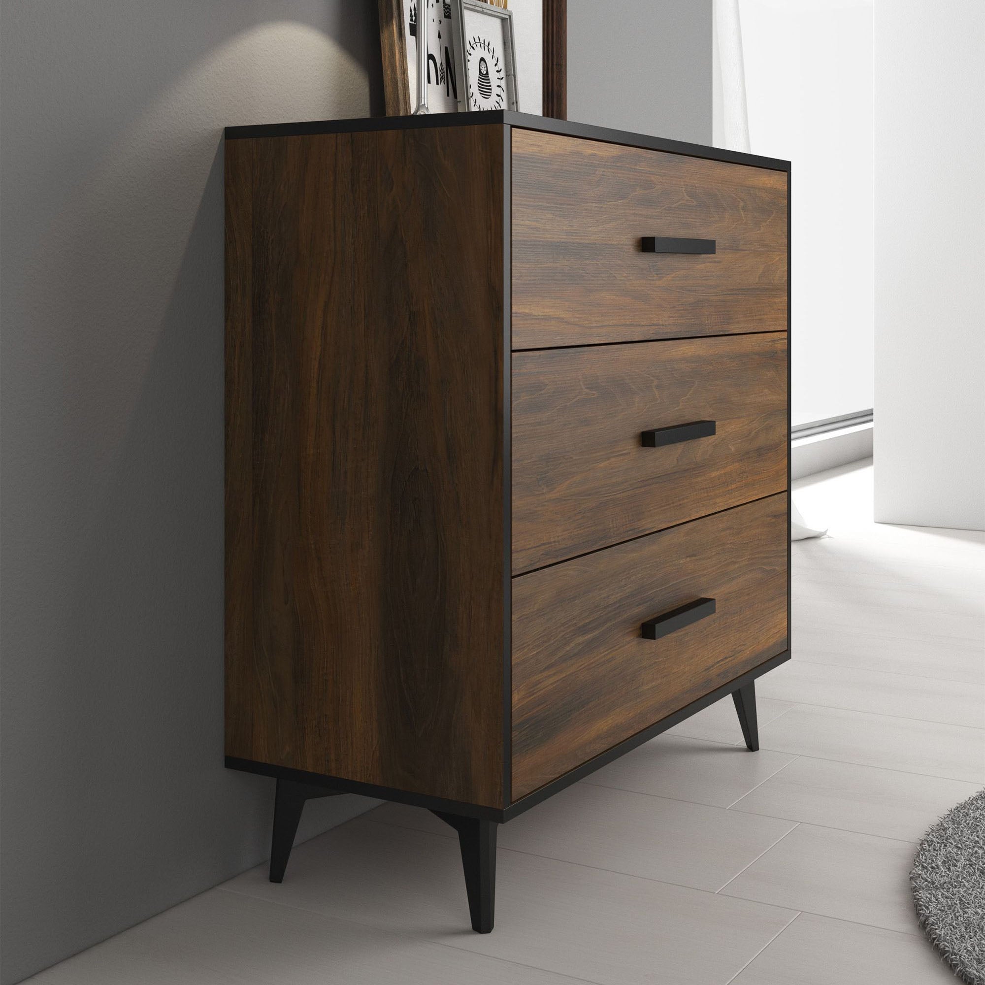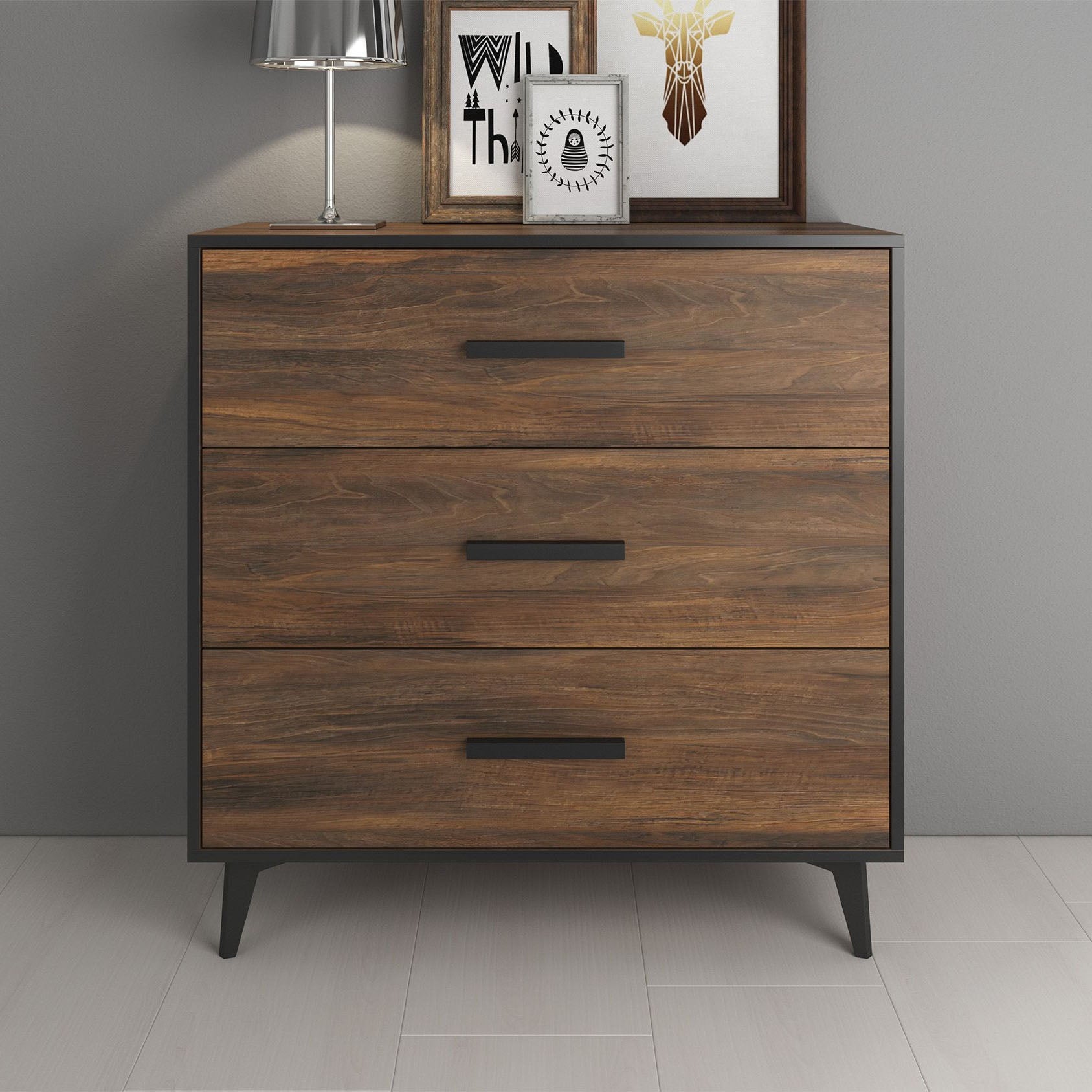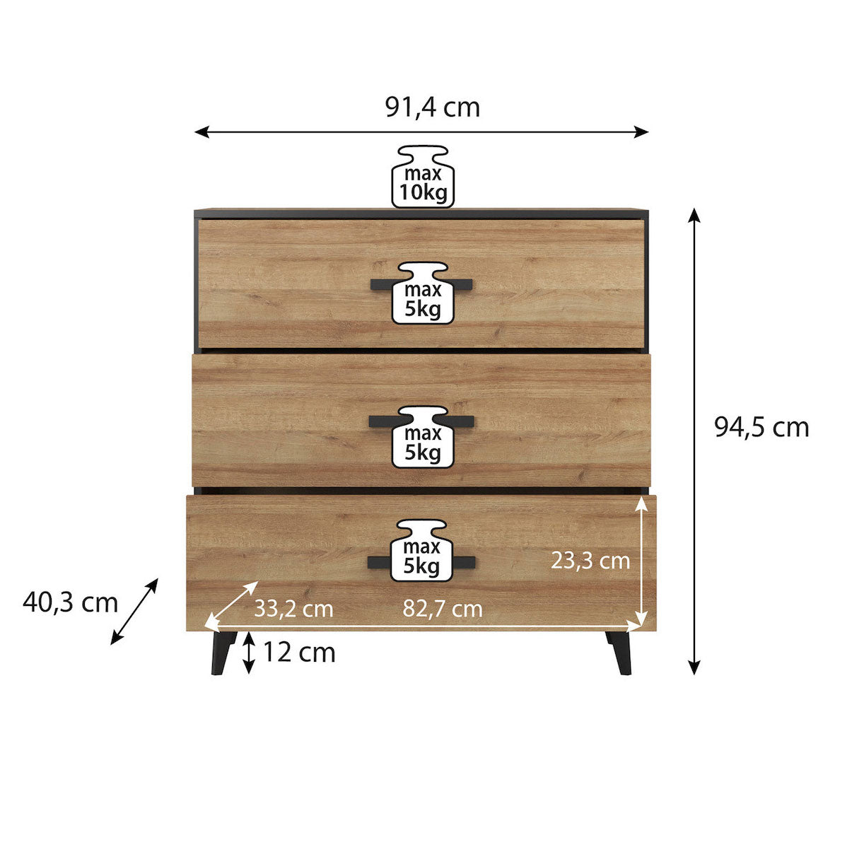 Meubella - Ladekast Frey - Donker eiken - Zwart - 91 cm