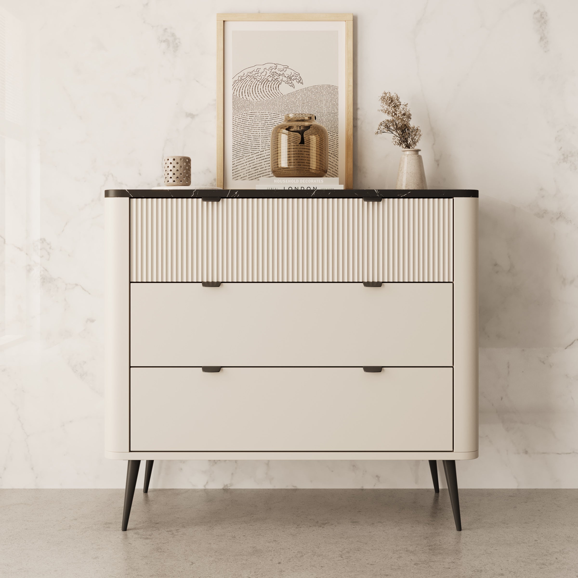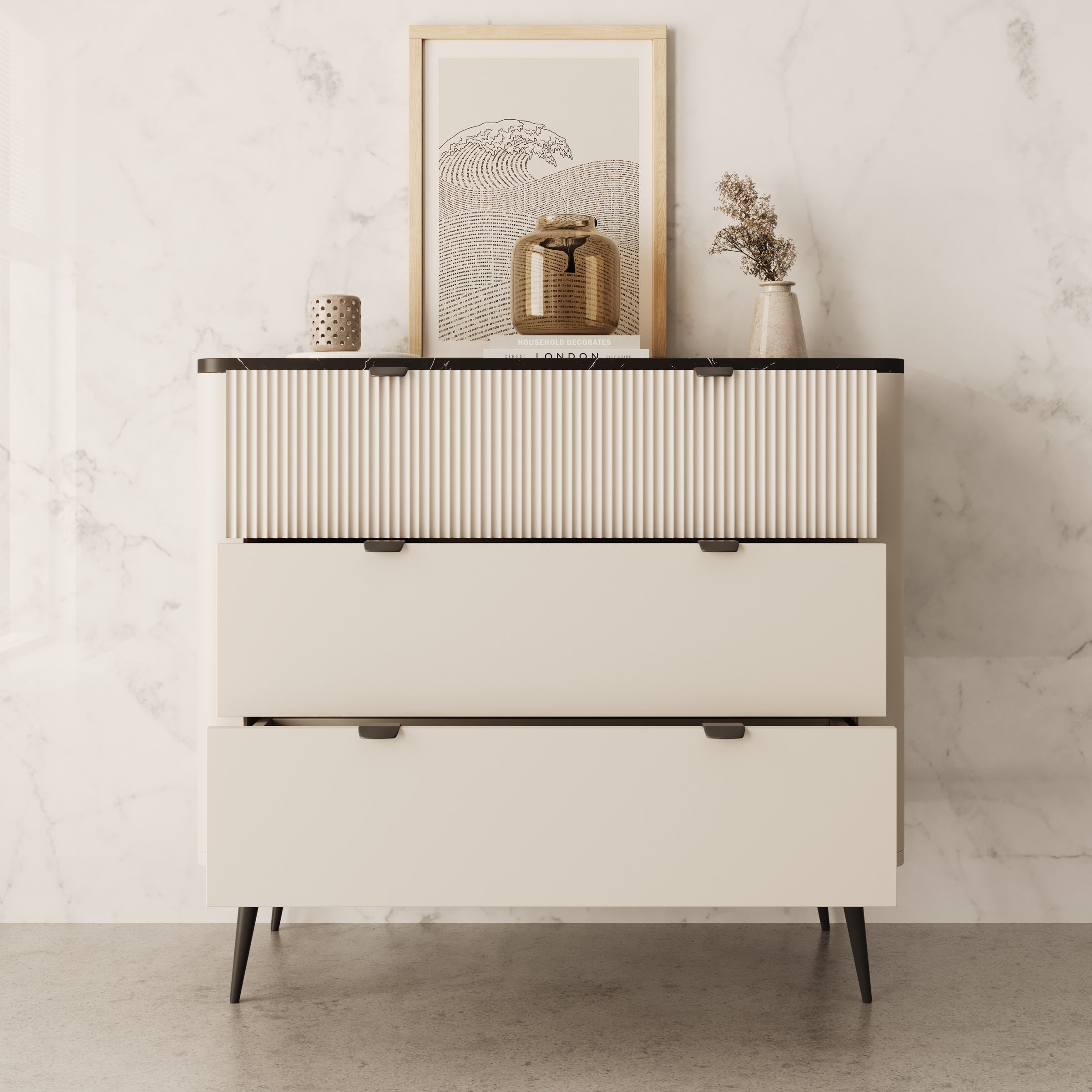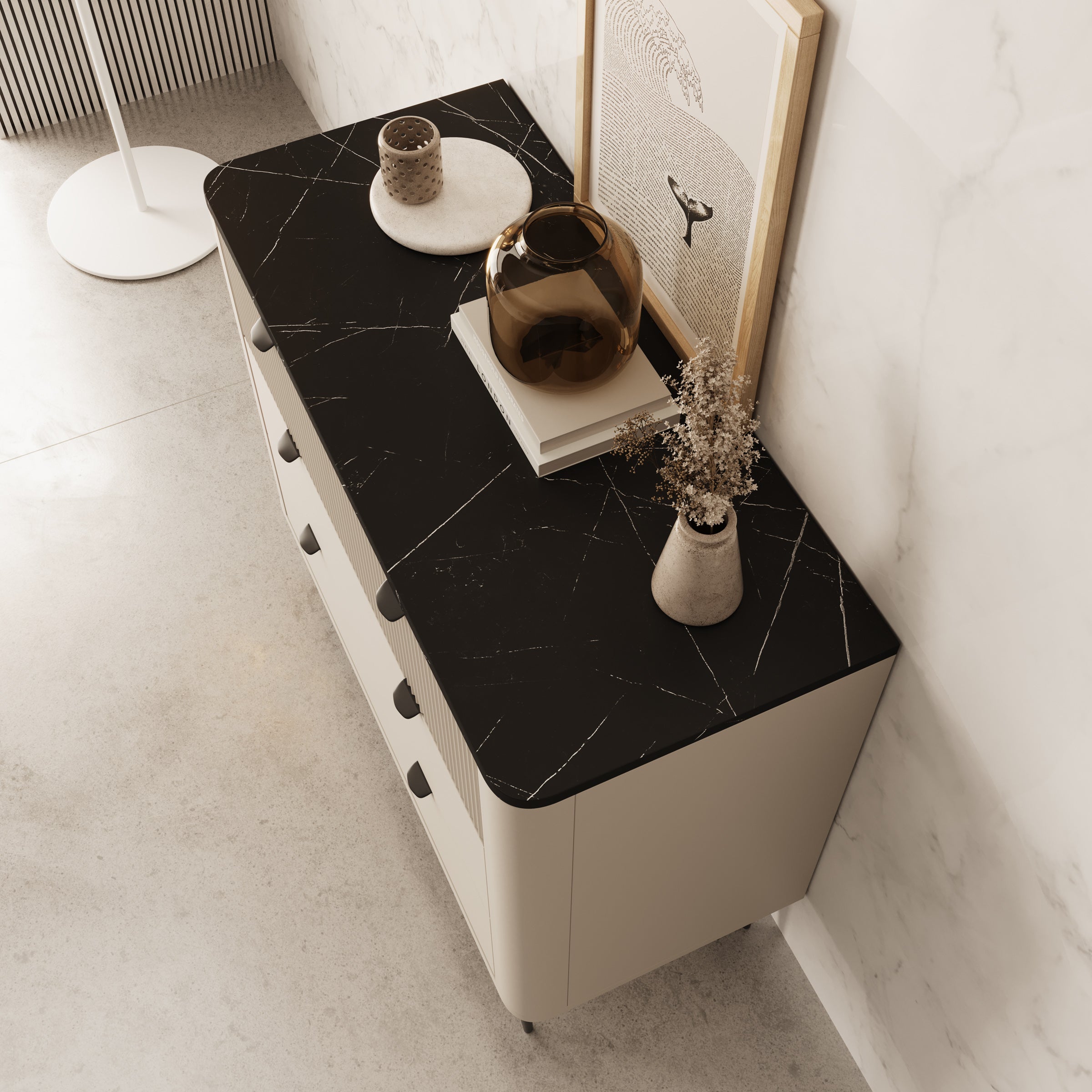 - Zwart marmerlook bovenblad