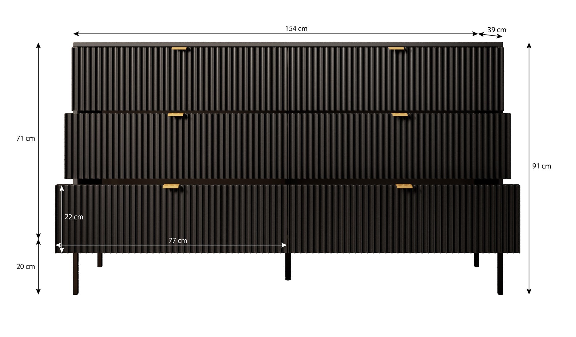 Maat | H 91 x B 154 x D 39 cm |