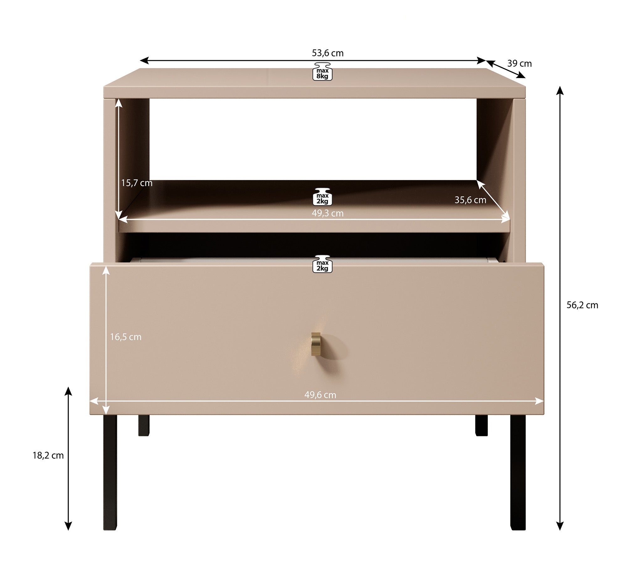 Meubella - Nachtkastje Moreno - Beige - 54 cm