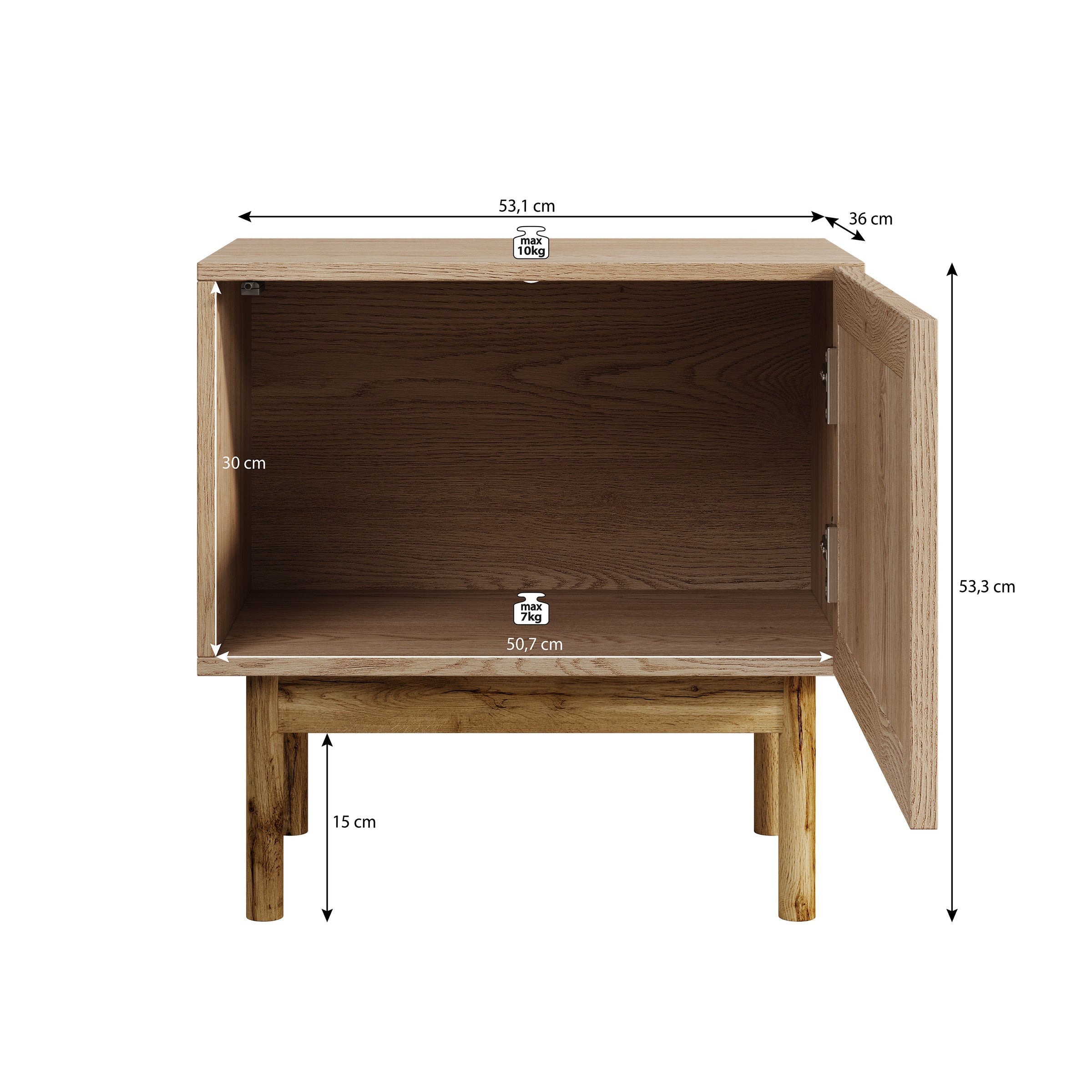 Meubella - Nachtkastje Storm - Eiken - 53 cm