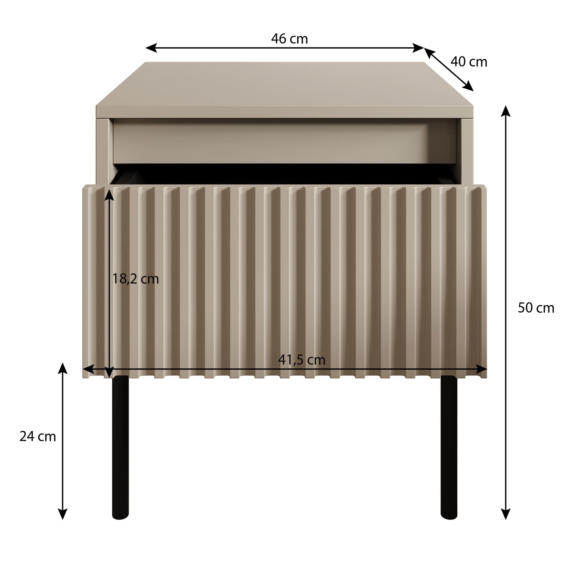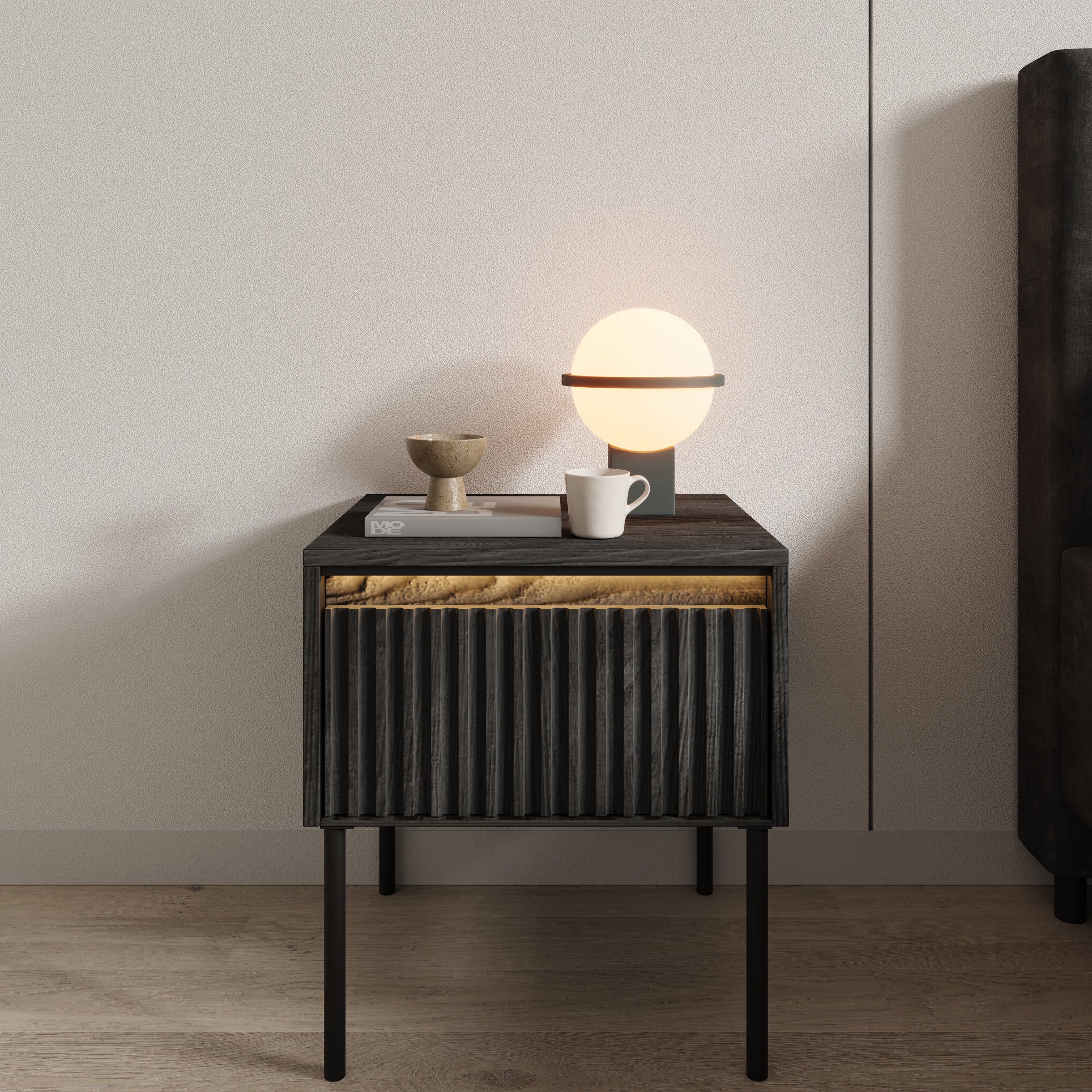 Meubella - Nachtkastje Timoteo - Mat zwart - 46 cm