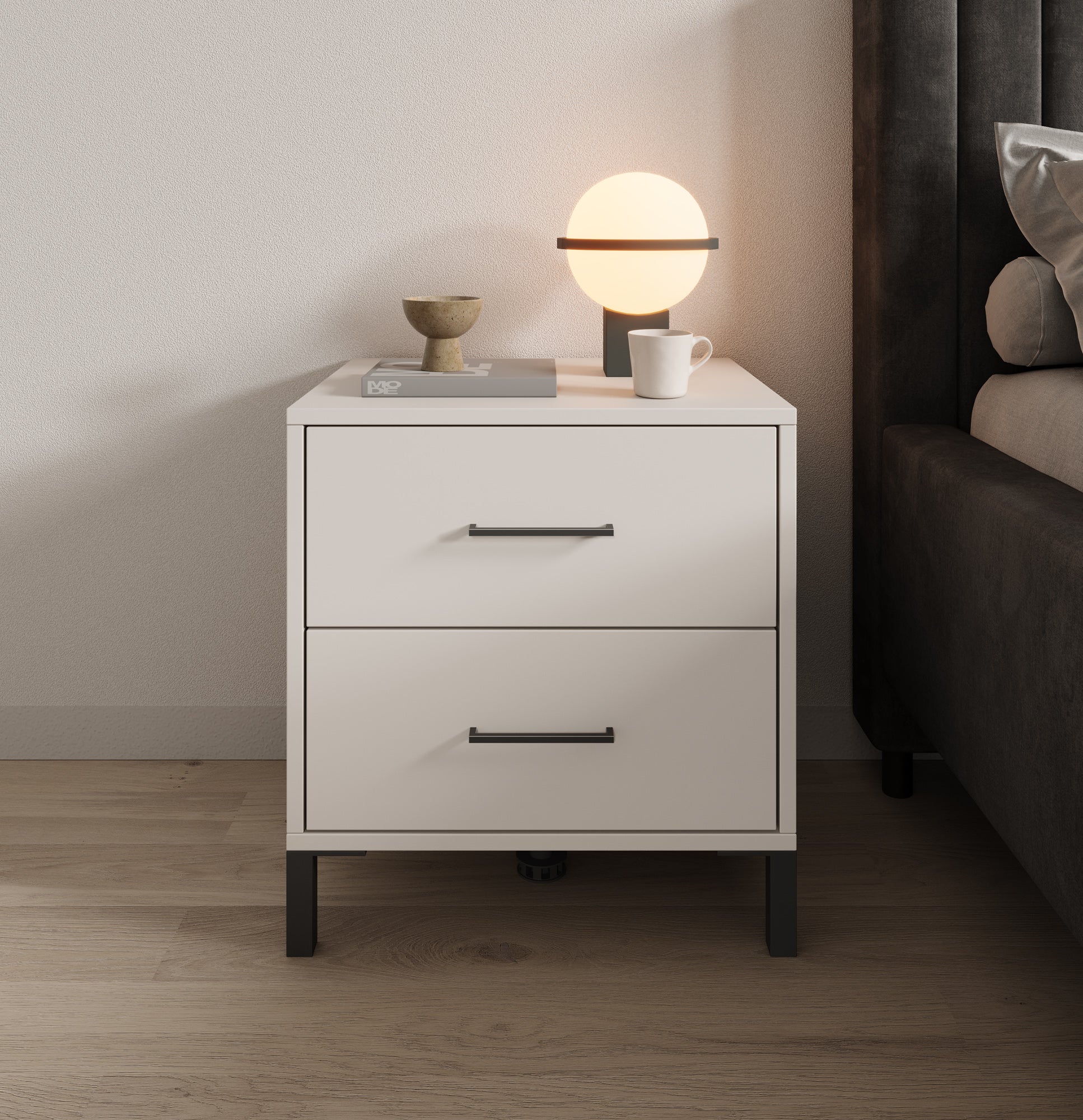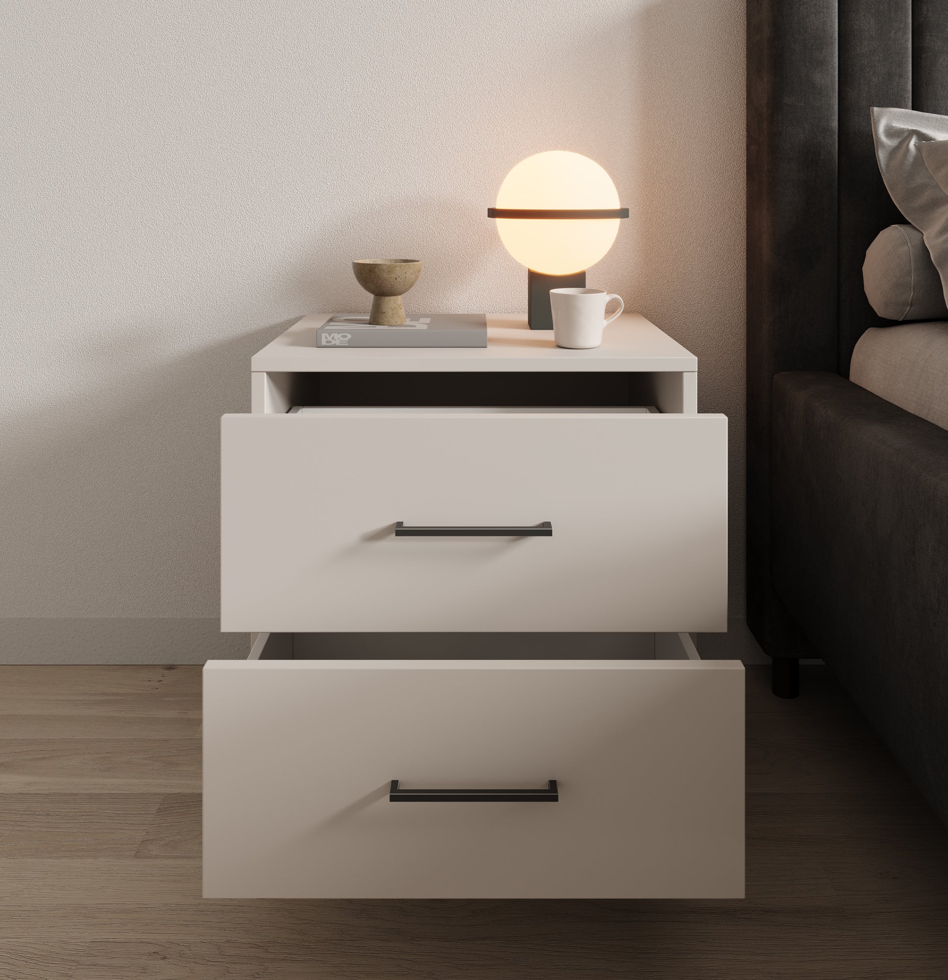 - Lades met zwarte handgrepen