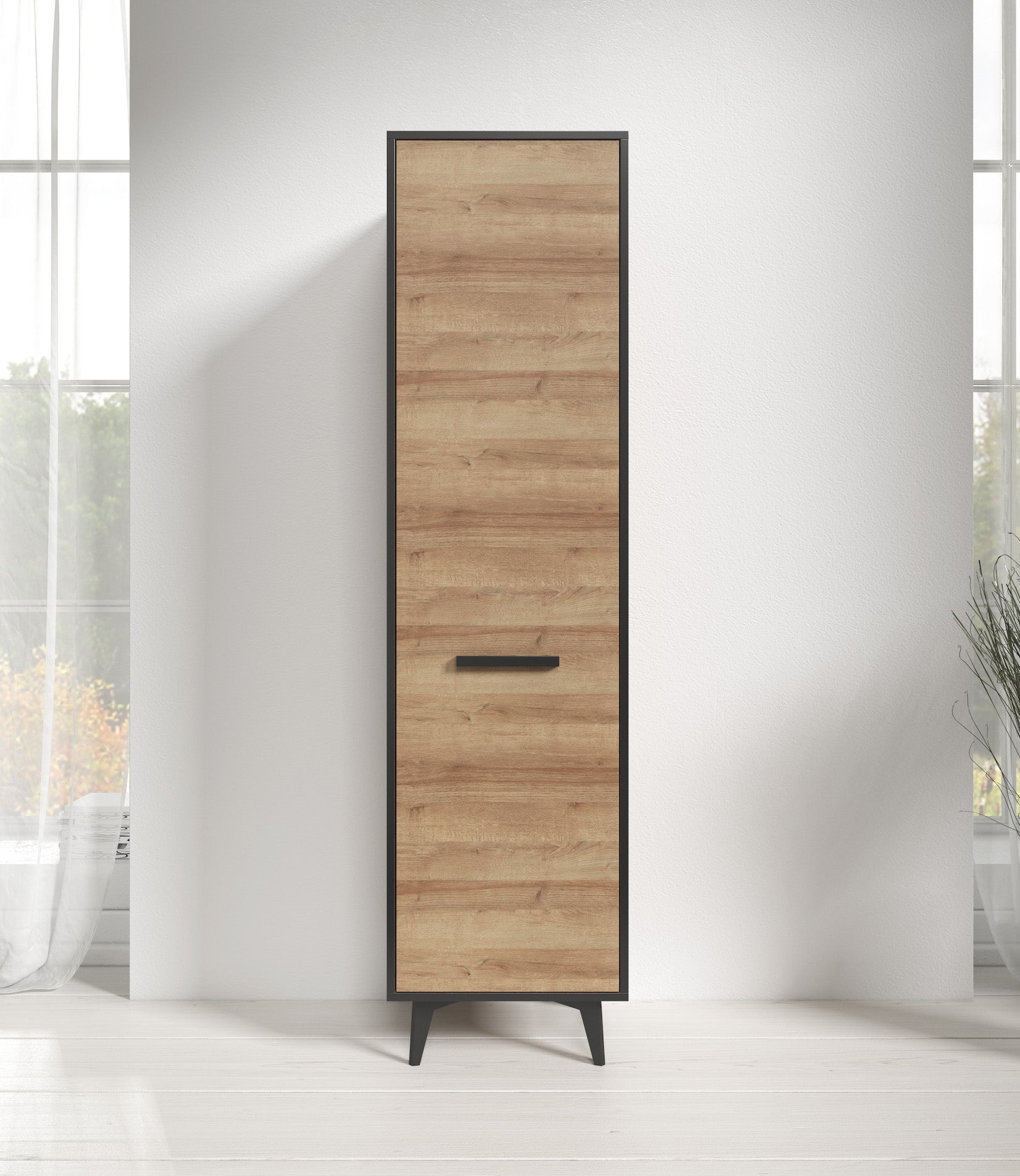 Meubella Opbergkast Frey - Licht eiken - Zwart - 48 cm