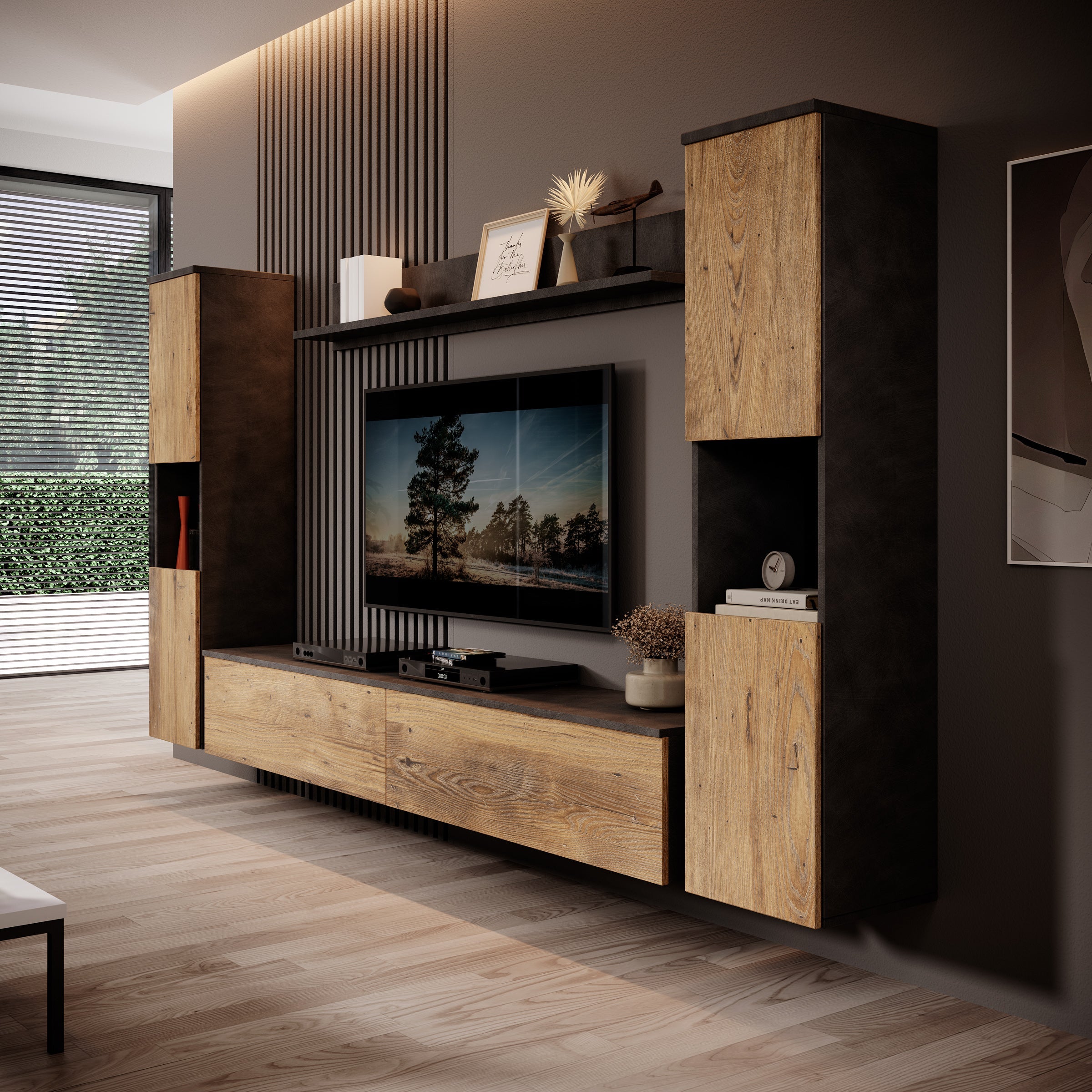 Meubella - Pure XL - Wandmeubel - Eiken|Grijs - 180x33x130 cm