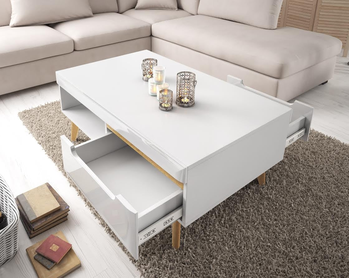 Meubella - Salontafel Nebraska - Wit - Eiken - 107 cm