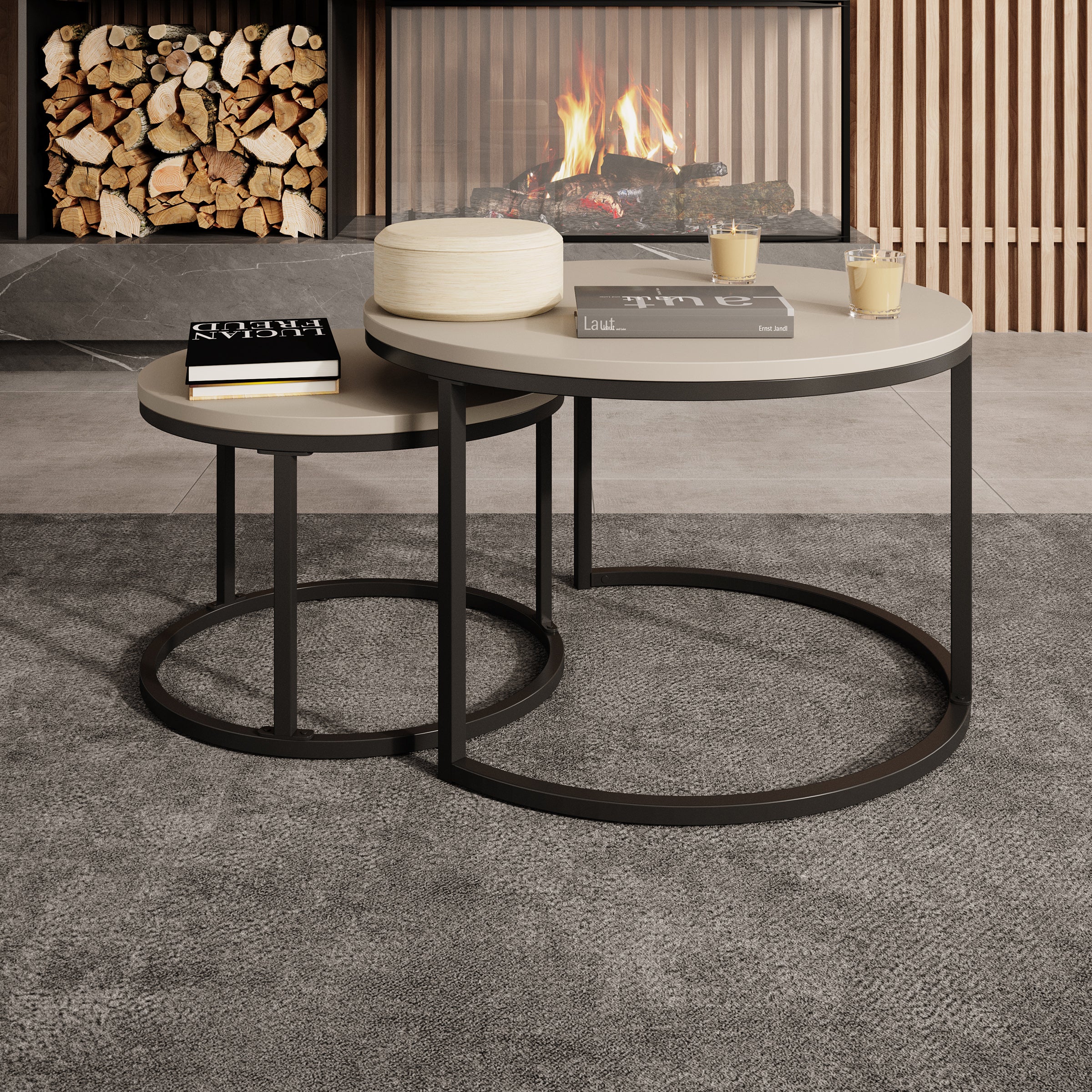 Meubella - Salontafel Ovalo - Beige - set van 2
