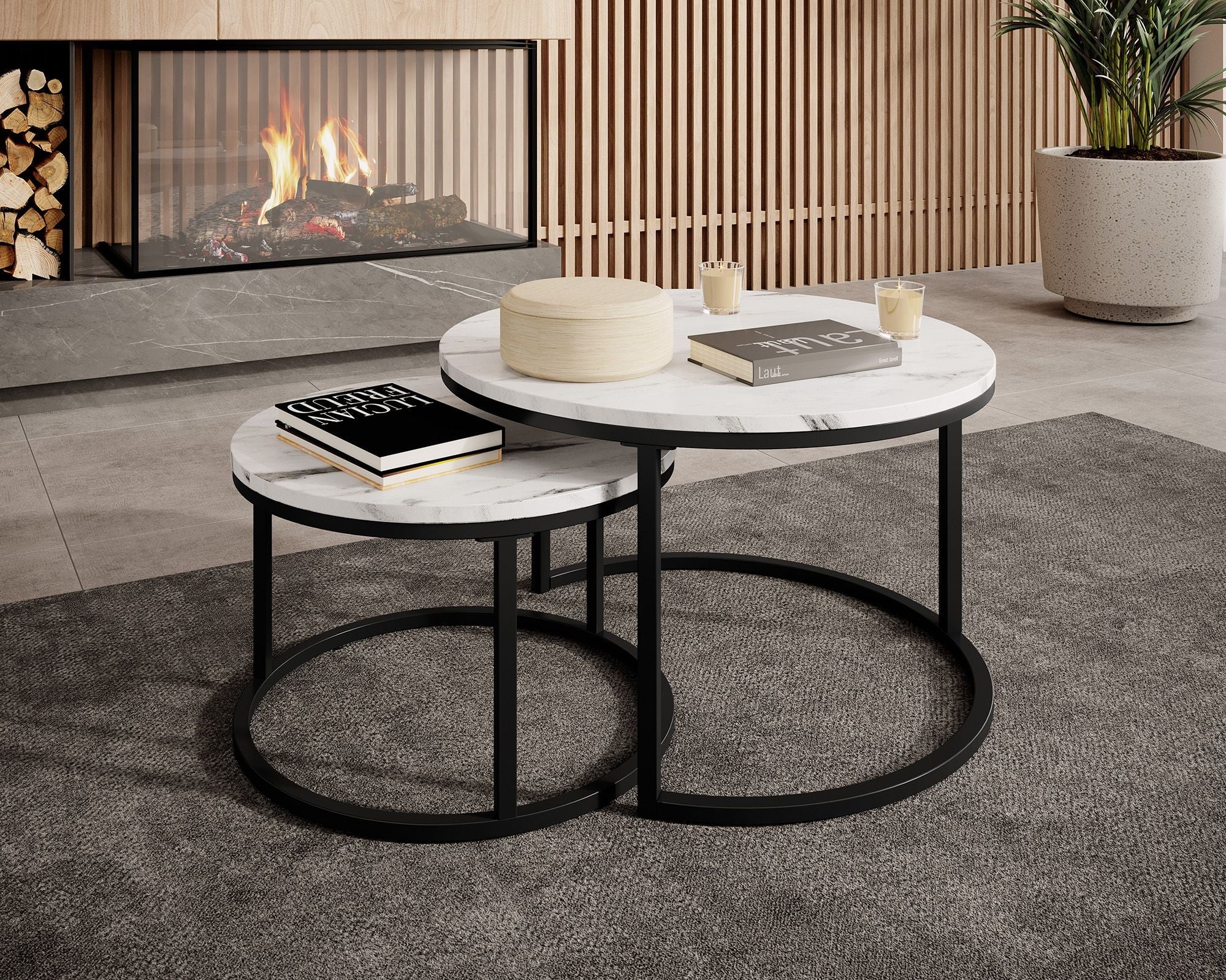 Meubella - Salontafel Rica - Wit marmerlook - Set van 2