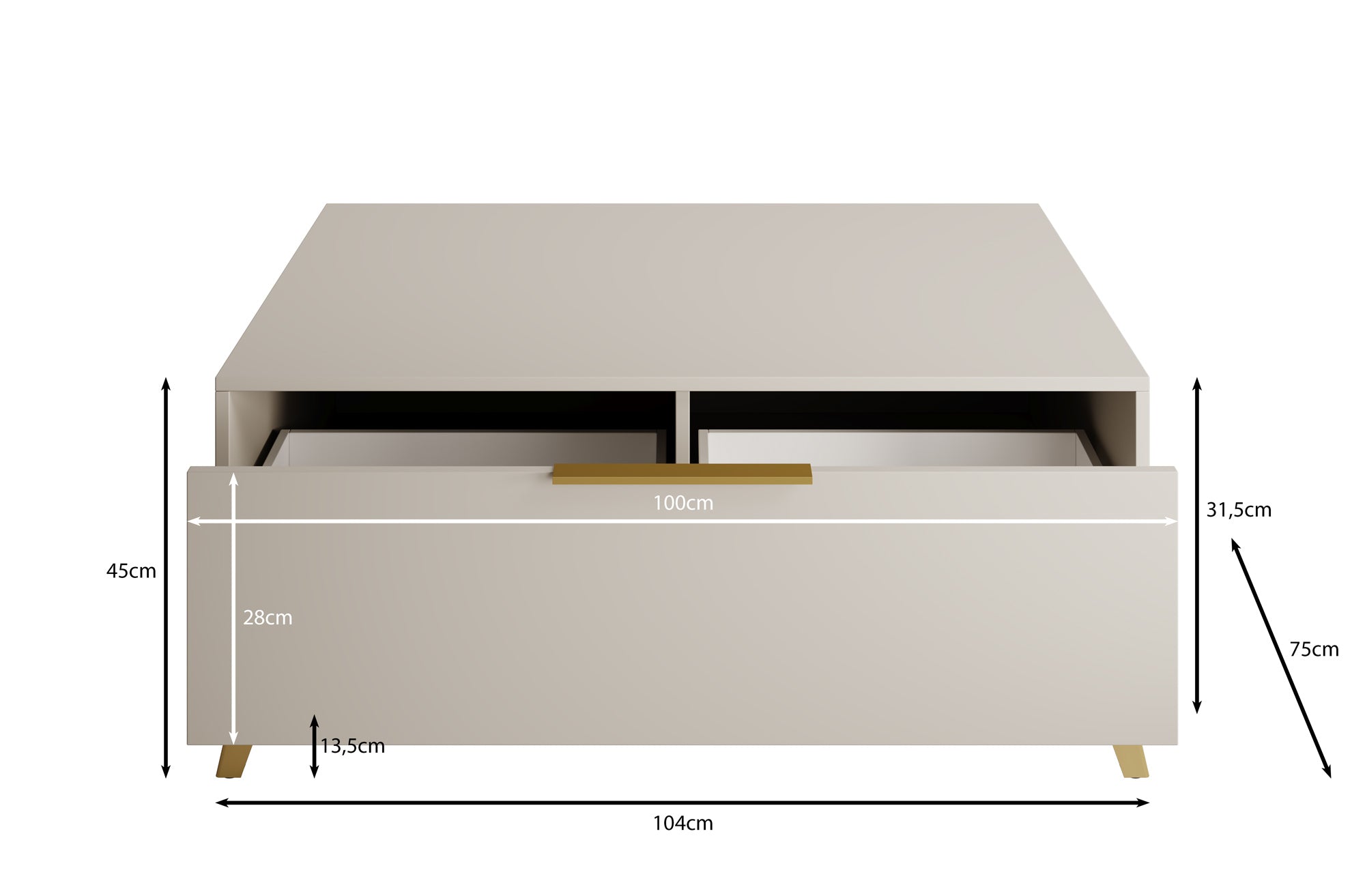 - Lade opent met goudkleurige handgreep
