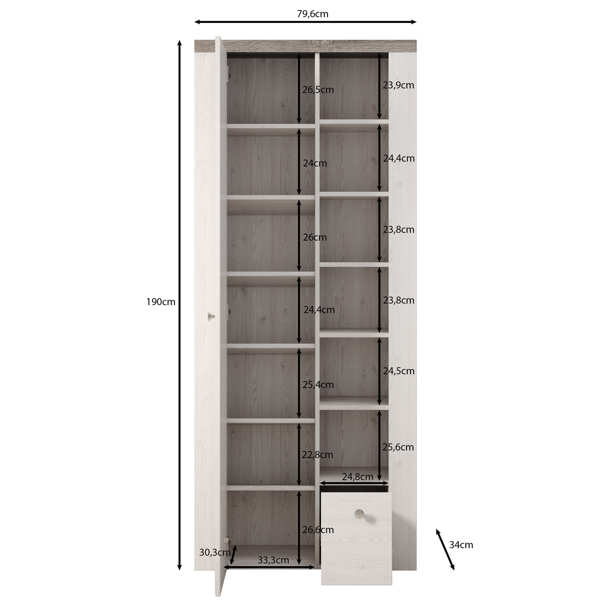 | Maat | H 190 x B 80 x D 34 |