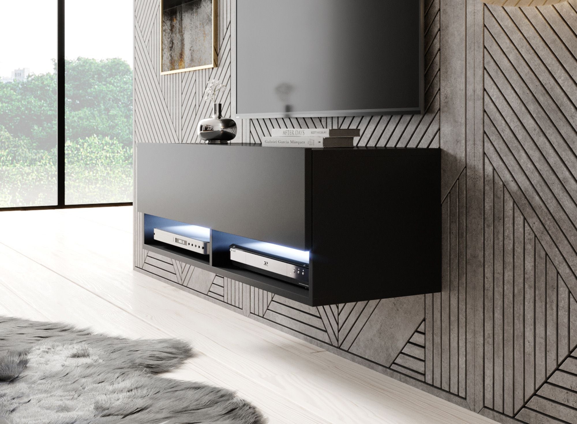 Meubella TV-Meubel Asino LED - Mat Zwart - 100 cm