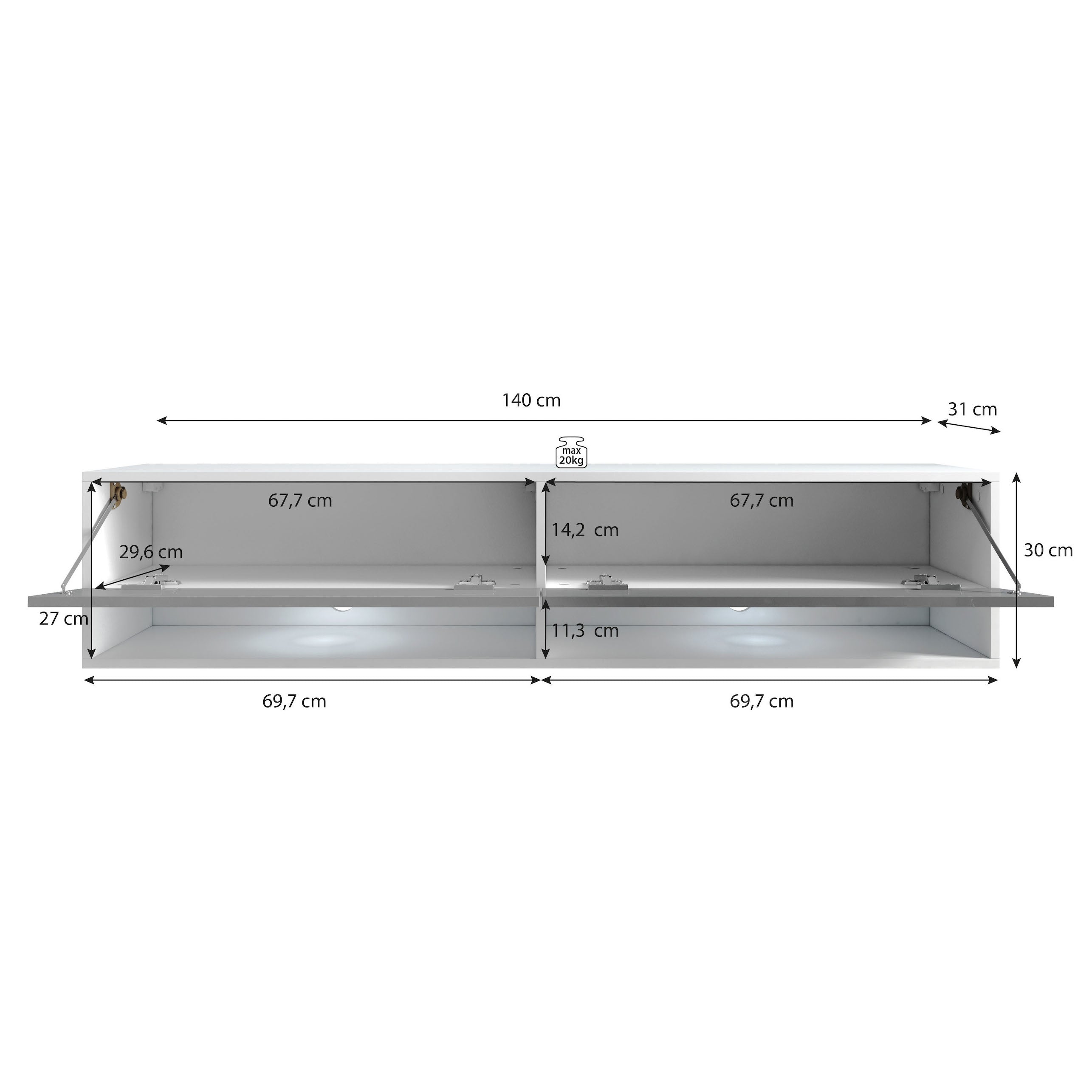 Meubella TV-Meubel Asino LED - Mat Zwart - 140 cm