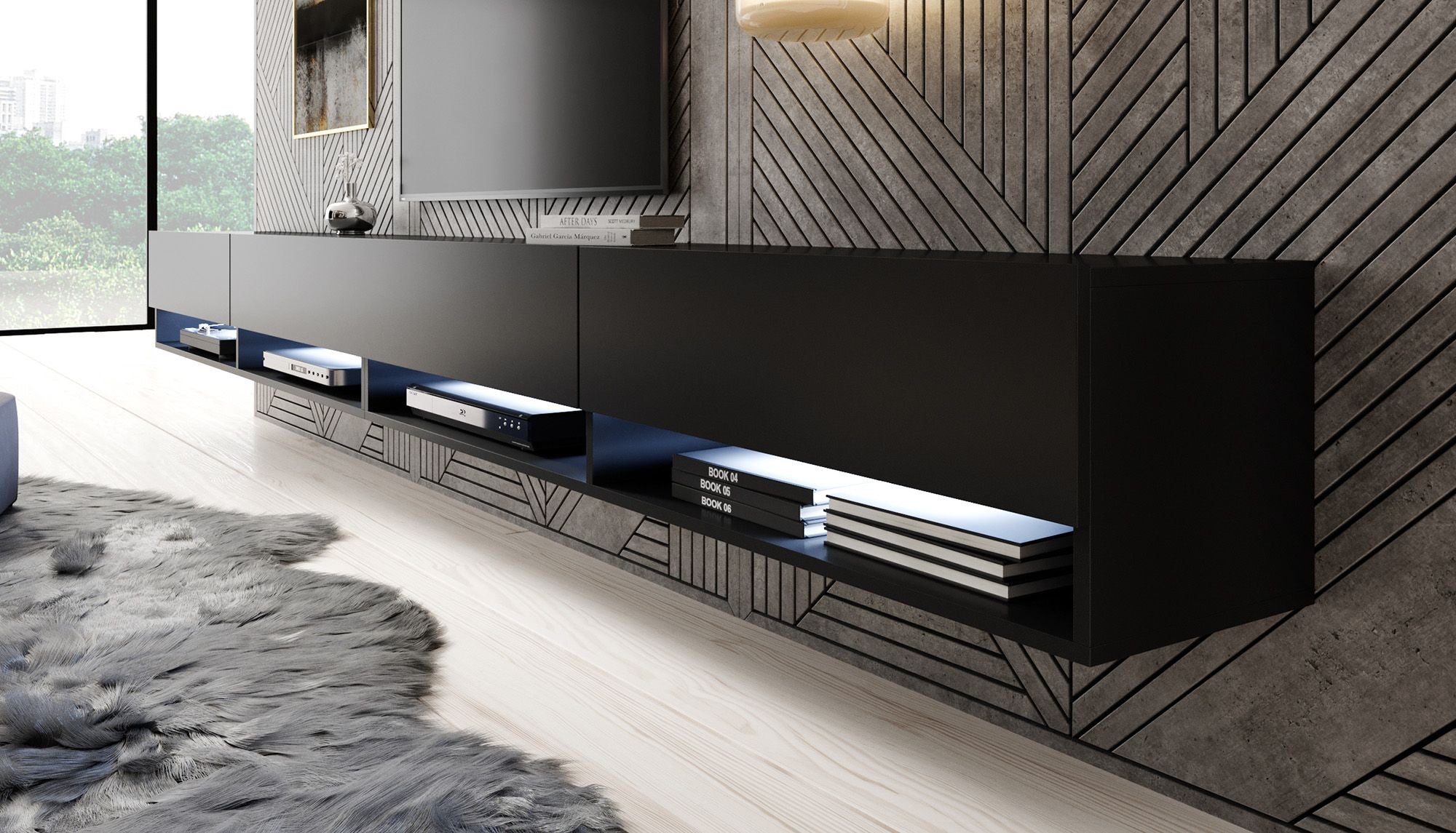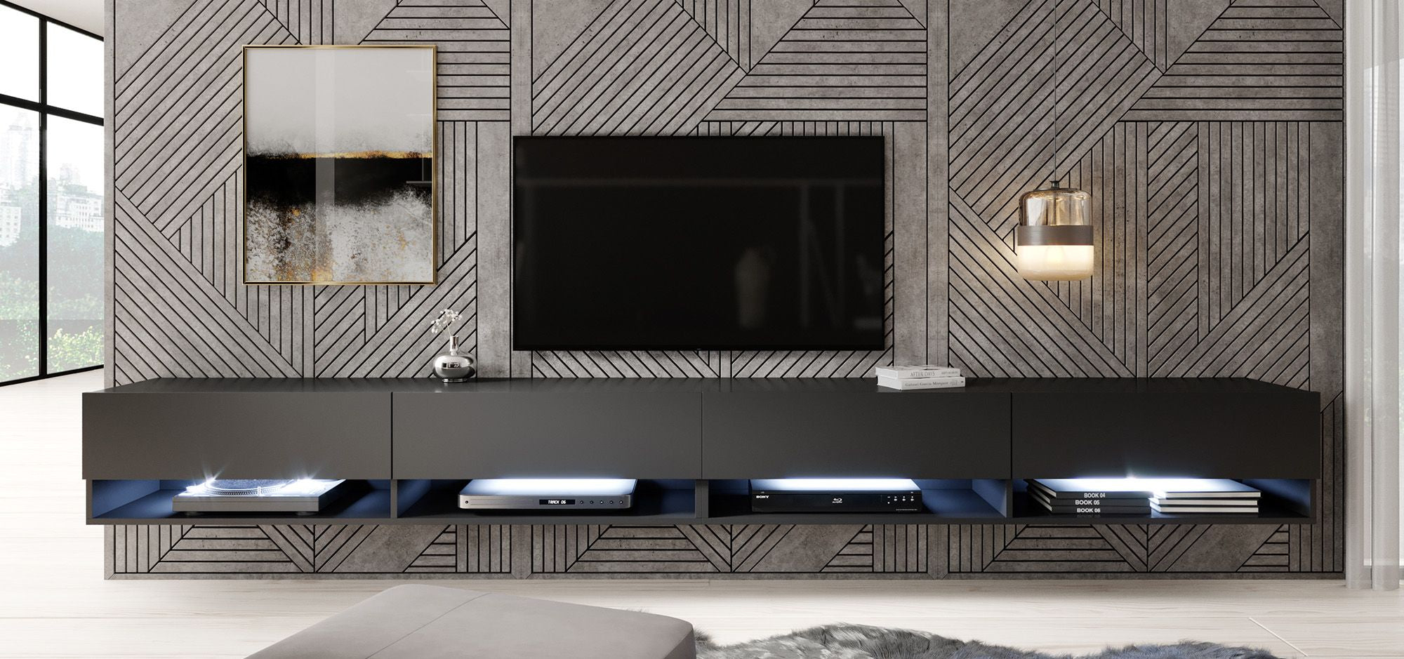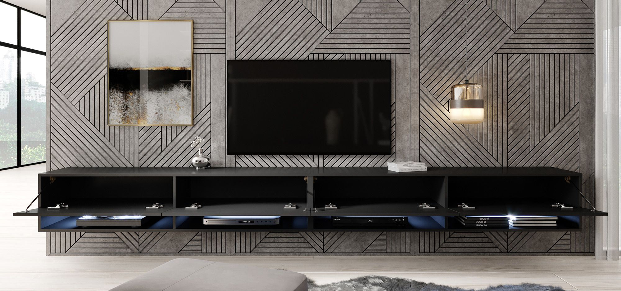 Meubella TV-Meubel Asino LED - Mat Zwart - 280 cm