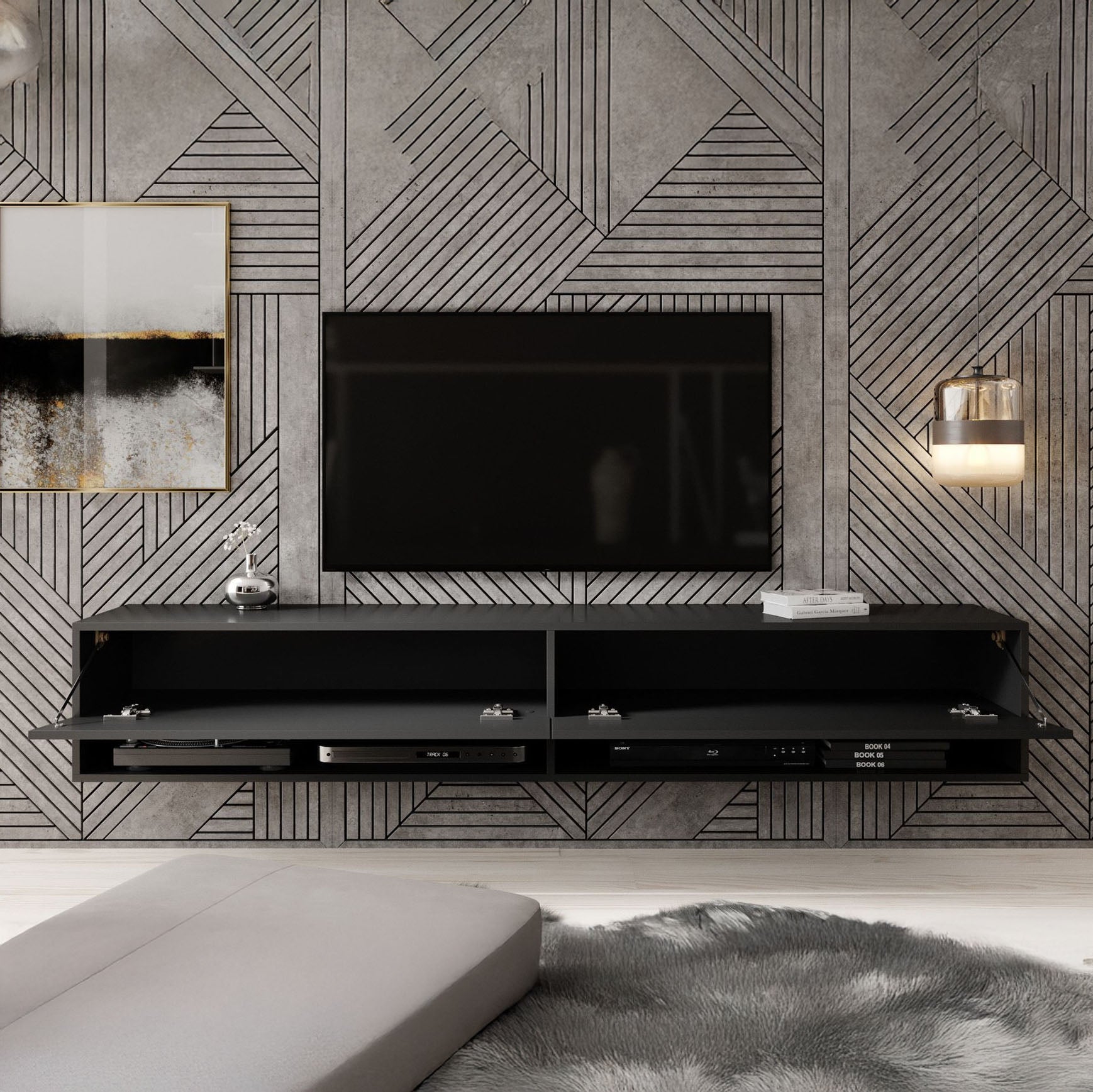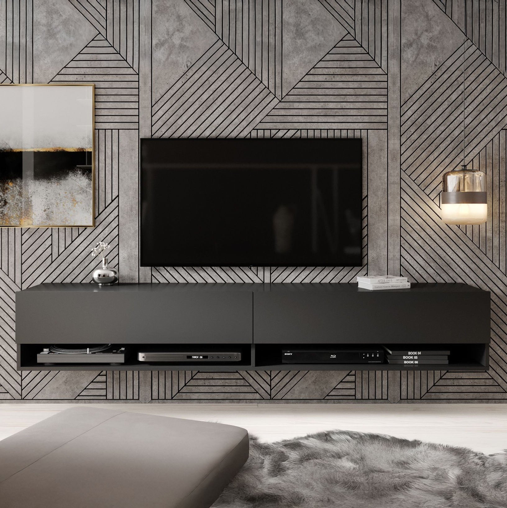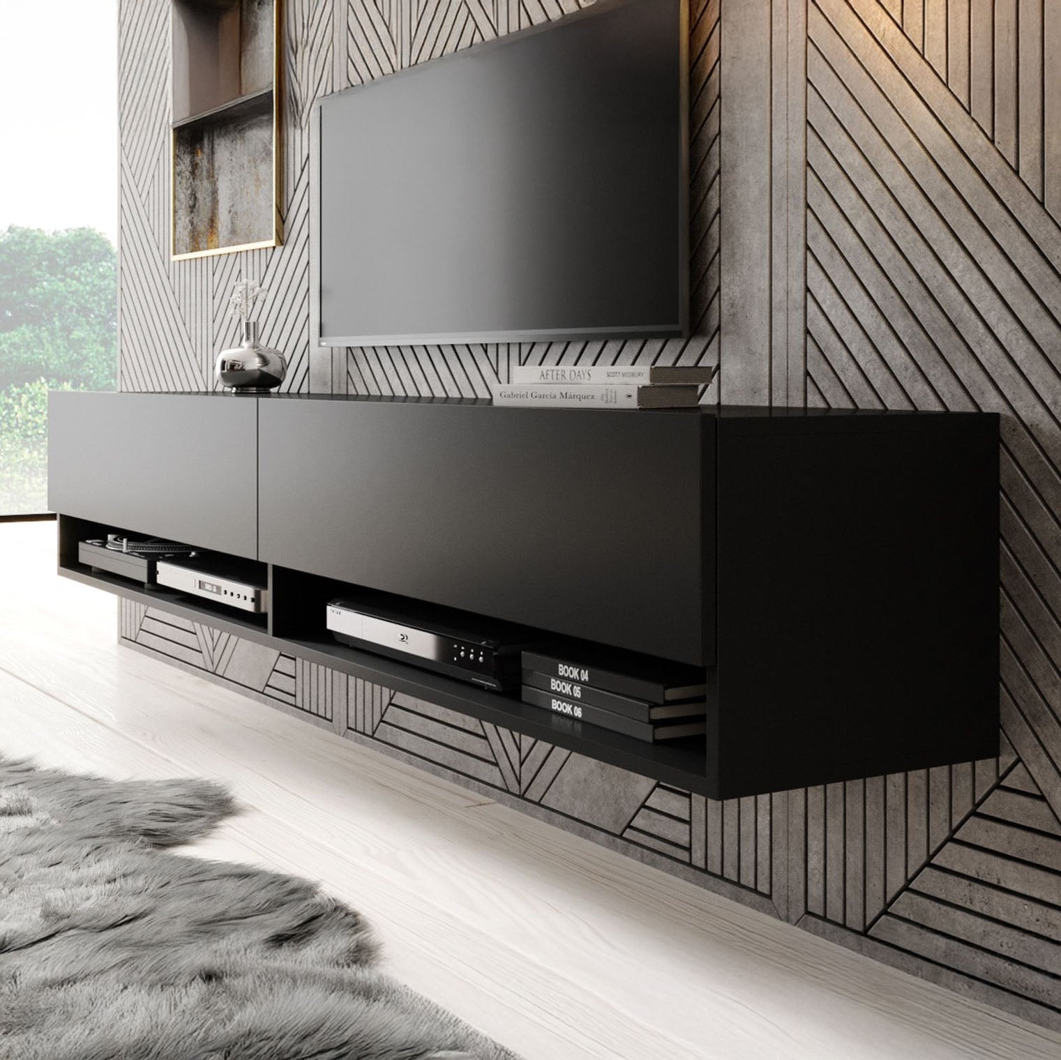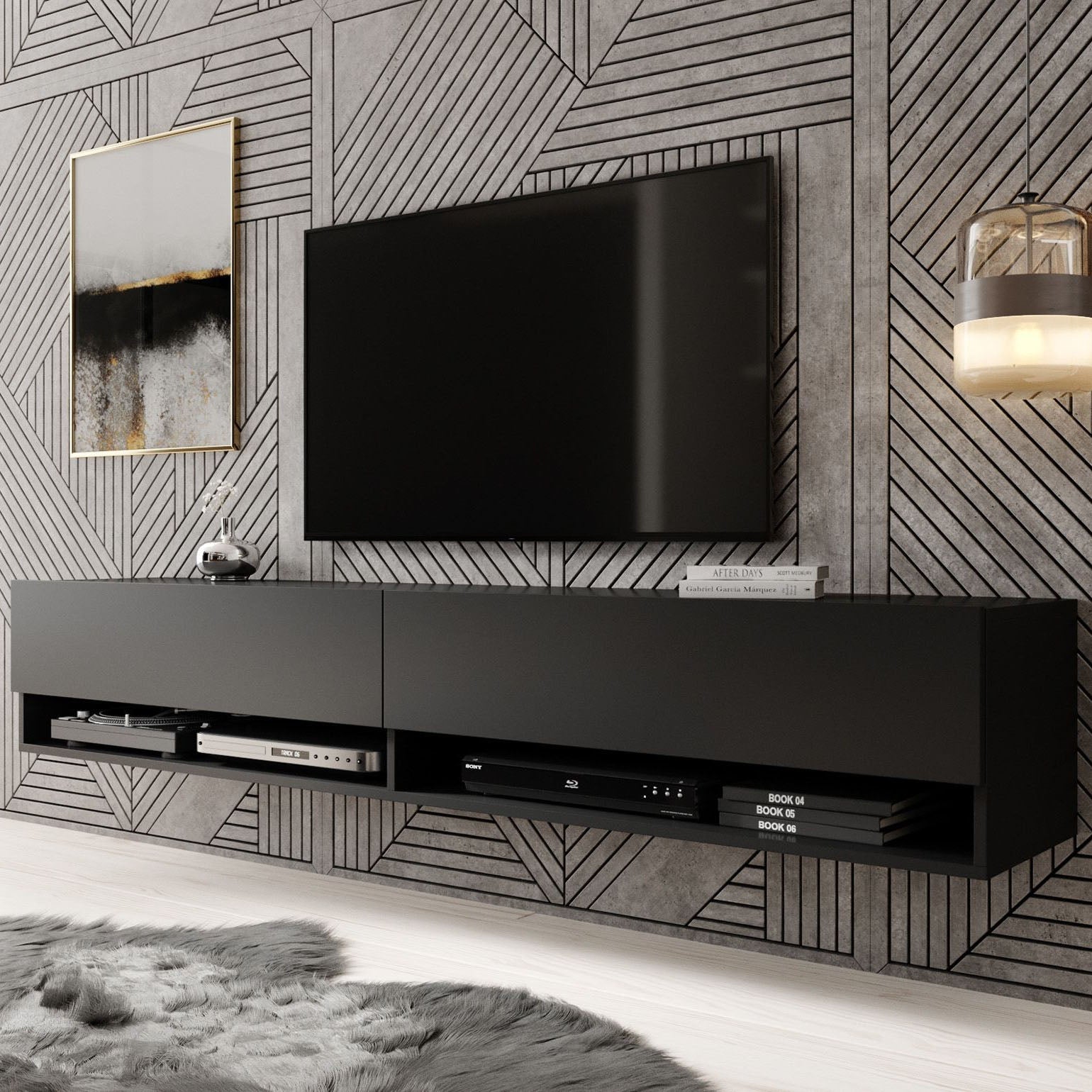 Meubella - TV-Meubel Asino - Mat Zwart - 180 cm