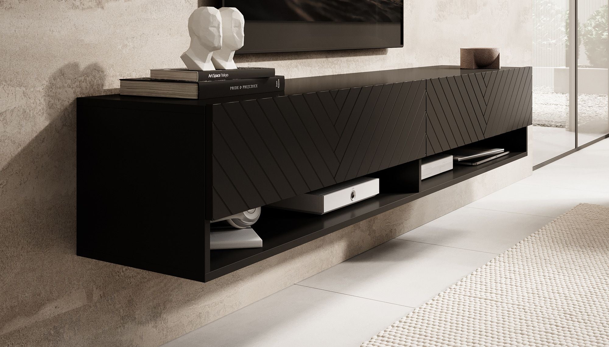 Meubella TV-Meubel Asino - Zwart Visgraat - 180 cm