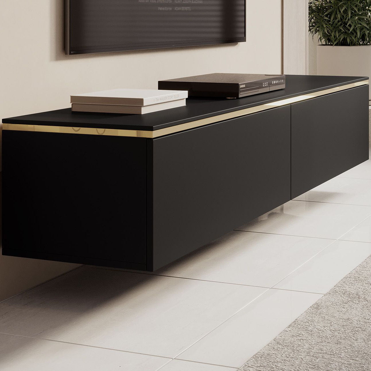 Meubella - TV-Meubel Assunta - Mat zwart - 180 cm