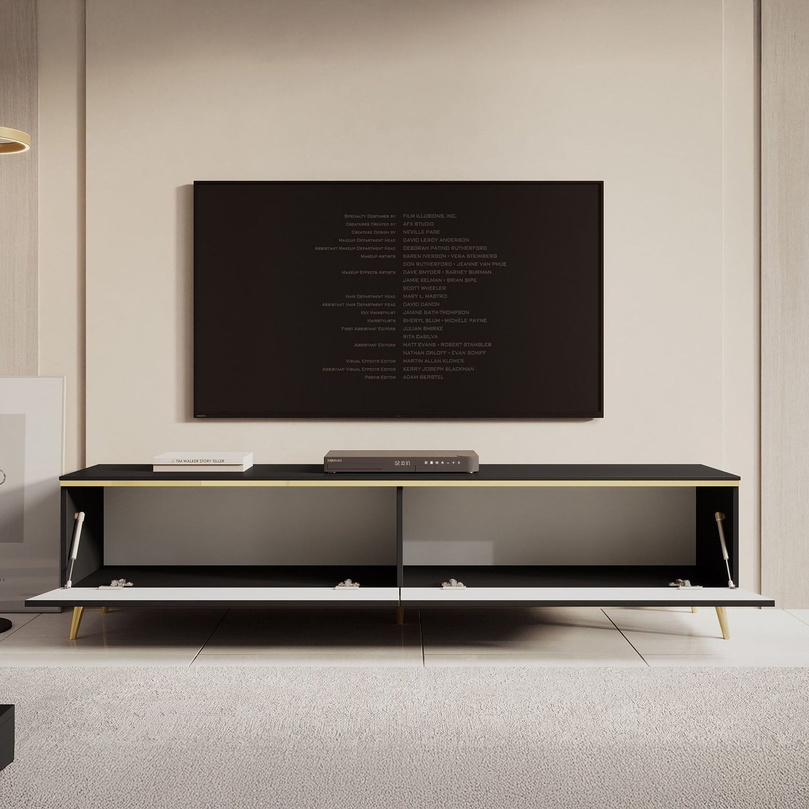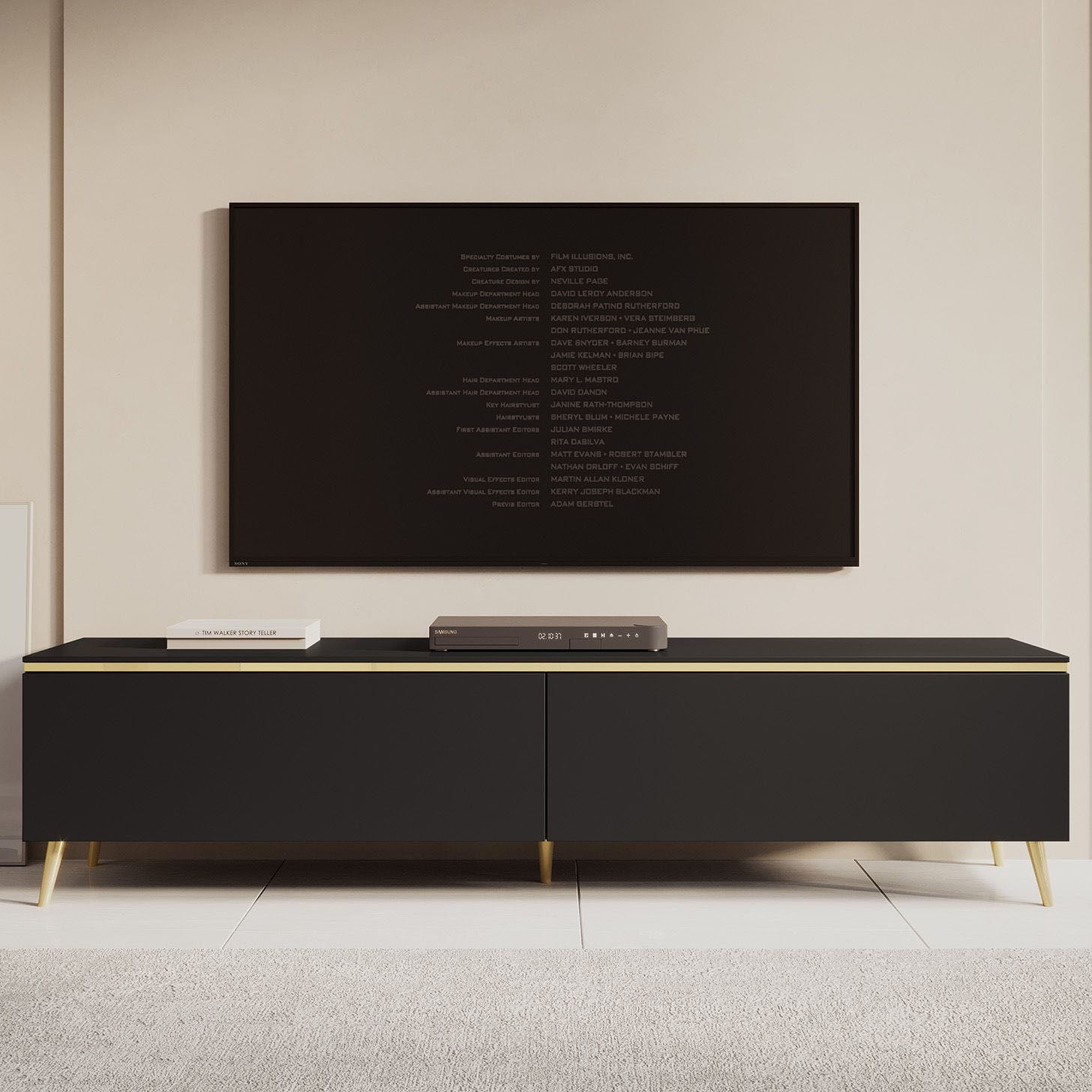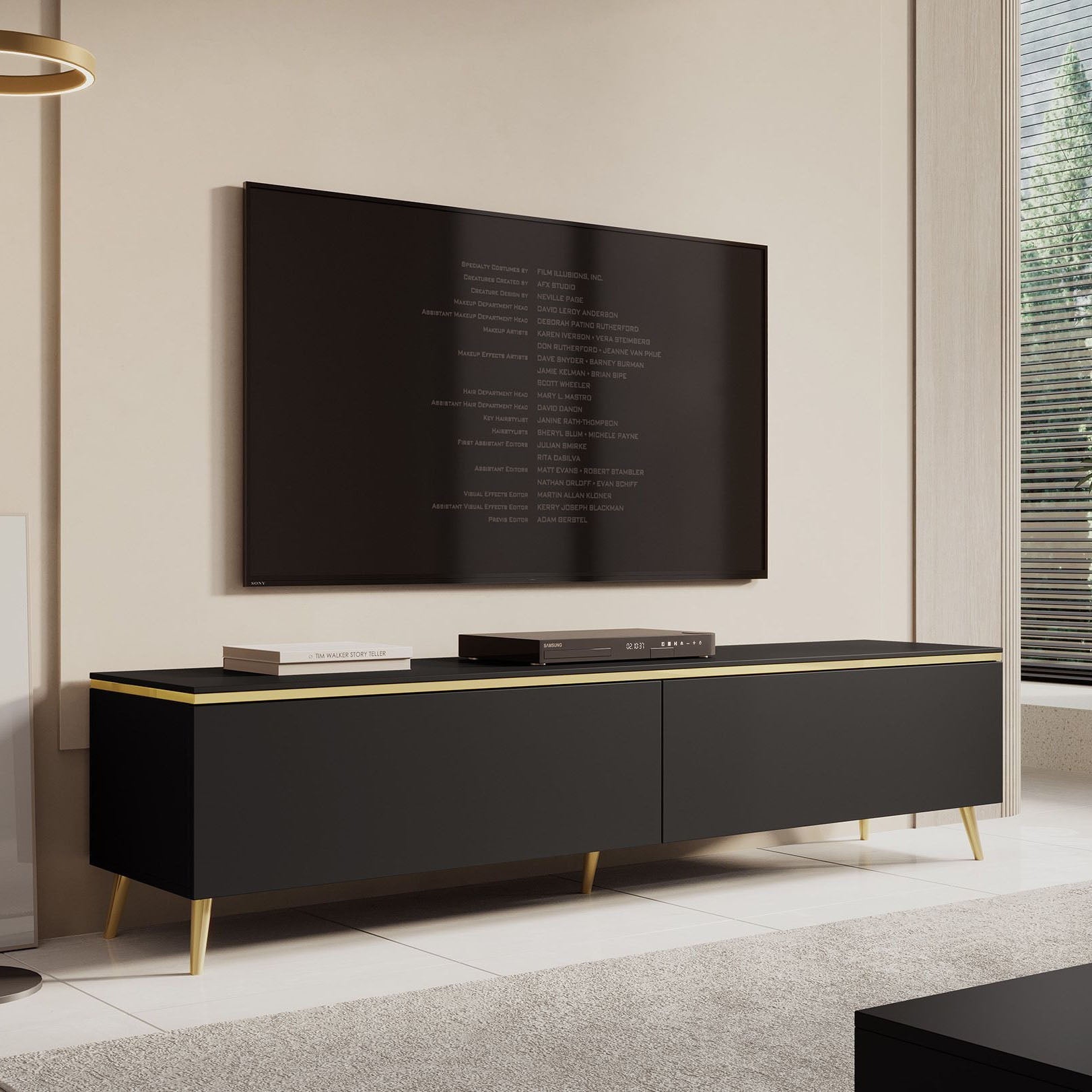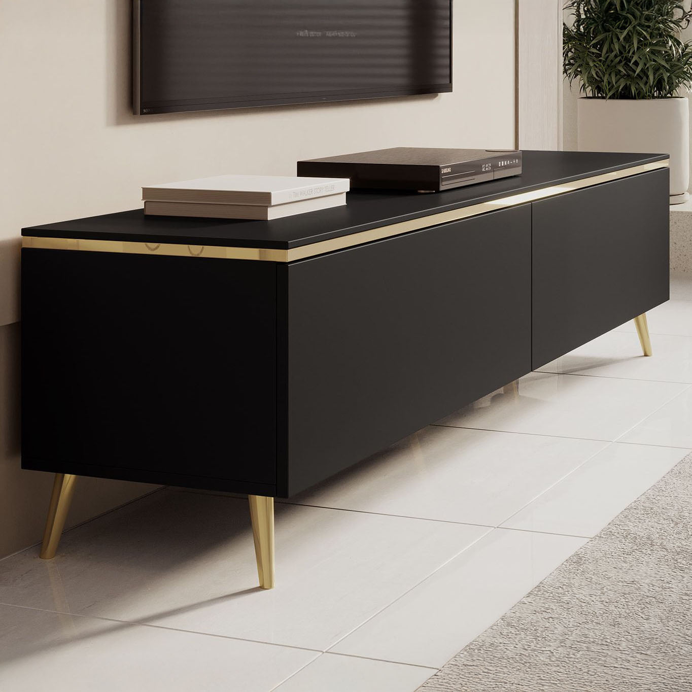 Meubella - TV-Meubel Assunta - Mat zwart - 180 cm - Staand