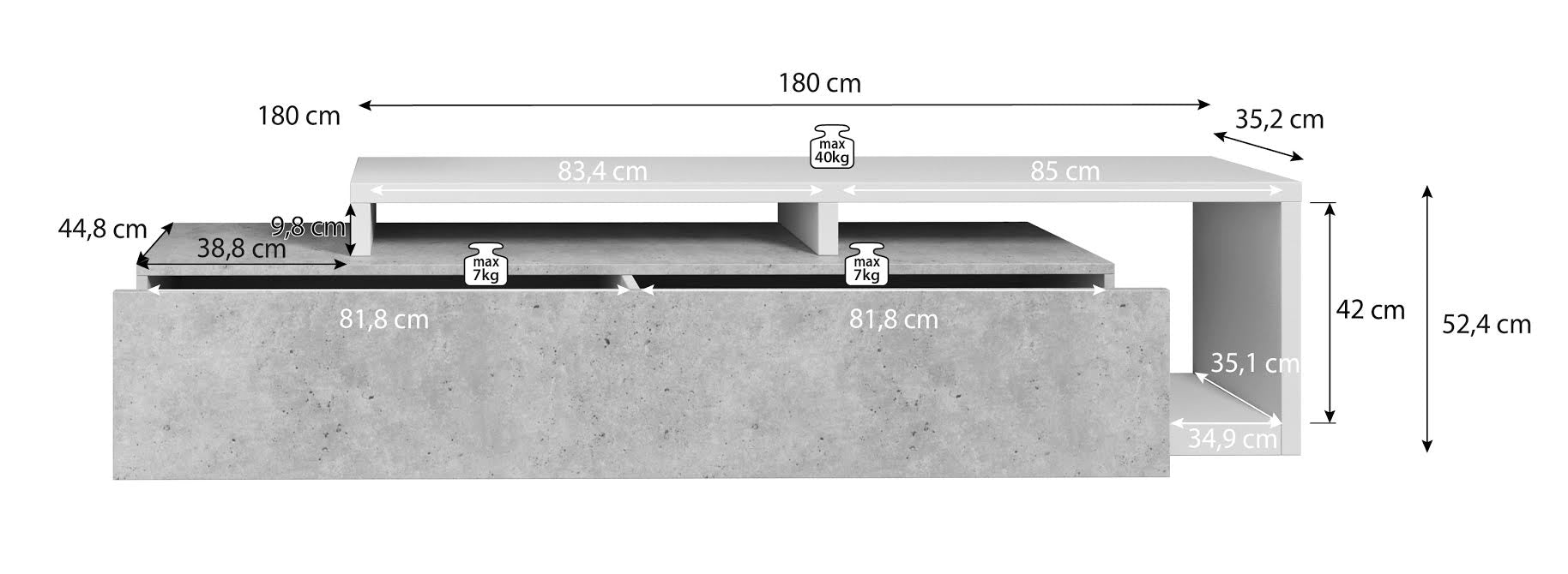 Meubella TV-Meubel Bello - Antraciet - 219 cm