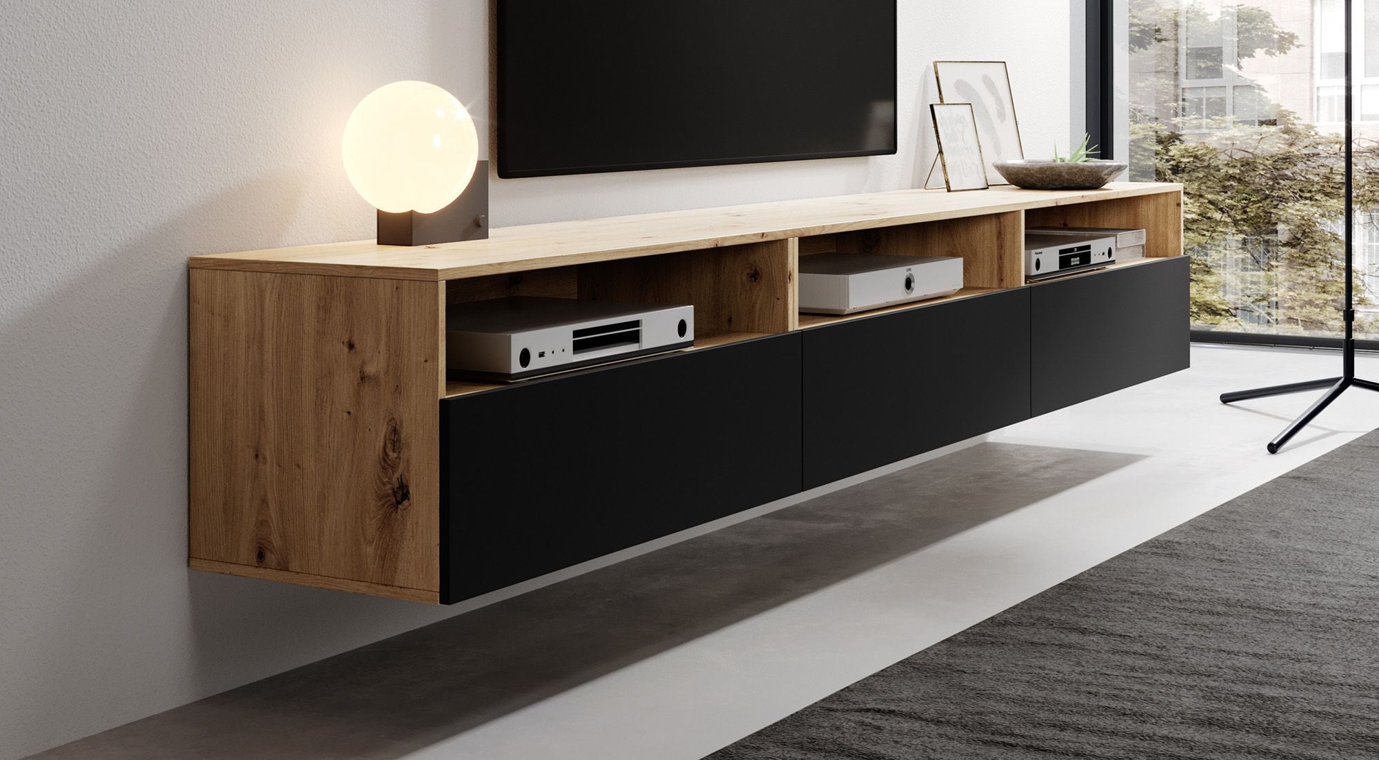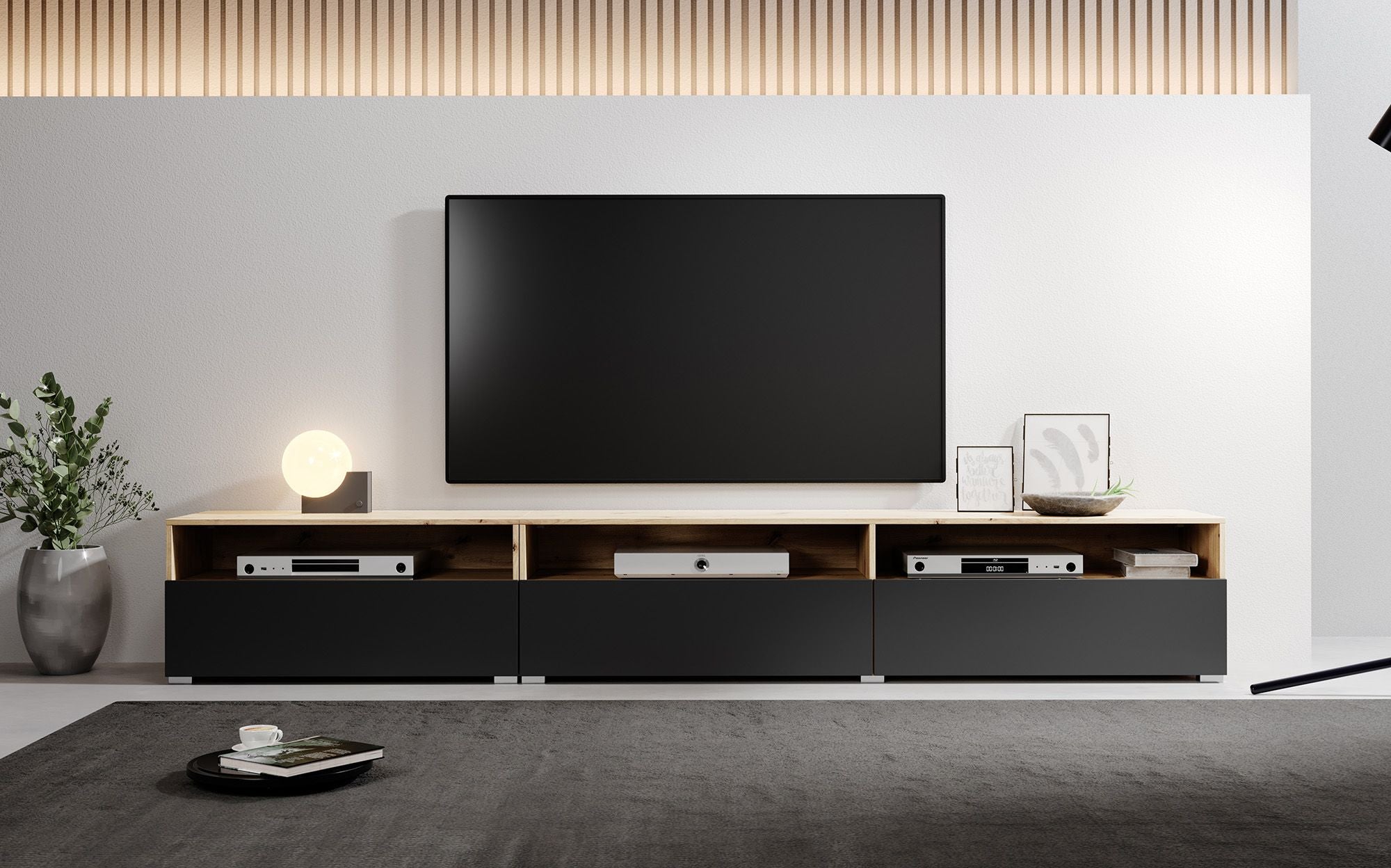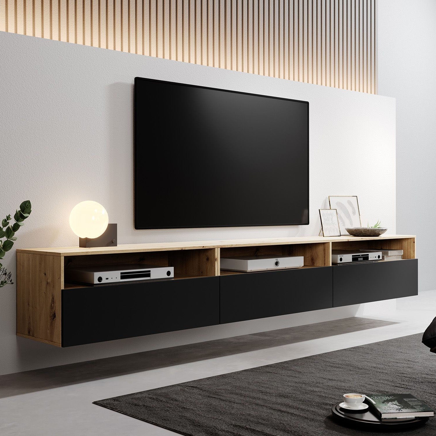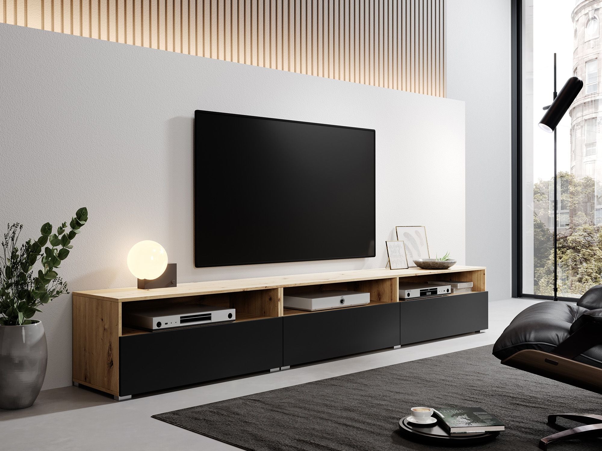 Meubella - TV-Meubel Bolivar - Mat zwart - Eiken - 270 cm
