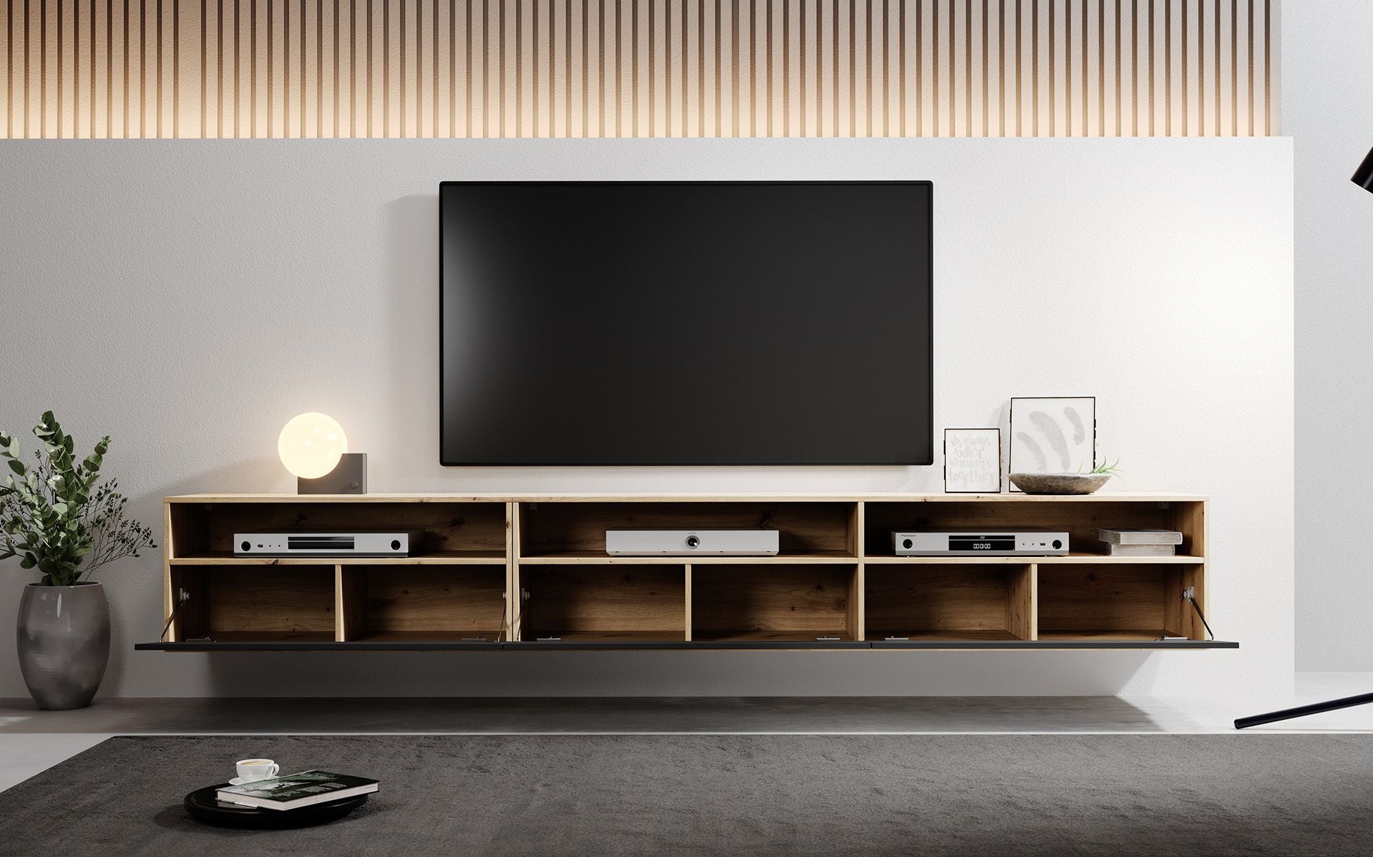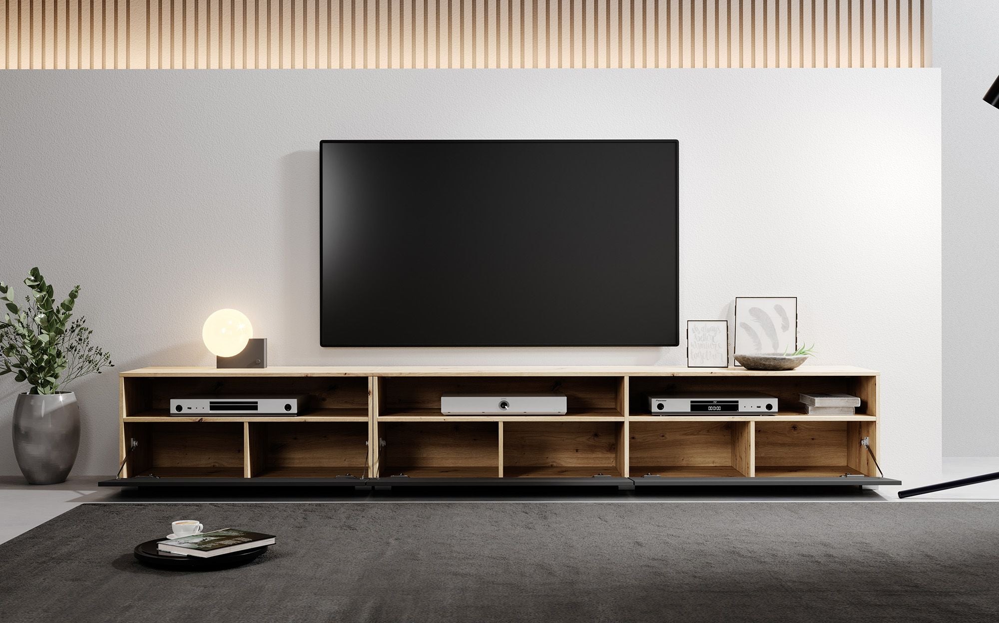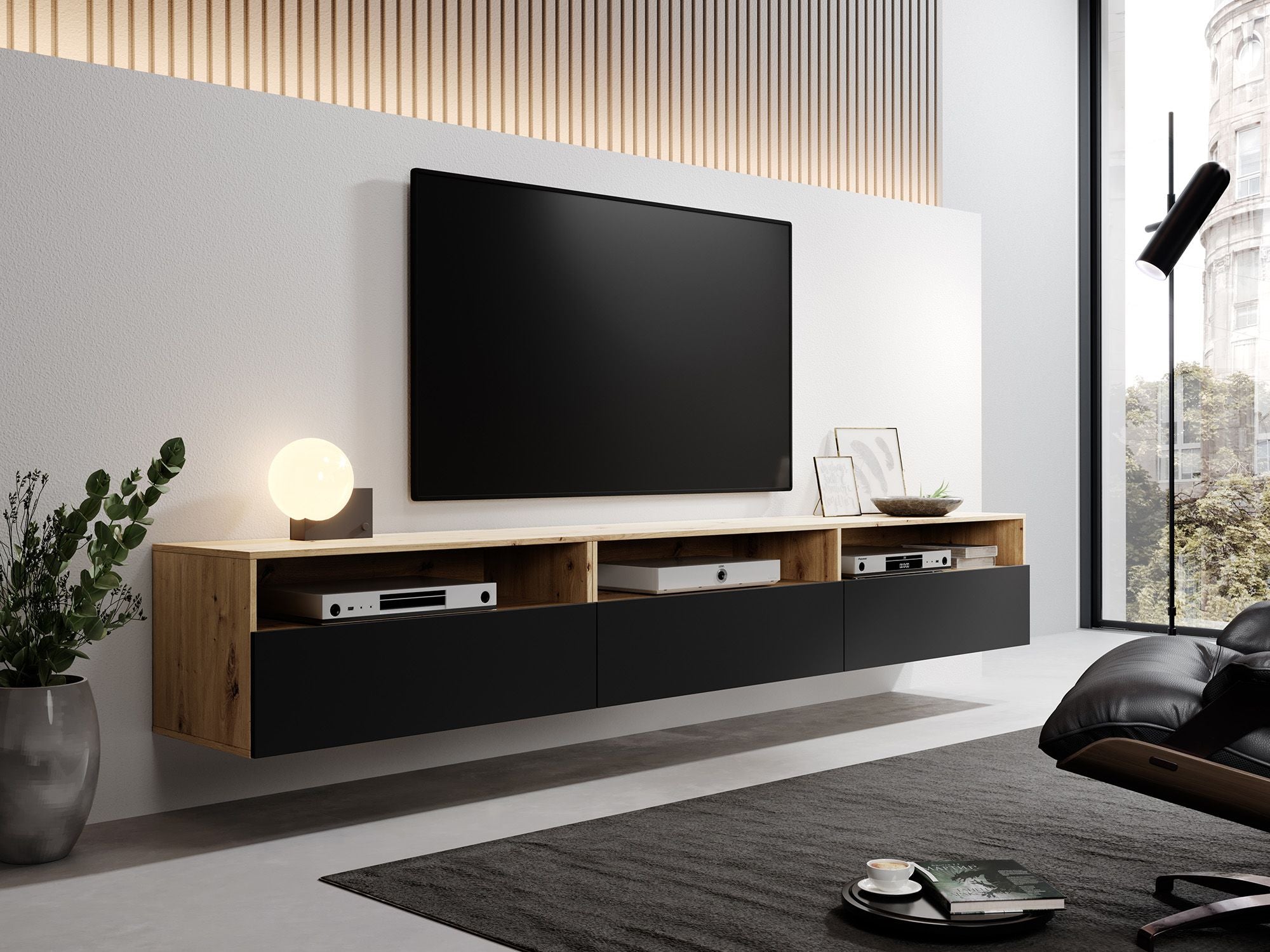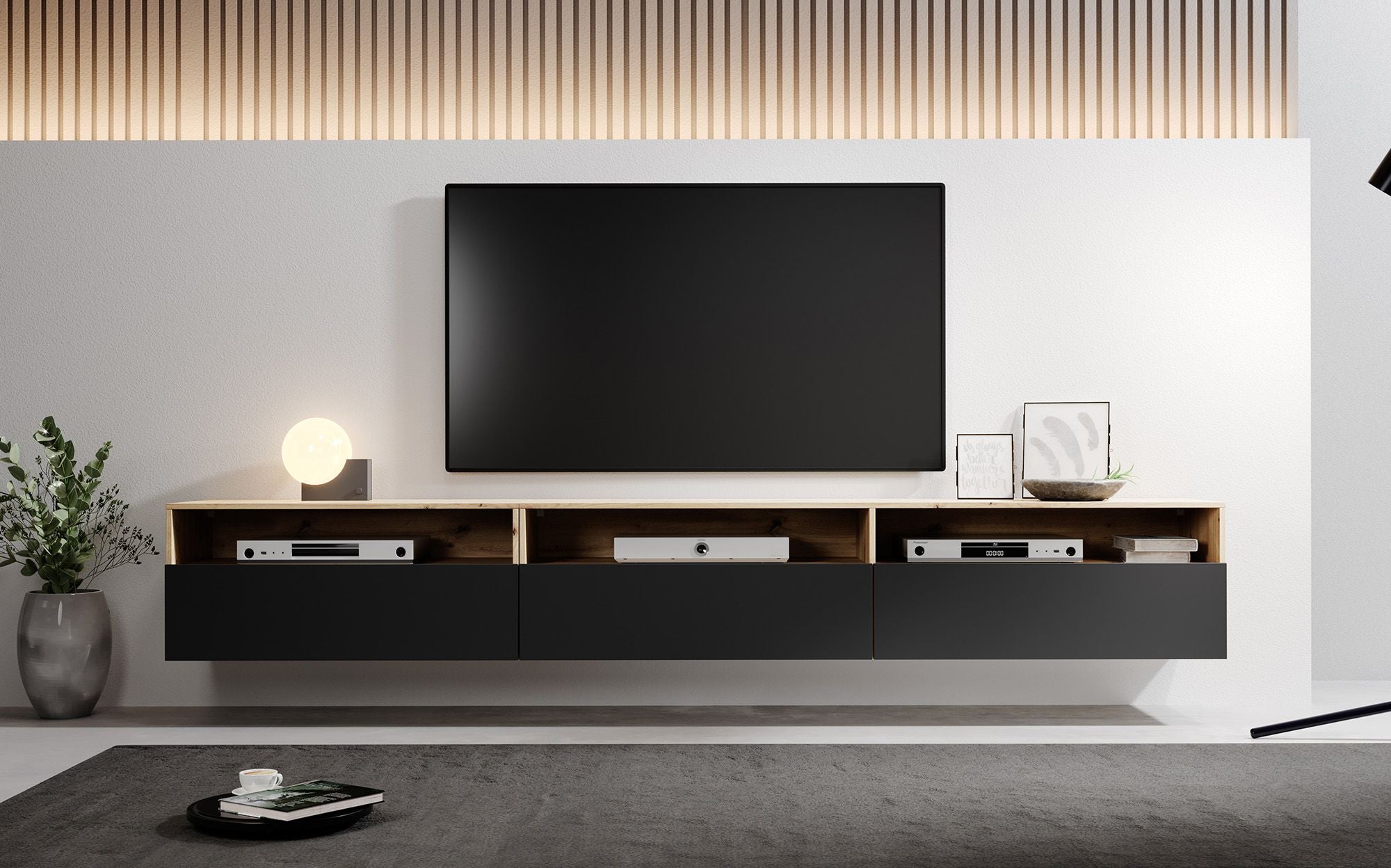 Meubella - TV-Meubel Bolivar - Mat zwart - Eiken - 270 cm