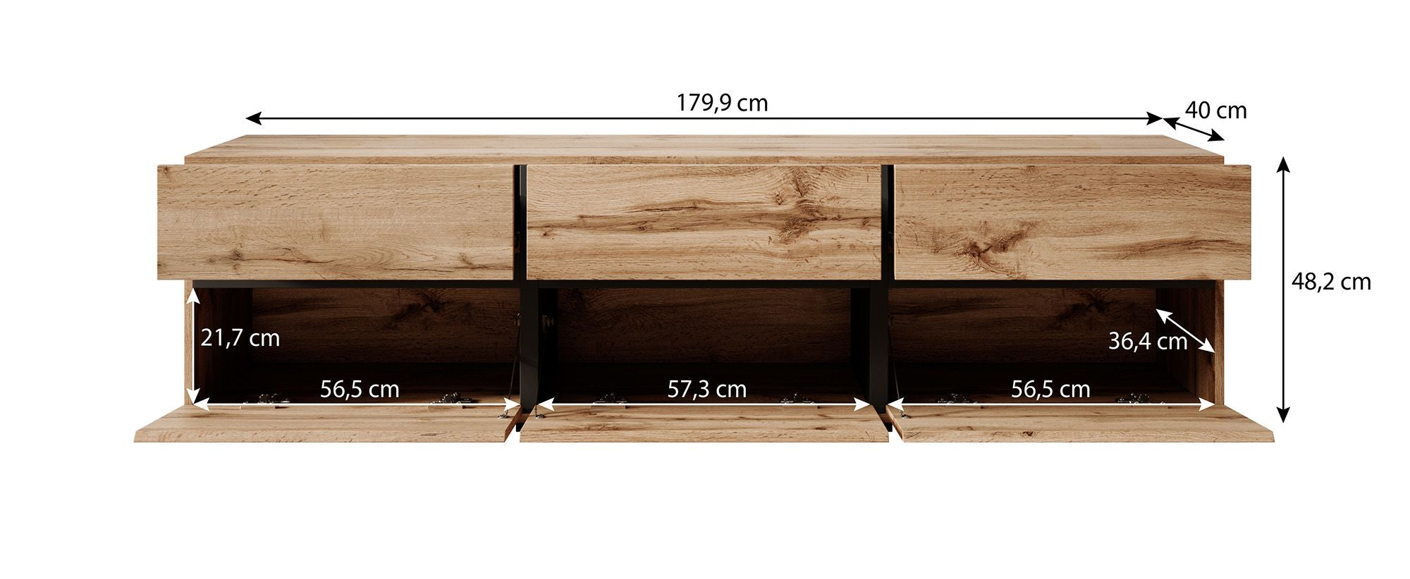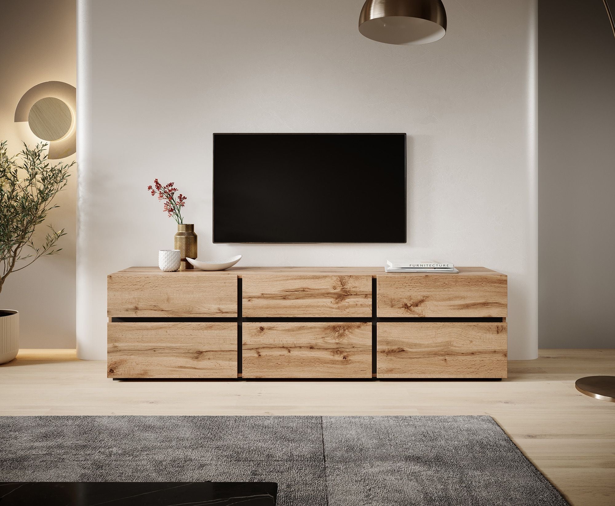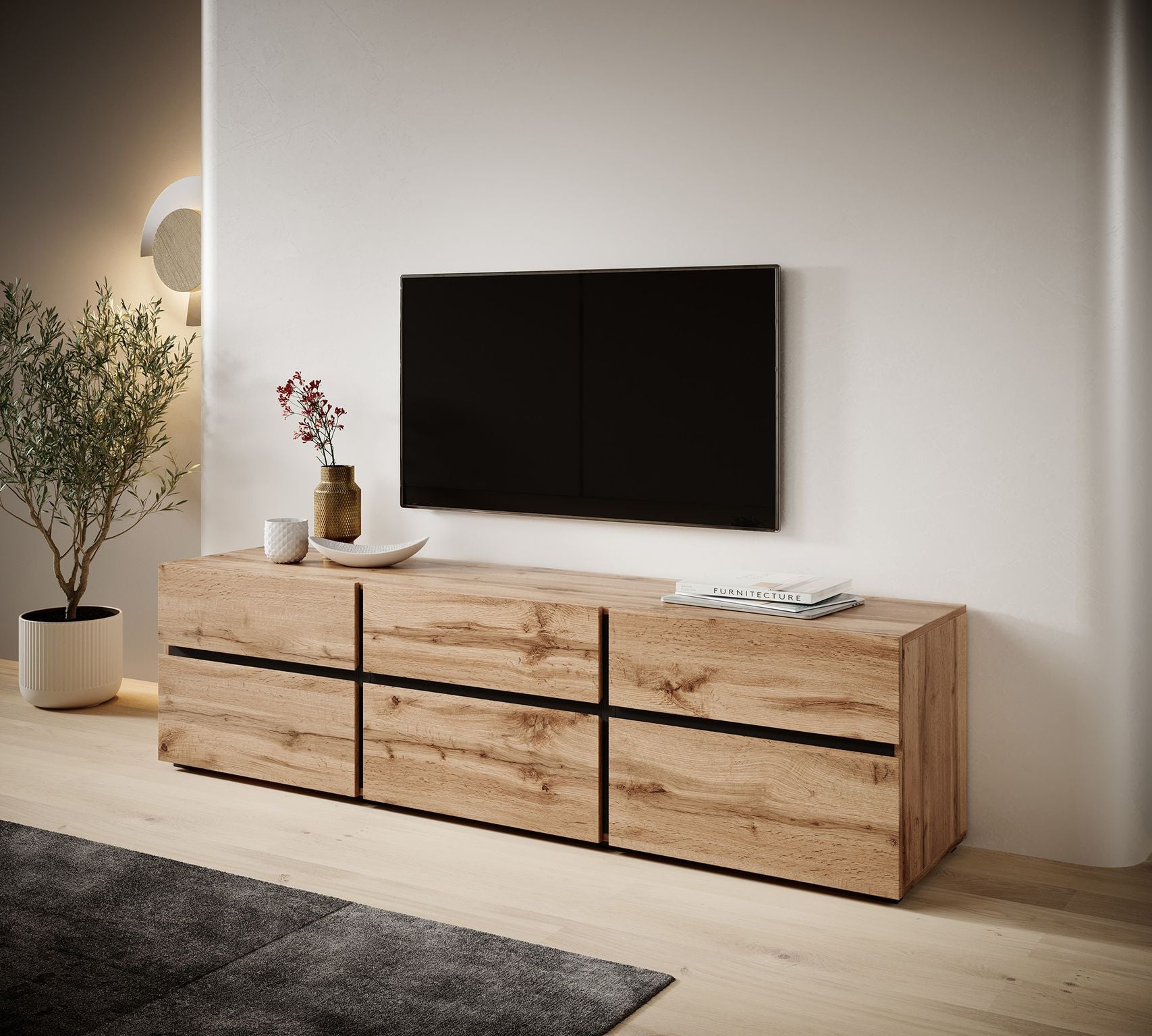 Meubella TV-Meubel Cainan - Eiken - Zwart - 180 cm