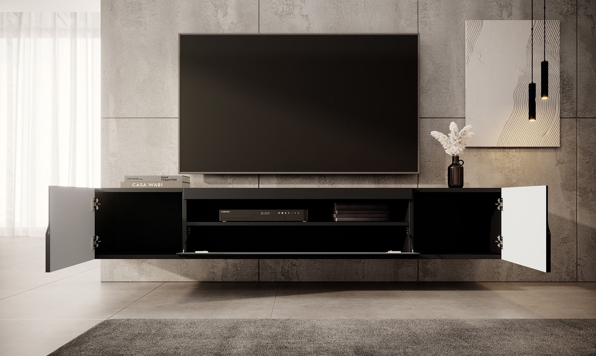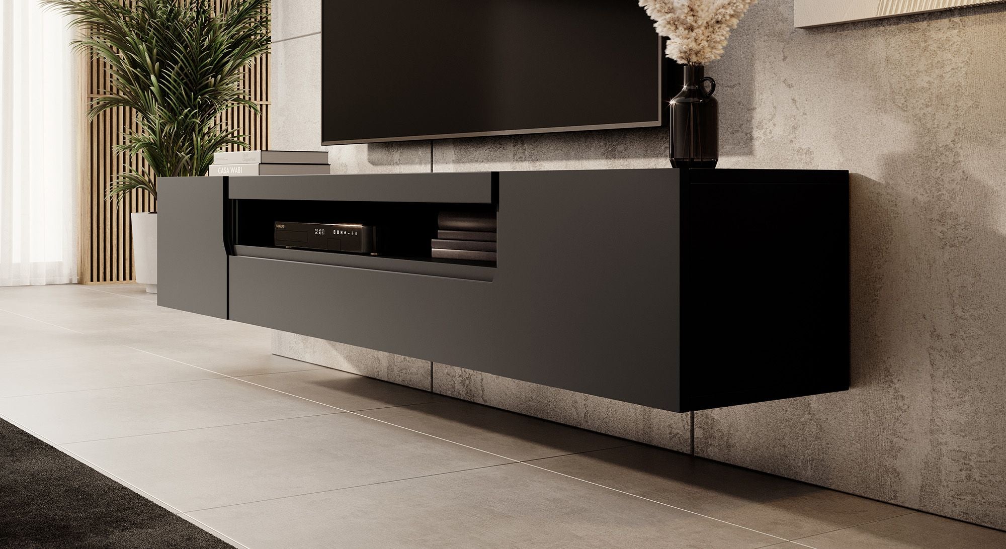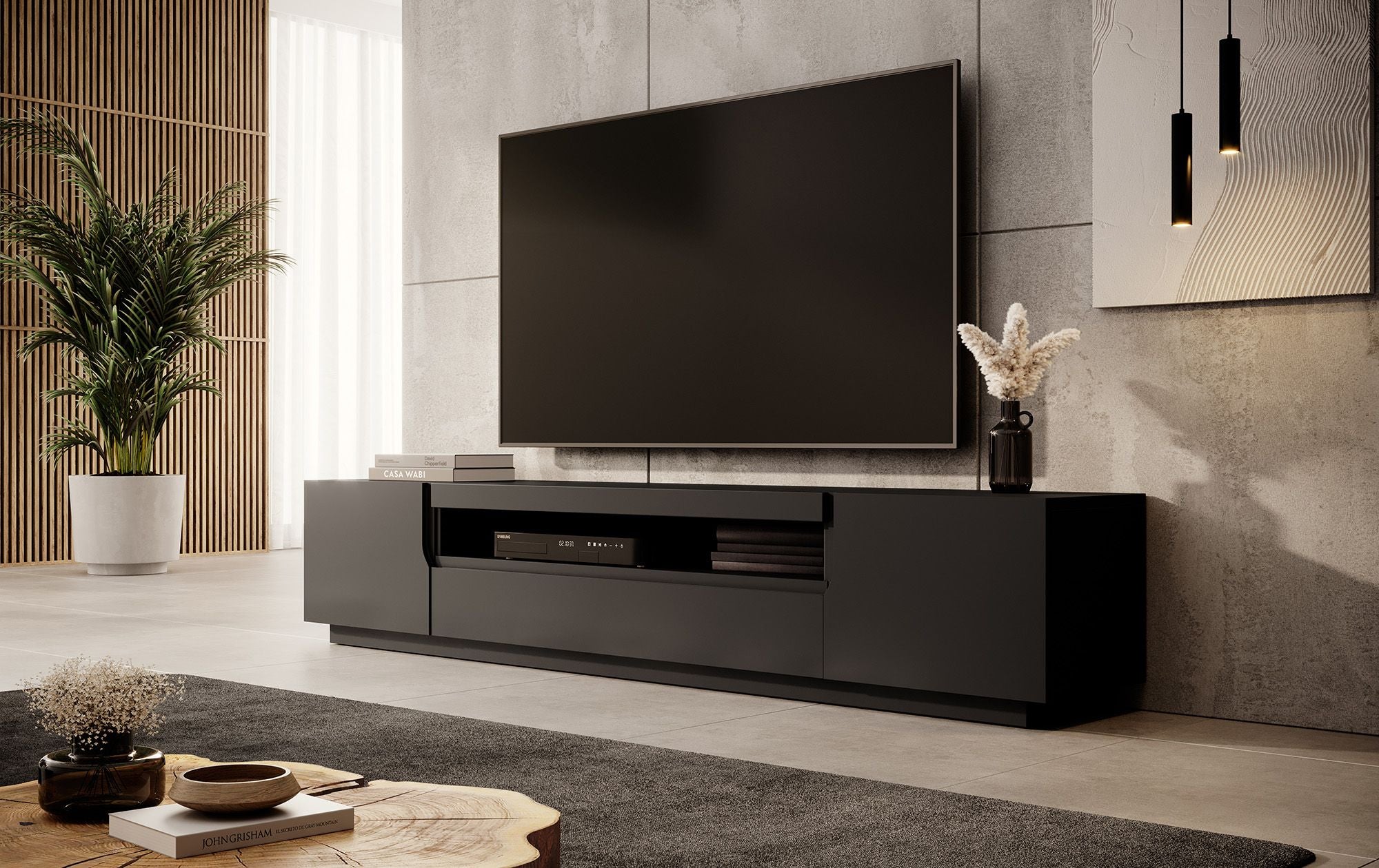 Meubella TV-Meubel Dylan - Mat zwart - 200 cm