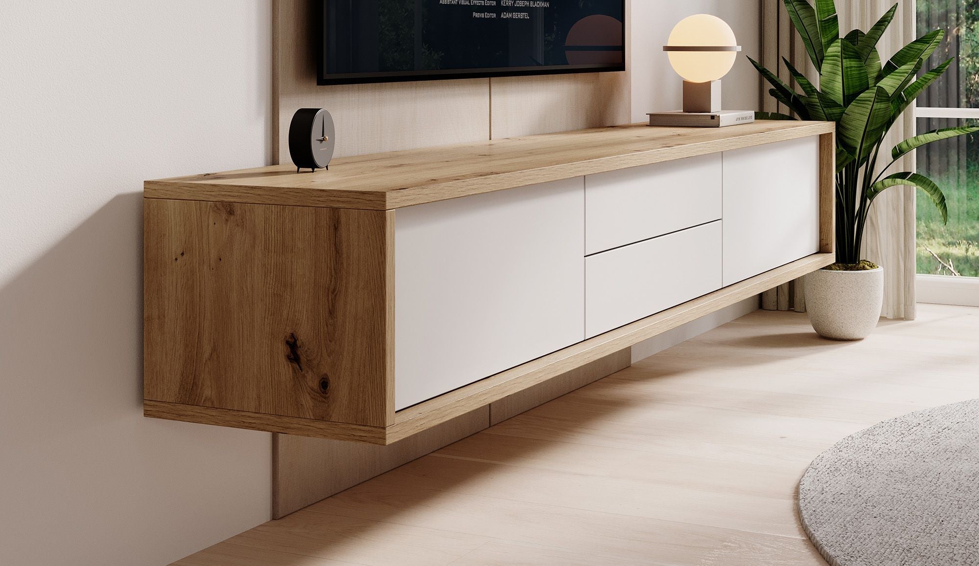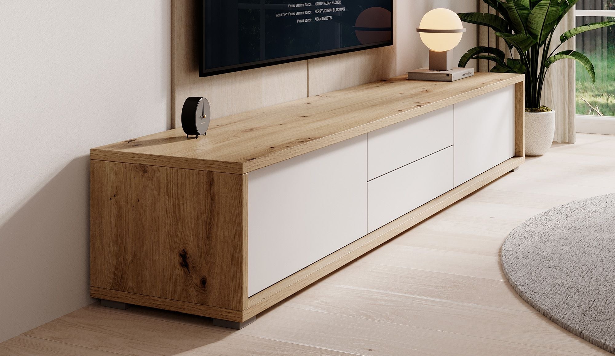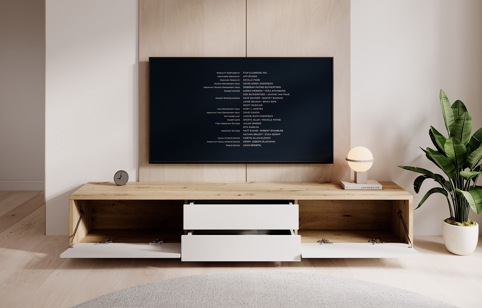 Meubella - TV-Meubel Fortunato - Eiken - Wit - 180 cm - Met lades