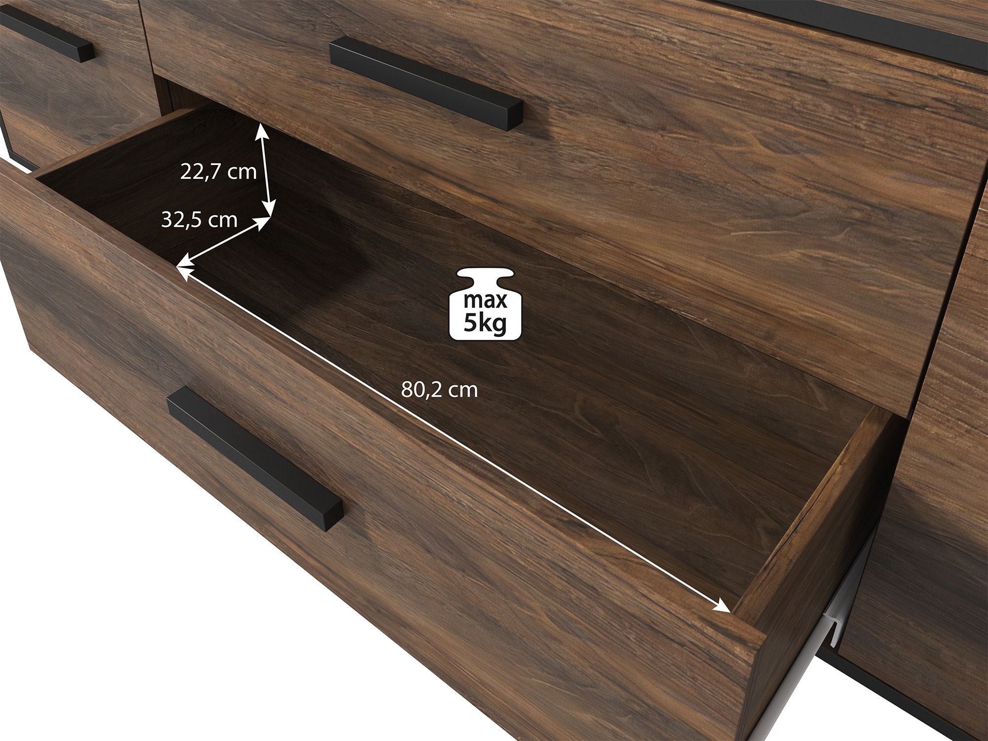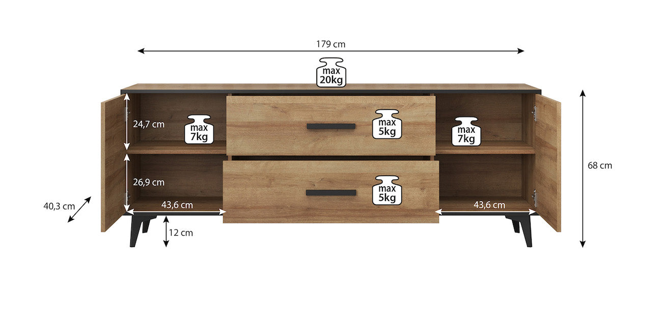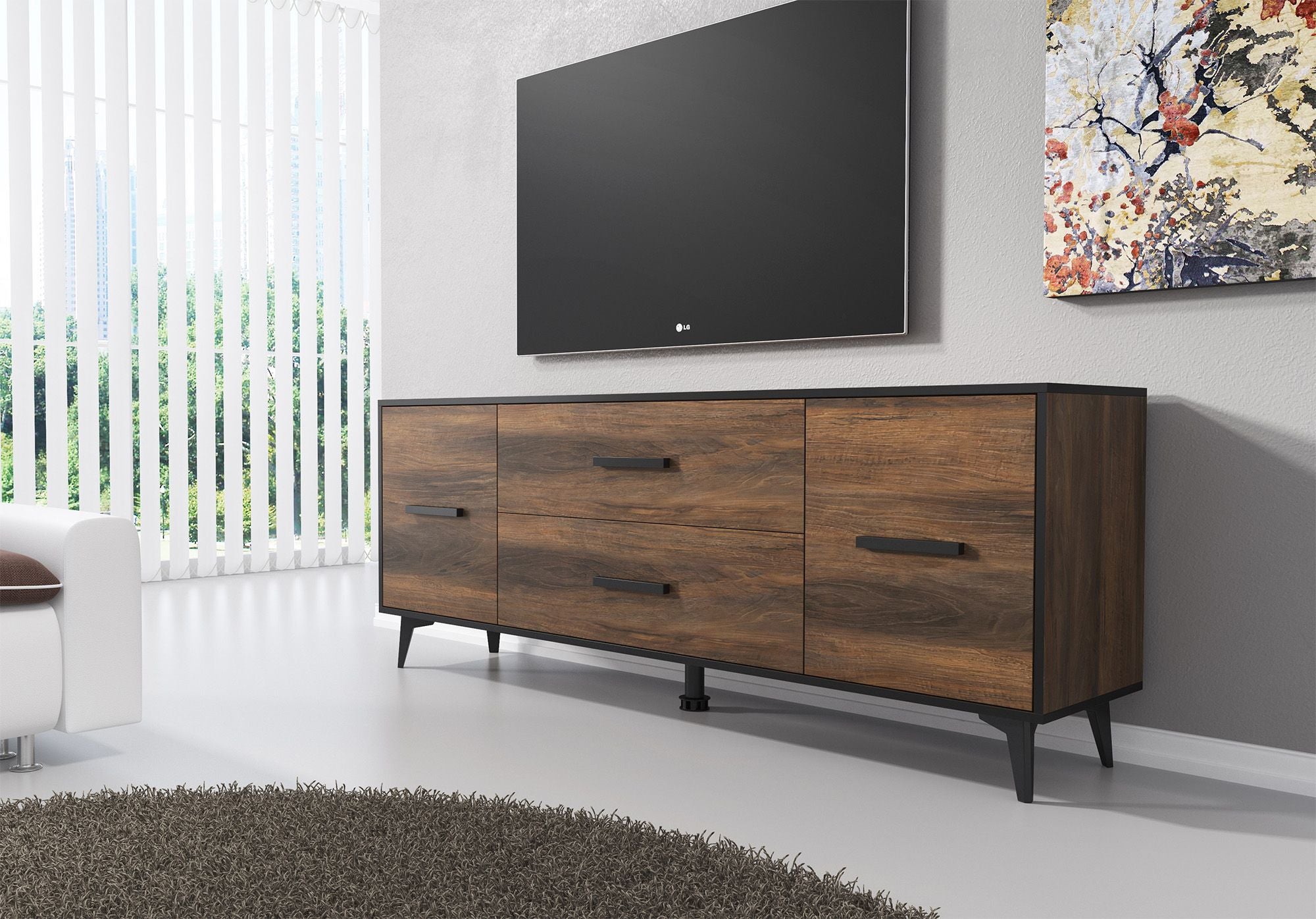 Meubella TV-Meubel Frey 2 - Donker eiken - Zwart - 179 cm