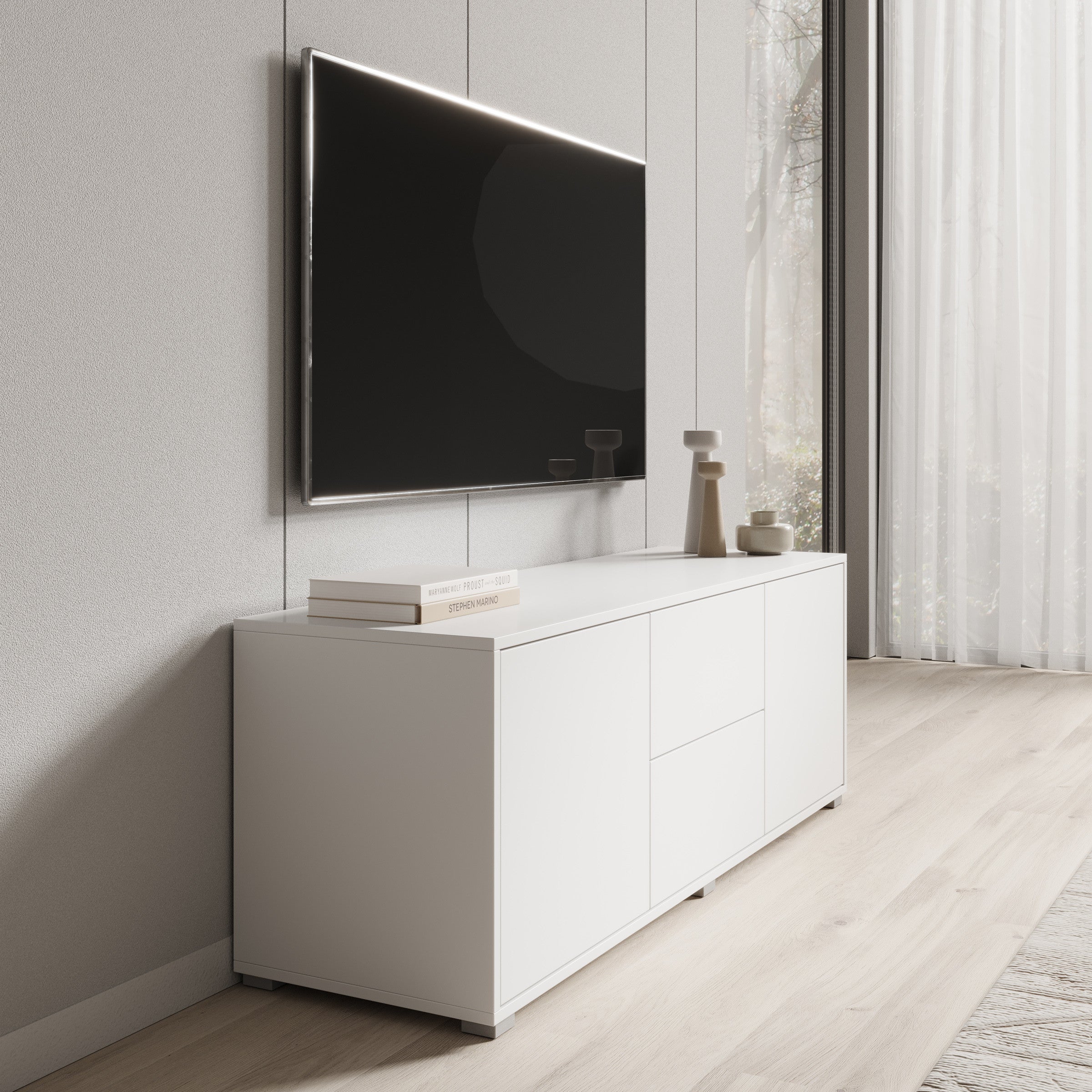 Meubella - TV-Meubel Gideon - Wit - 141 cm