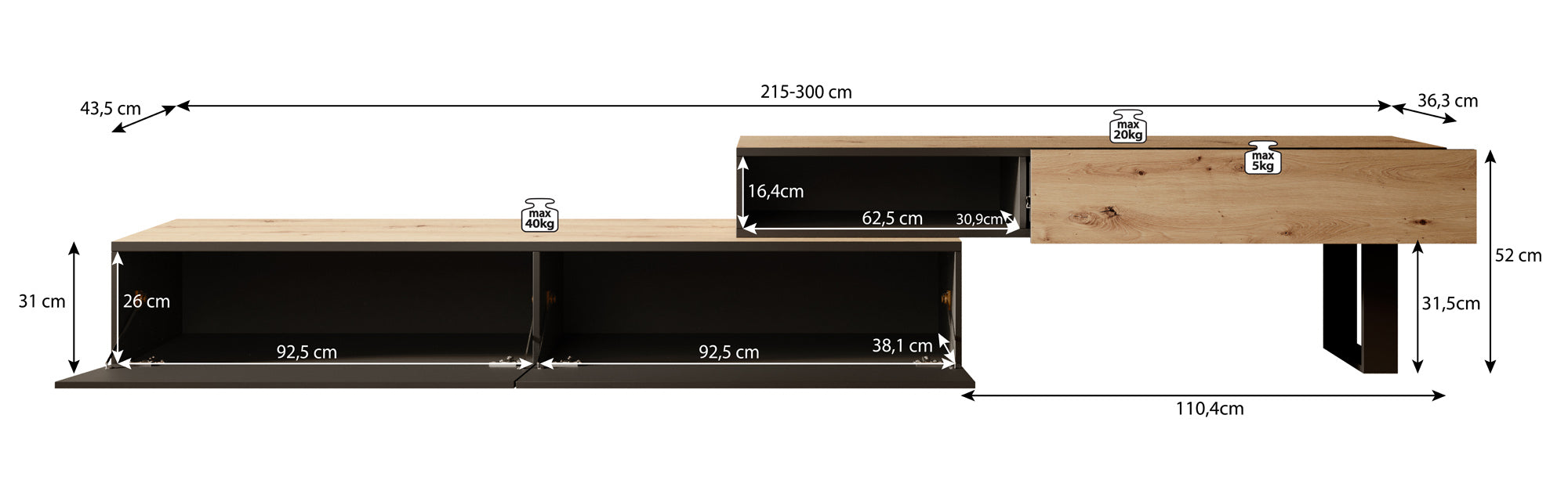 | Maat | H 52 x B 300 x D 43 cm |
